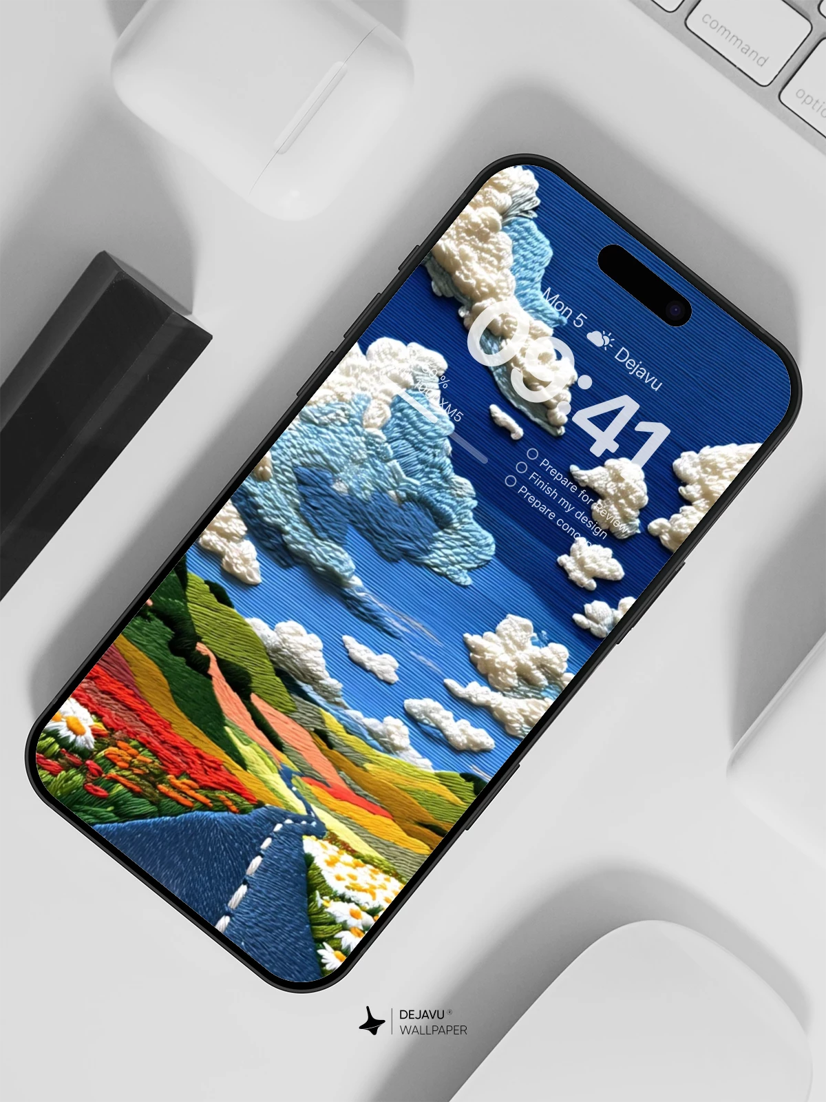 Immerse yourself in the enchanting world of ‘Vibrant Landscape Embroidery Wallpaper 8K,’ a masterpiece that transforms your iPhone or Android screen into a canvas of artistry. This design, inspired by traditional embroidery techniques, features lush, colorful fields and a serene sky dotted with fluffy clouds, all meticulously crafted to evoke a sense of peace and wonder. The winding road through the landscape symbolizes a journey through nature’s timeless beauty, making it an ideal companion for daily inspiration. Whether viewed on smartphones, tablets, or other devices, this high-resolution wallpaper enhances any setting with its detailed textures and vibrant hues, promising a visually delightful experience.