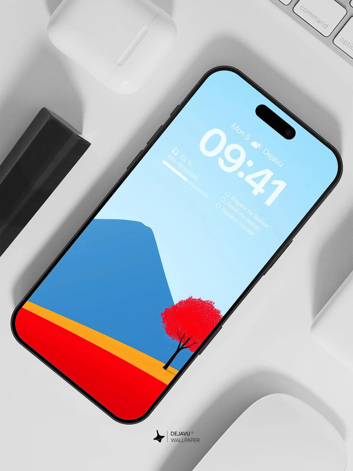 Immerse yourself in the striking simplicity of this minimalist landscape wallpaper, designed in vivid 8K resolution. The solitary red tree stands proudly against a calm blue mountain, symbolizing resilience and tranquility. This visually captivating design not only enhances the aesthetic appeal of your iPhone or Android but also evokes a sense of peace and focus. Ideal for those who appreciate clean lines and bold colors, this wallpaper is a perfect blend of modern art and natural beauty, making it a standout choice for any tech-savvy individual looking to elevate their device’s appearance.