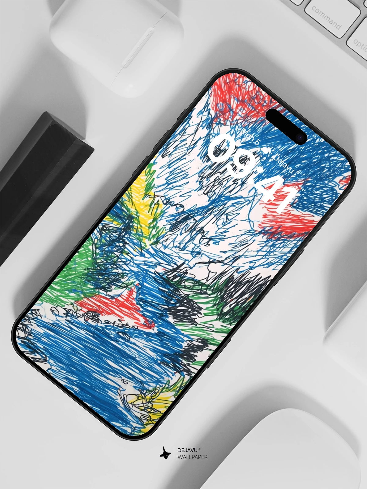 This dynamic artwork captures the wild beauty of nature through bold, energetic strokes reminiscent of childlike imagination and abstract expressionism. The swirling blues, reds, and greens evoke a sense of movement and emotion, transforming a mountain river scene into a lively visual journey. Ideal for iPhone, Android, or tablet screens, this 8K wallpaper brings creativity and wonder to your daily digital experience.
