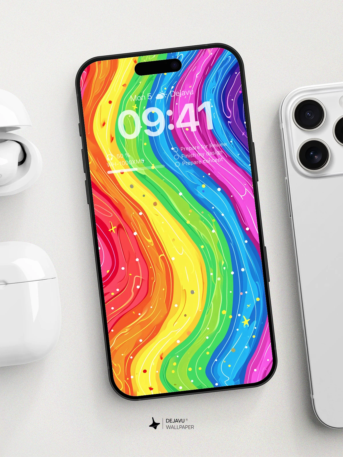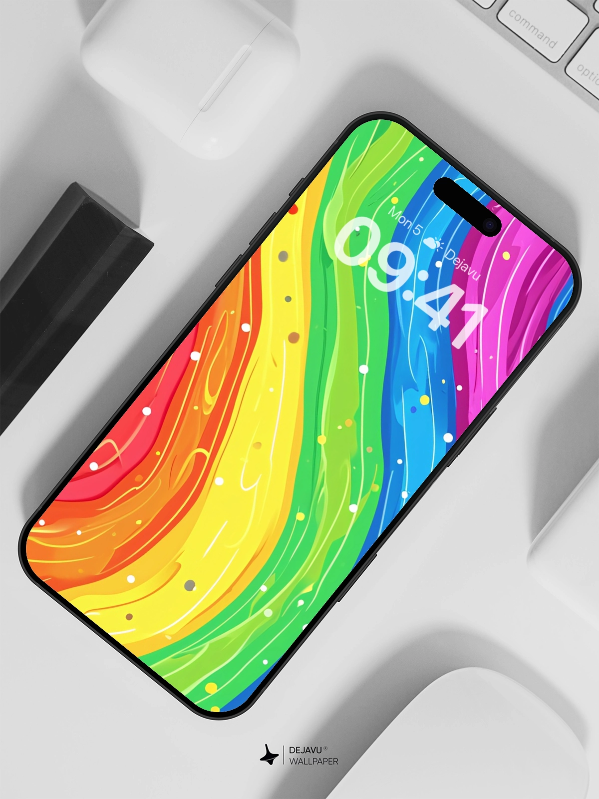Immerse yourself in a world of vibrant rainbow waves with this mesmerizing 8K wallpaper. Perfect for your iPhone or Android, this design brings a burst of color and energy to your device, making every glance a joyful experience.