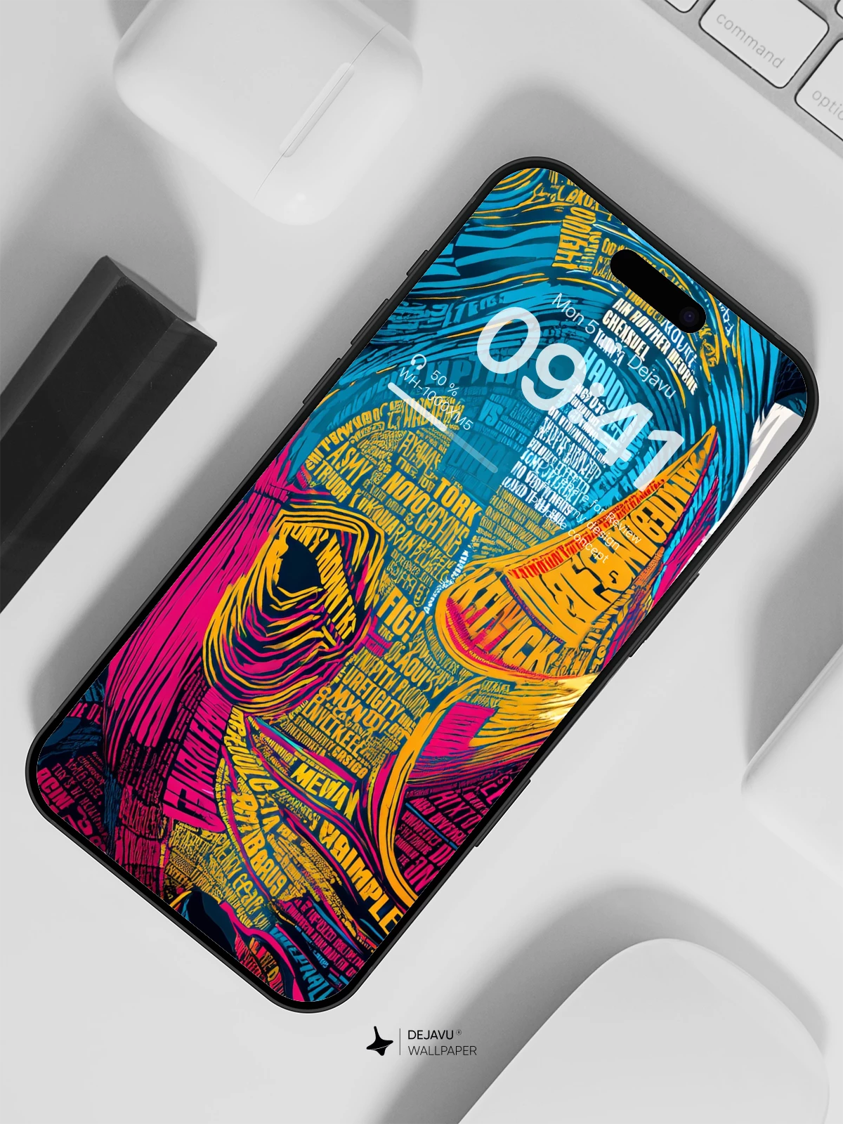 Immerse yourself in the dynamic world of the Vibrant Rhino Typography Wallpaper 8K, a stunning creation that merges the raw power of a rhino with an explosion of colorful text. This artwork, inspired by contemporary graphic design, transforms the rhino into a canvas of words, evoking themes of strength and creativity. Ideal for enhancing the visual appeal of your iPhone or Android device, it brings a playful yet sophisticated energy to any screen. Whether you’re a fan of modern art or simply appreciate unique designs, this wallpaper promises to captivate and inspire, making every glance a delightful experience.