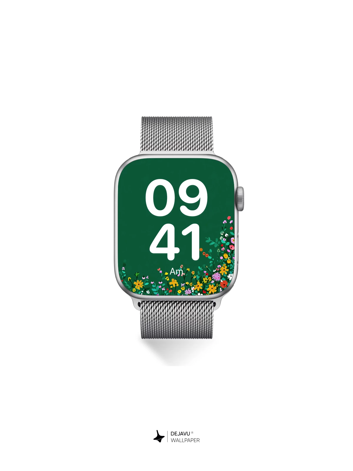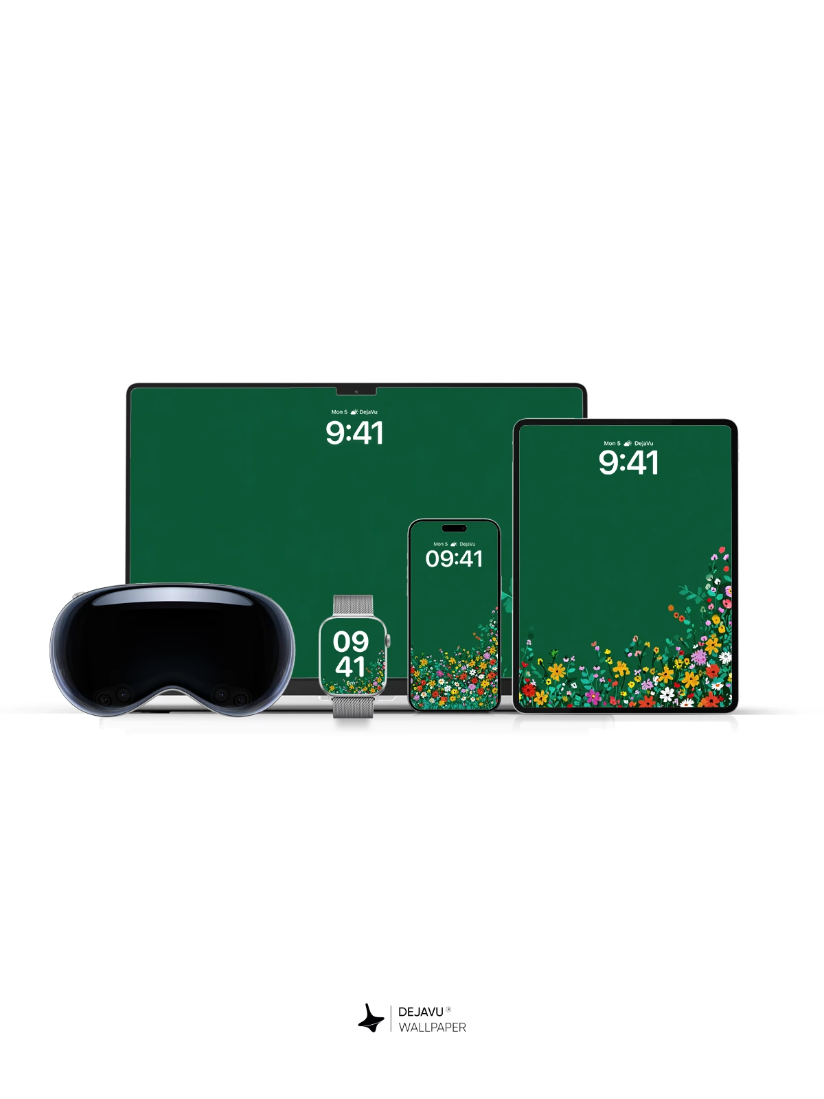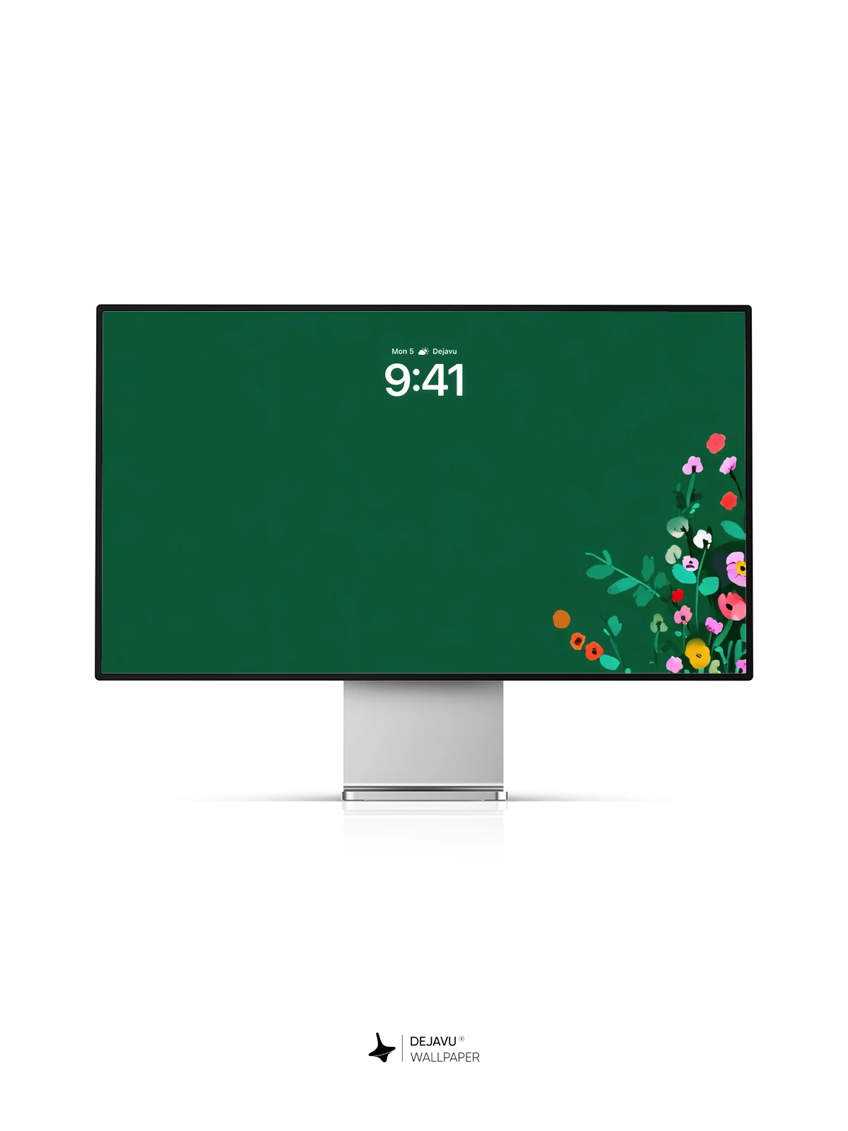 This stunning 8K wallpaper features a lush meadow of vivid wildflowers—yellow daisies, pink blossoms, red poppies, and white petals—rising from the bottom corner against a rich emerald green background. The cheerful, cartoon-inspired design evokes a sense of joy and natural wonder, making it an ideal choice for iPhone, Android, and tablet screens. Perfect for adding a touch of springtime vibrancy to your daily digital experience.