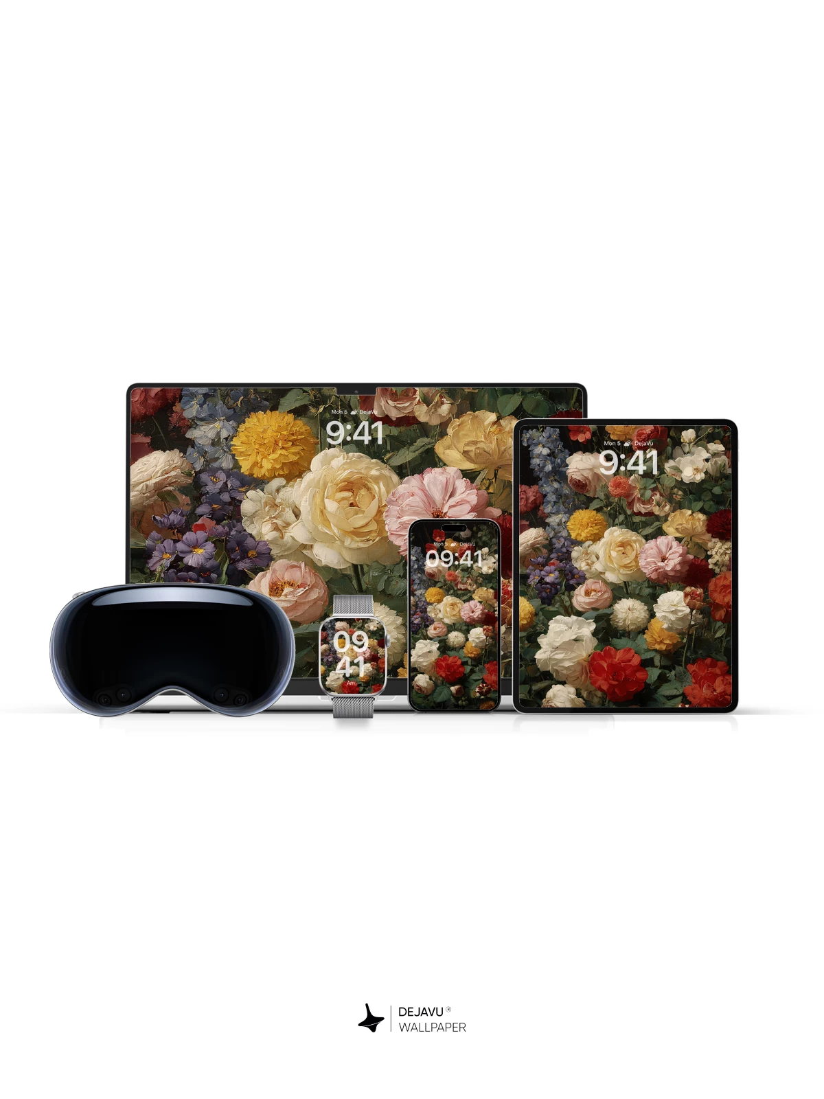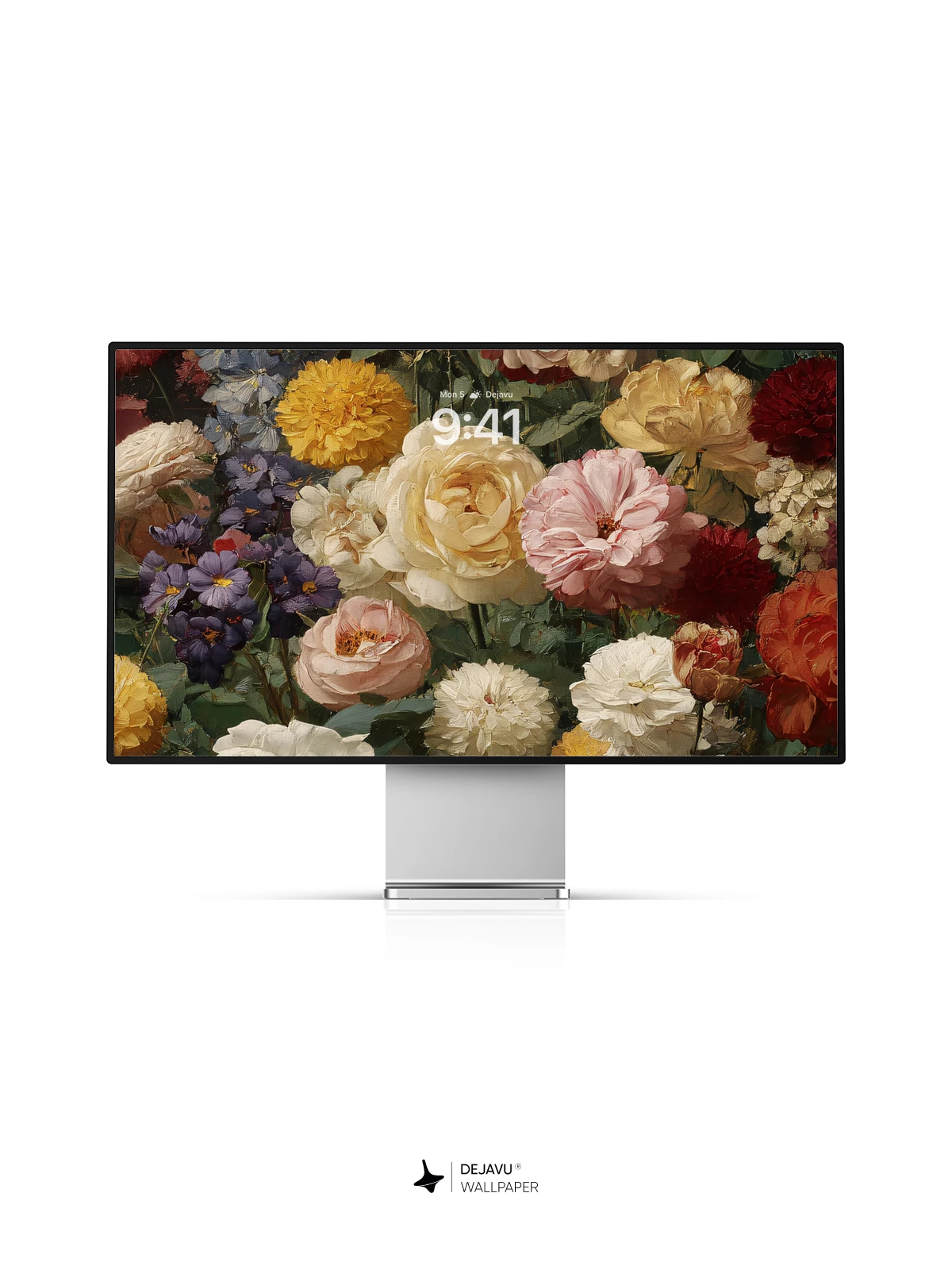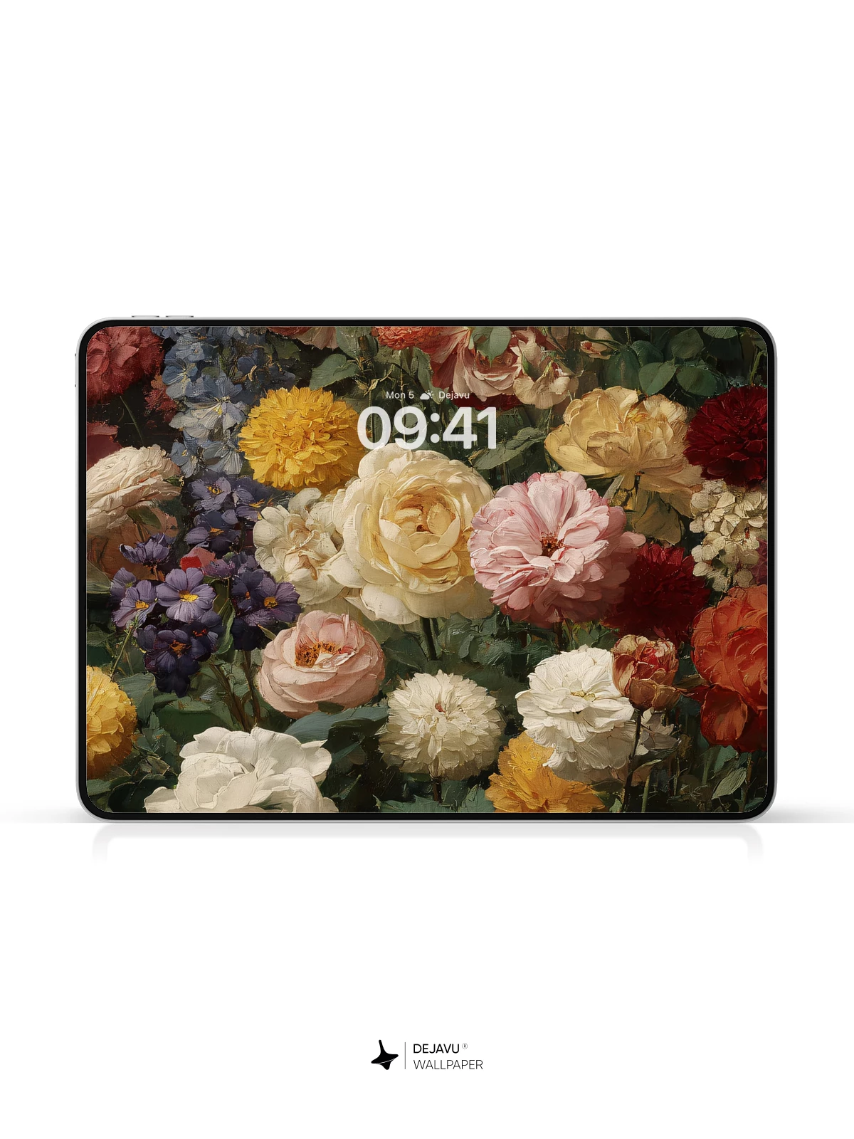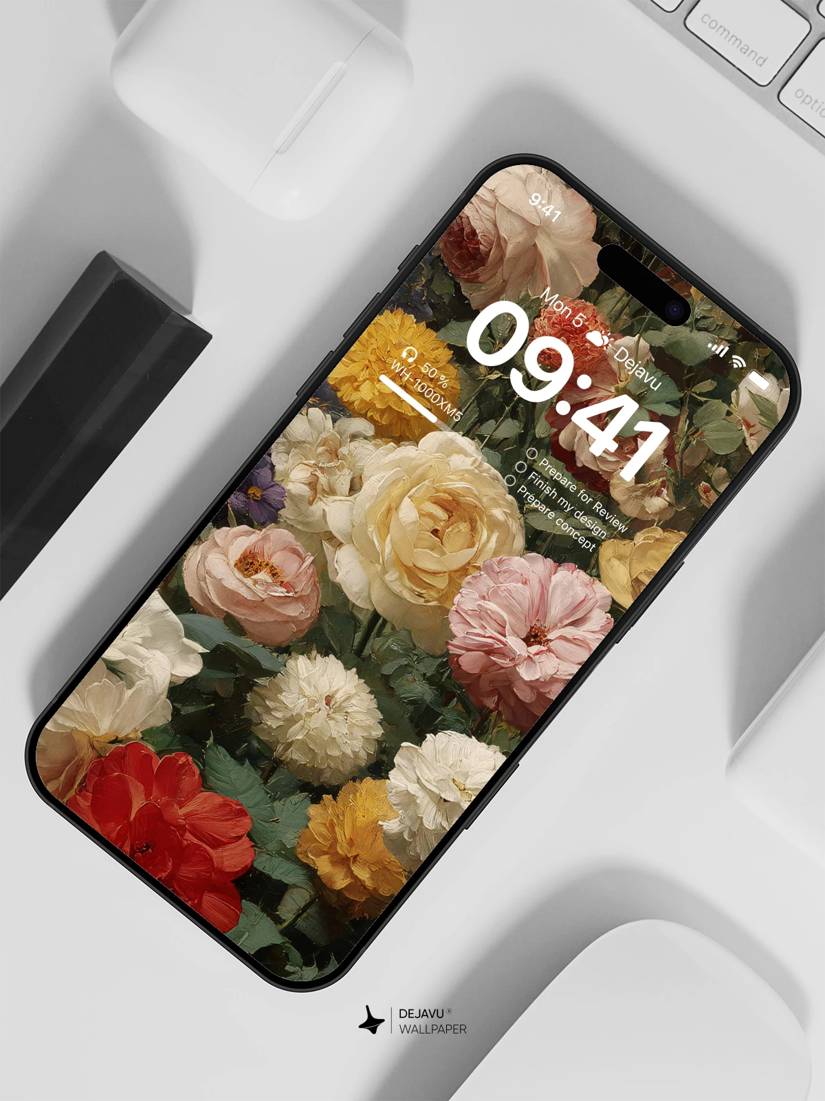 This design captures the moody elegance of a 19th-century floral arrangement. Rich textures of petals and leaves are set against a dark background, creating a dramatic, tactile look. It works beautifully on iPhone and Android screens, offering a sophisticated alternative to standard digital backgrounds.