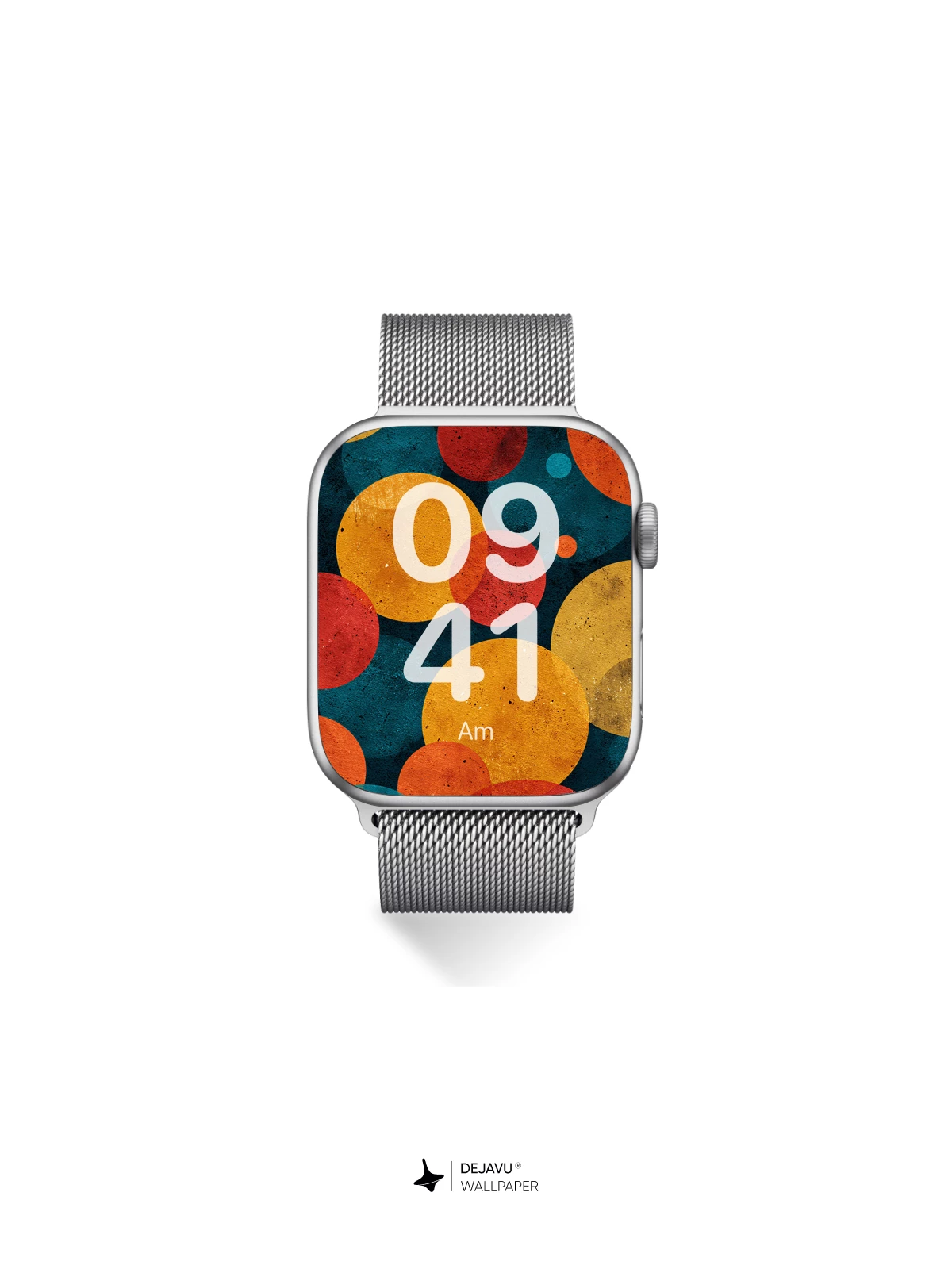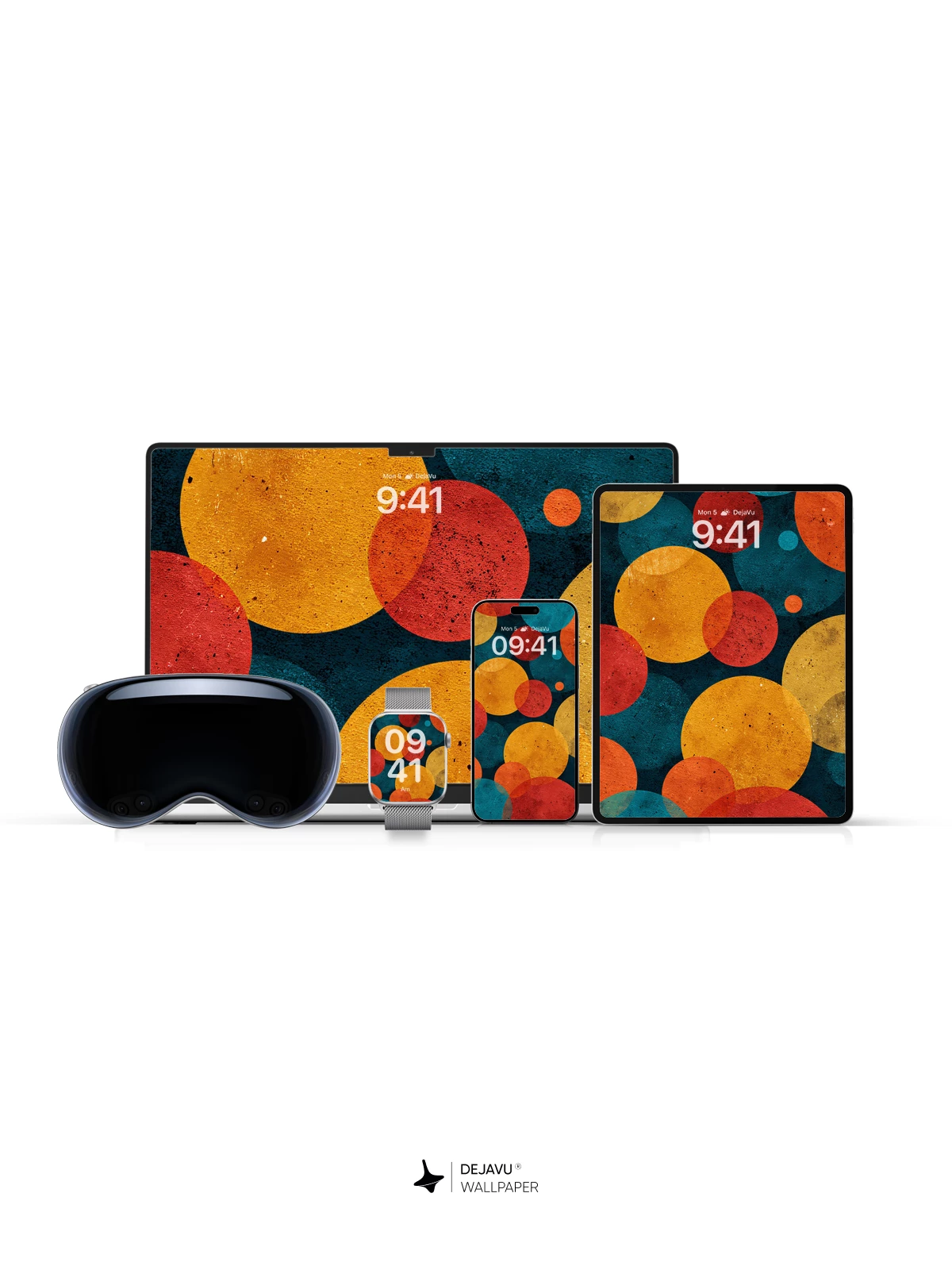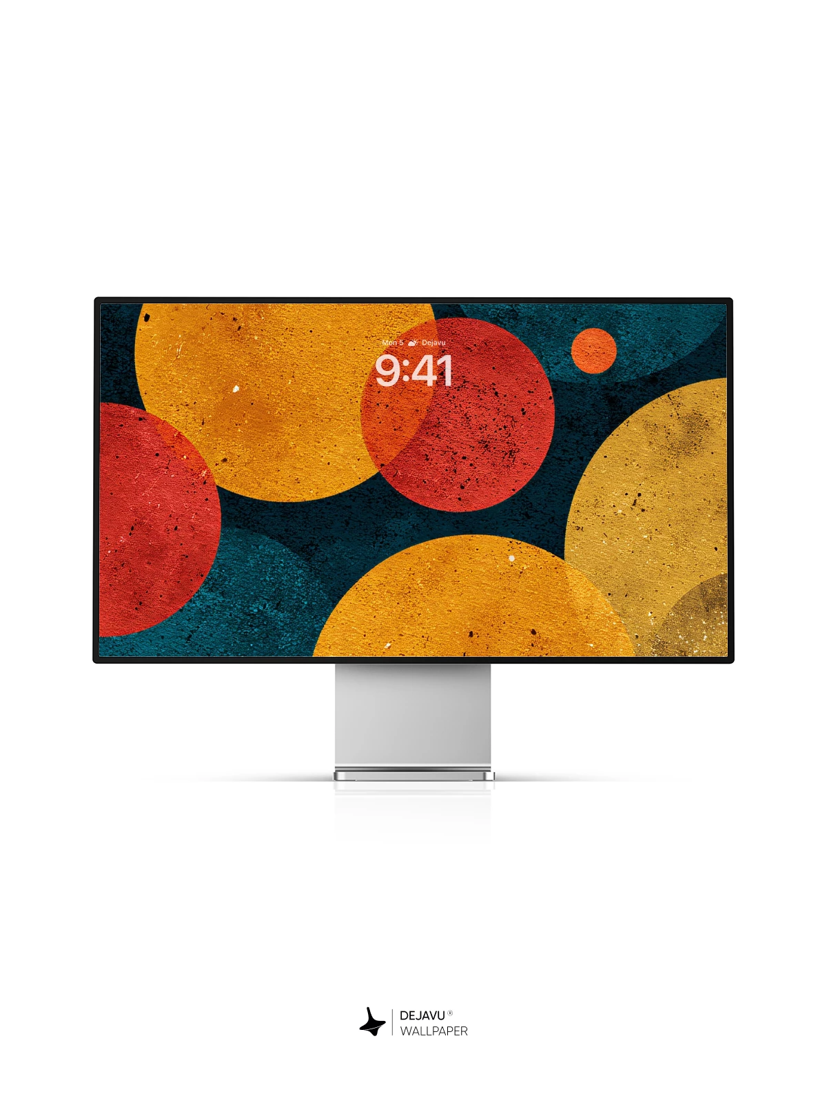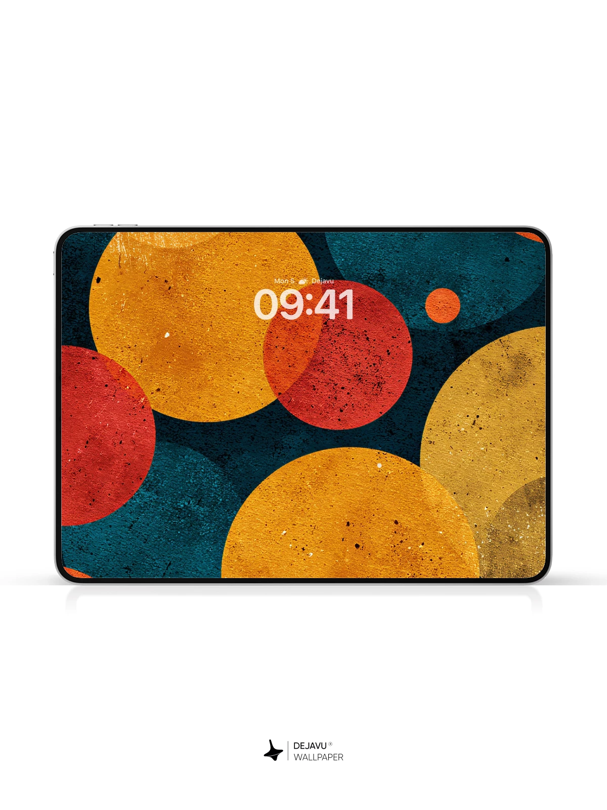 This design features a dynamic composition of layered circles with a grainy, vintage texture. The rich color palette creates a warm, energetic mood, perfect for adding a unique, artistic touch to your iPhone, Android, or tablet screen.