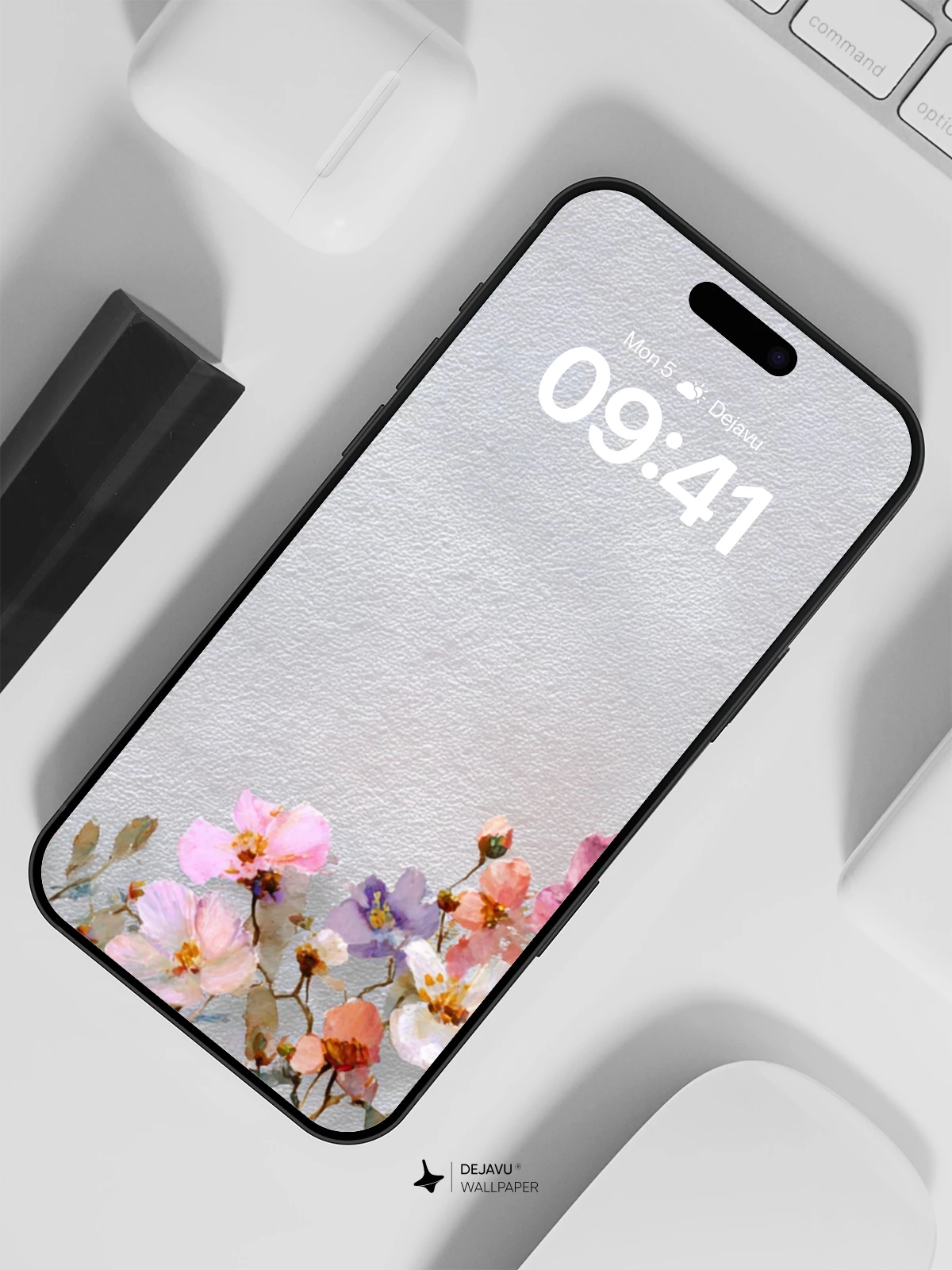 This enchanting 8K wallpaper features a gentle cascade of watercolor flowers in lavender, blush, coral, and sky blue, arranged in a graceful corner composition against a textured pale backdrop. Inspired by the ethereal beauty of botanical illustrations, it evokes a sense of calm and timeless elegance. The soft brushwork and subtle gradients make it ideal for enhancing any smartphone display—whether you’re using an iPhone or Android device. Perfect for those who appreciate delicate artistry and nature-inspired design, this wallpaper brings a touch of springtime serenity to your mobile experience.