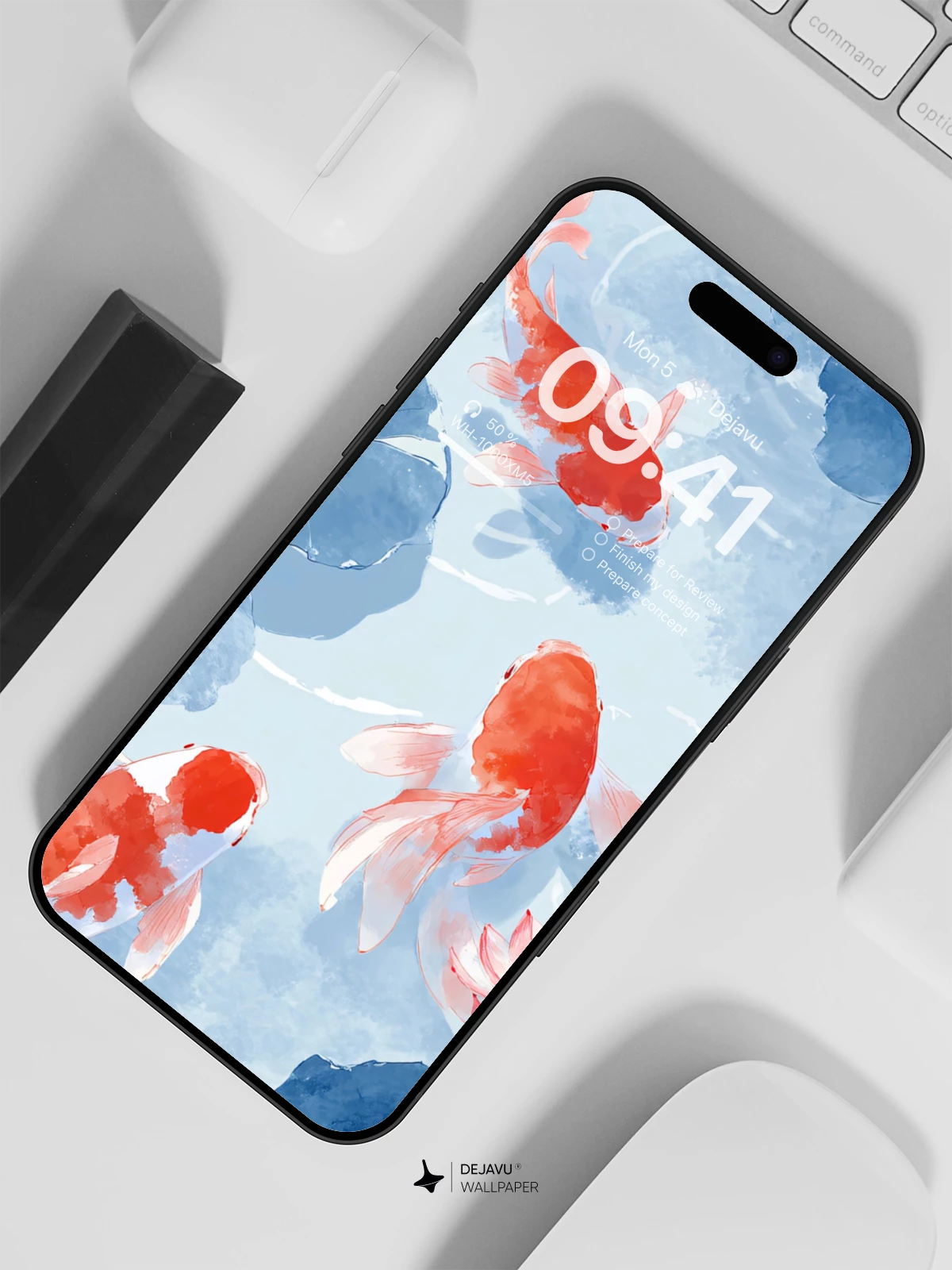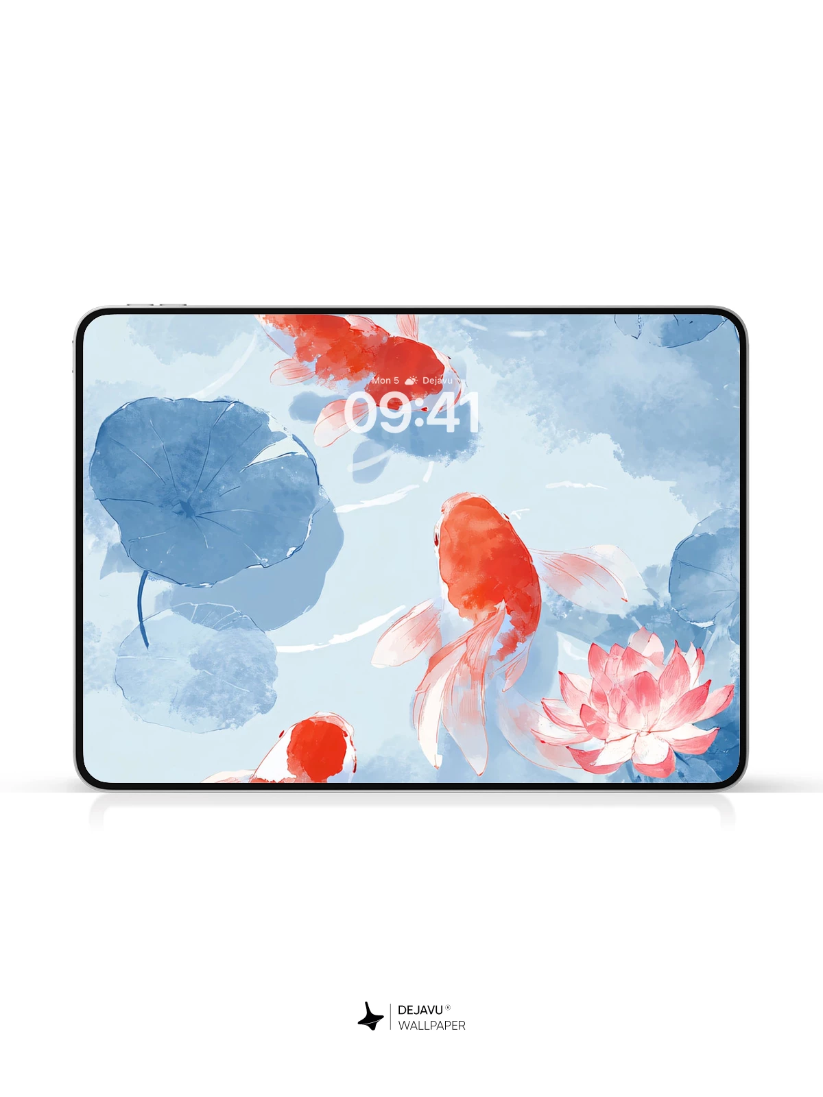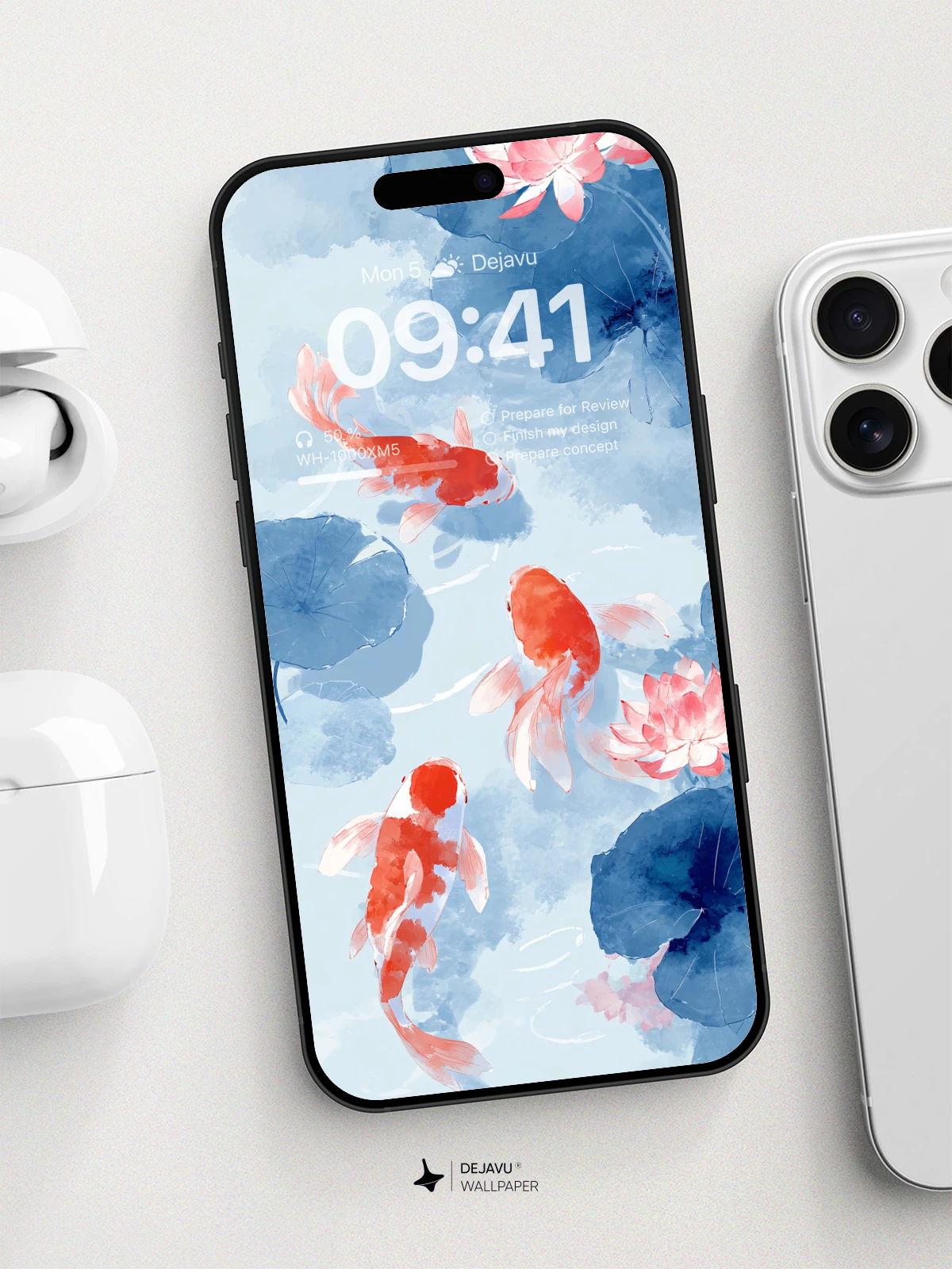 Inspired by traditional East Asian ink wash painting, this 8K wallpaper captures the peaceful elegance of koi fish gliding through a tranquil pond adorned with blooming lotus flowers and deep blue lily pads. The soft watercolor textures evoke a sense of calm and harmony, making it ideal for iPhone, Android, or tablet screens. Perfect for those who appreciate nature-inspired art and mindful aesthetics, this design transforms your device into a quiet retreat of beauty and balance.