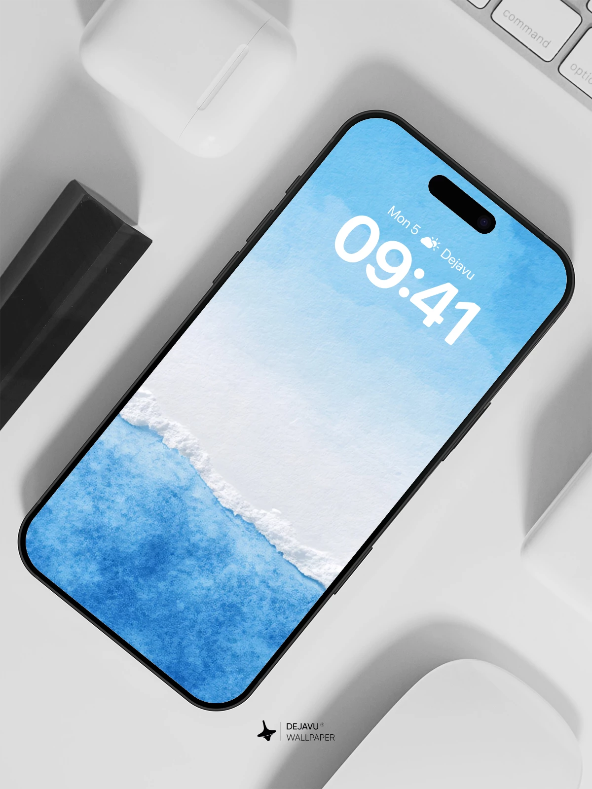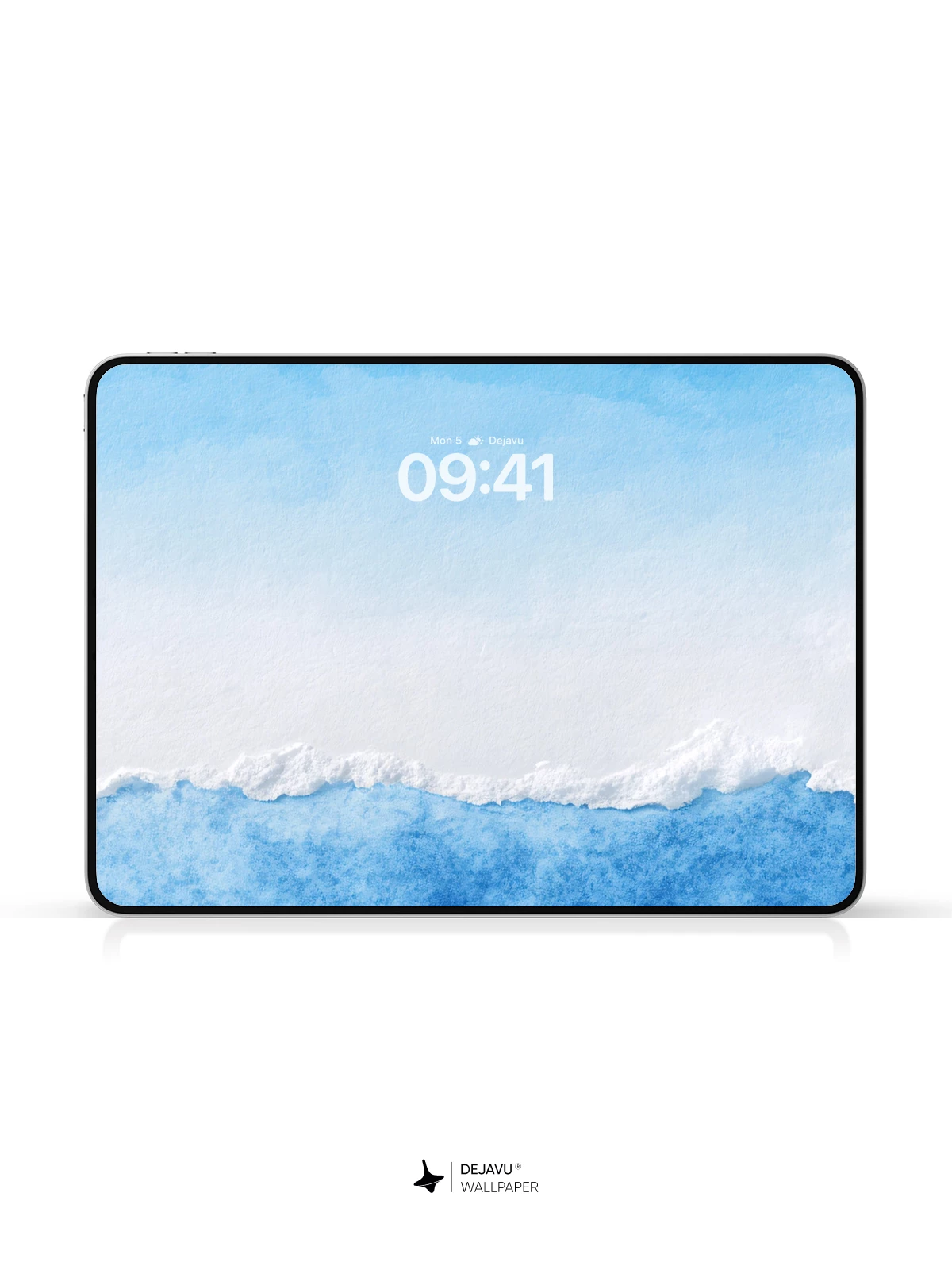 This ethereal watercolor artwork blends a dreamy blue sky with gentle ocean waves, creating a peaceful horizon that feels both timeless and soothing. Inspired by the fluidity of nature and the delicate textures of traditional watercolor painting, it captures the quiet magic of a coastal moment. Ideal as an 8K wallpaper for iPhone, Android, or tablets, this design brings a calming aesthetic to your screen—perfect for those who seek serenity in their daily digital experience.