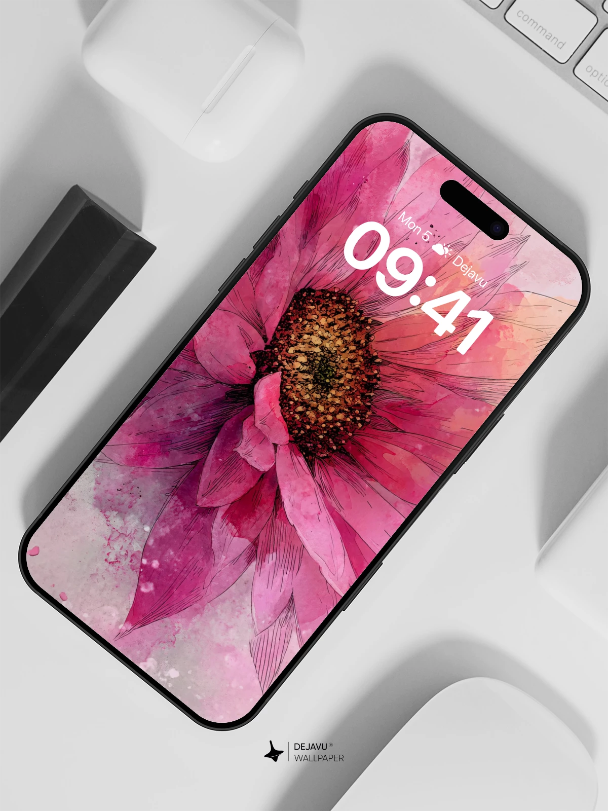 This stunning watercolor artwork captures the delicate beauty of a sunflower transformed into a surreal floral masterpiece, with soft gradients of magenta, rose, and amber radiating from a rich, textured center. Inspired by botanical elegance and expressive brushwork, it evokes a sense of gentle wonder and natural grace. Ideal for iPhone, Android, and tablets, this 8K wallpaper brings artistic depth and emotional warmth to any screen, making everyday moments feel more poetic.