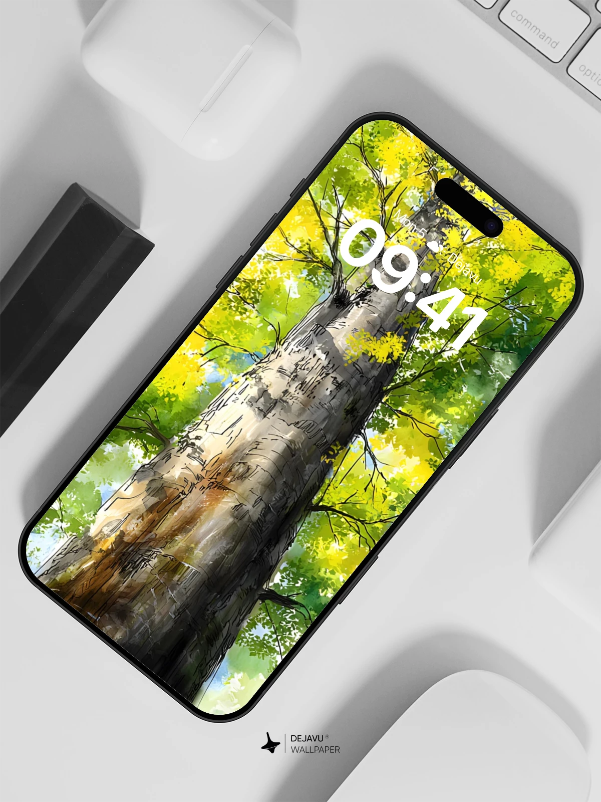 This stunning watercolor-style illustration captures the towering grace of a single tree, its trunk rising majestically through a canopy of luminous green and yellow leaves. Inspired by the expressive brushwork of traditional watercolor art, the piece evokes a sense of peace and connection with nature. Ideal for 8K wallpaper on iPhone, Android, or tablets, it brings a breath of fresh forest air to your device’s screen.