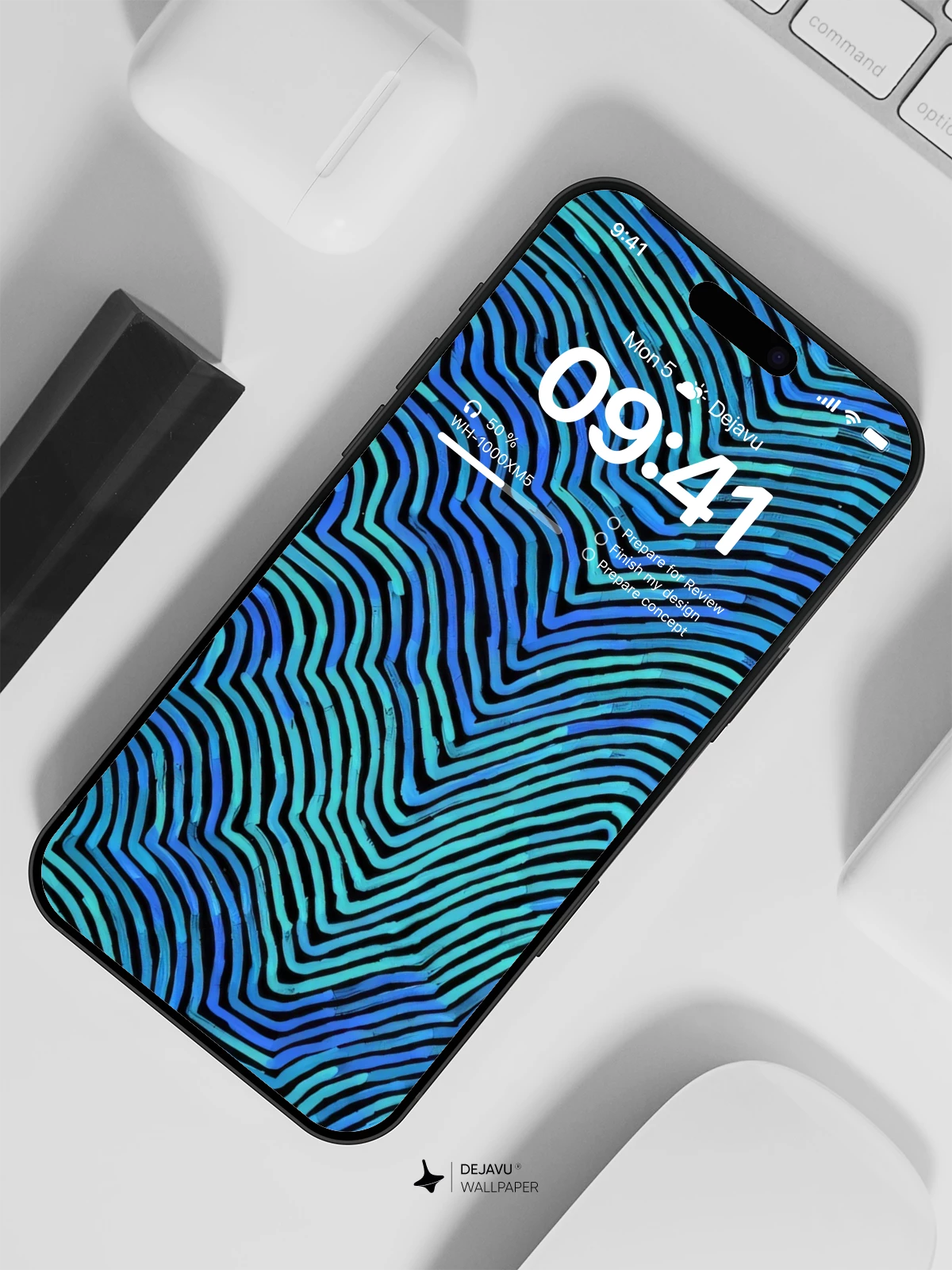 This design features a dynamic maze of undulating lines in shades of electric and deep blue against a stark black field. The high-contrast pattern creates a sense of movement, perfect for adding a stylish, contemporary feel to your phone or tablet display.