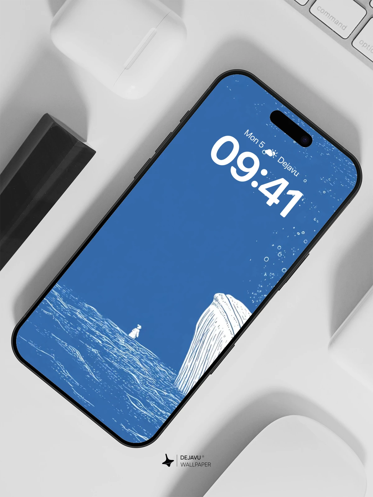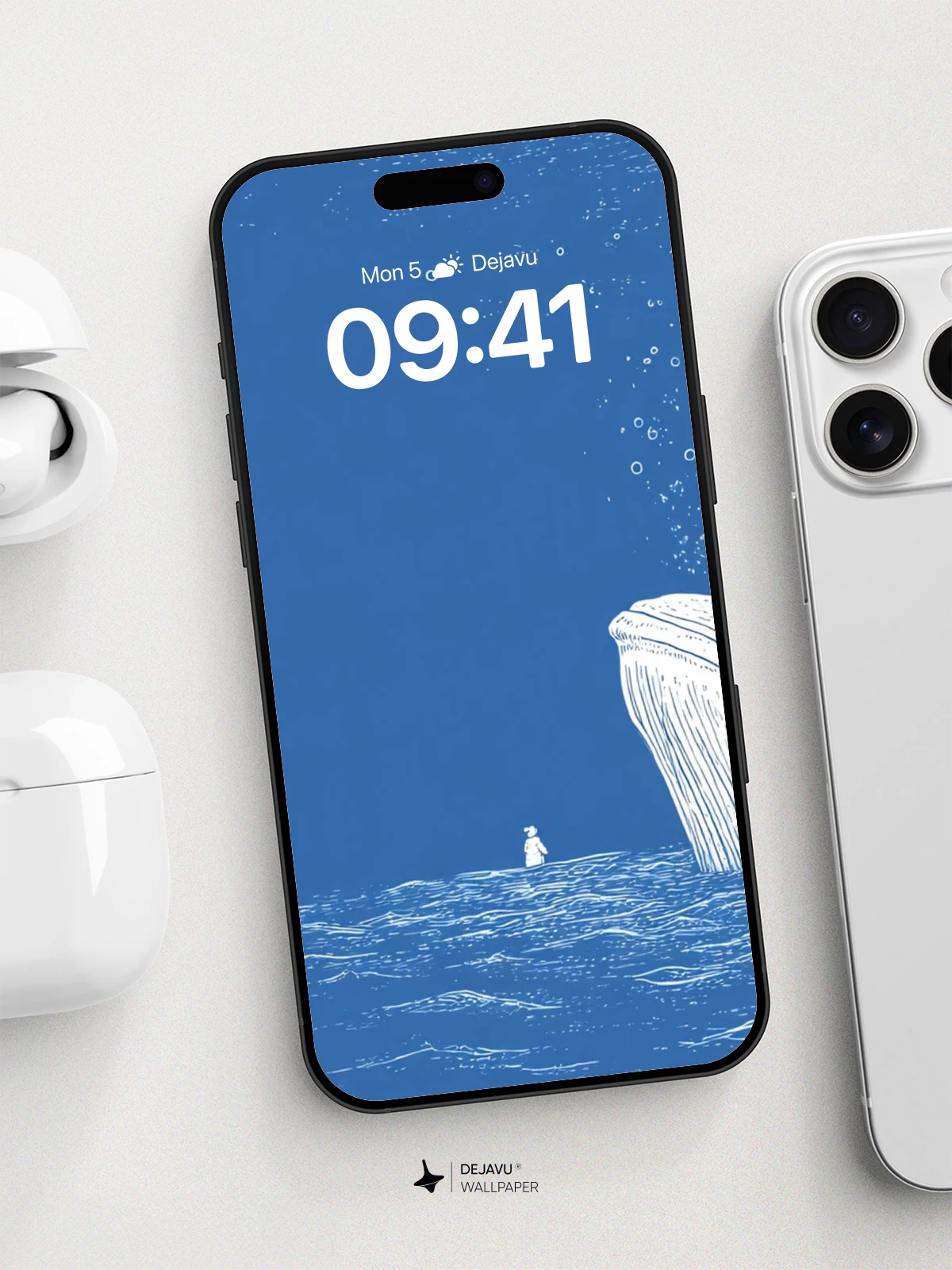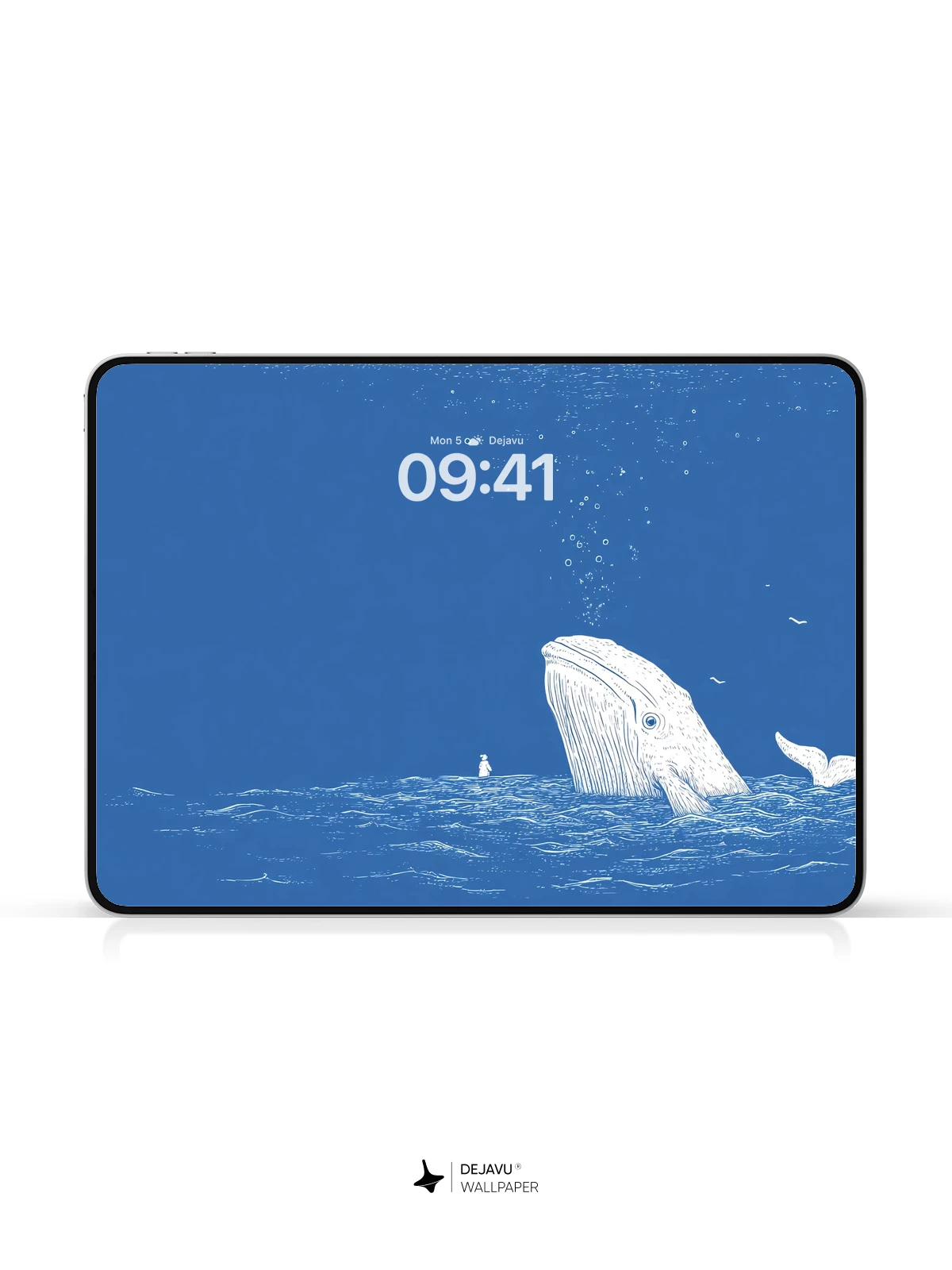 This tranquil ocean scene captures the quiet majesty of nature with a large, calm whale surfacing beside a small puffin, creating a poetic moment of scale and serenity. Rendered in soft white line art against a deep blue sea, the minimalist style evokes a sense of solitude and wonder. Ideal as an 8K wallpaper for iPhone, Android, or tablets, this image brings peaceful elegance to any mobile screen. The delicate bubbles and gentle waves add subtle movement, making it a timeless choice for those who appreciate understated beauty.
