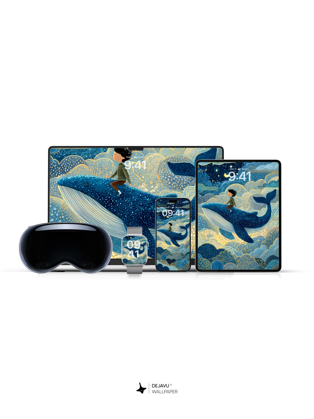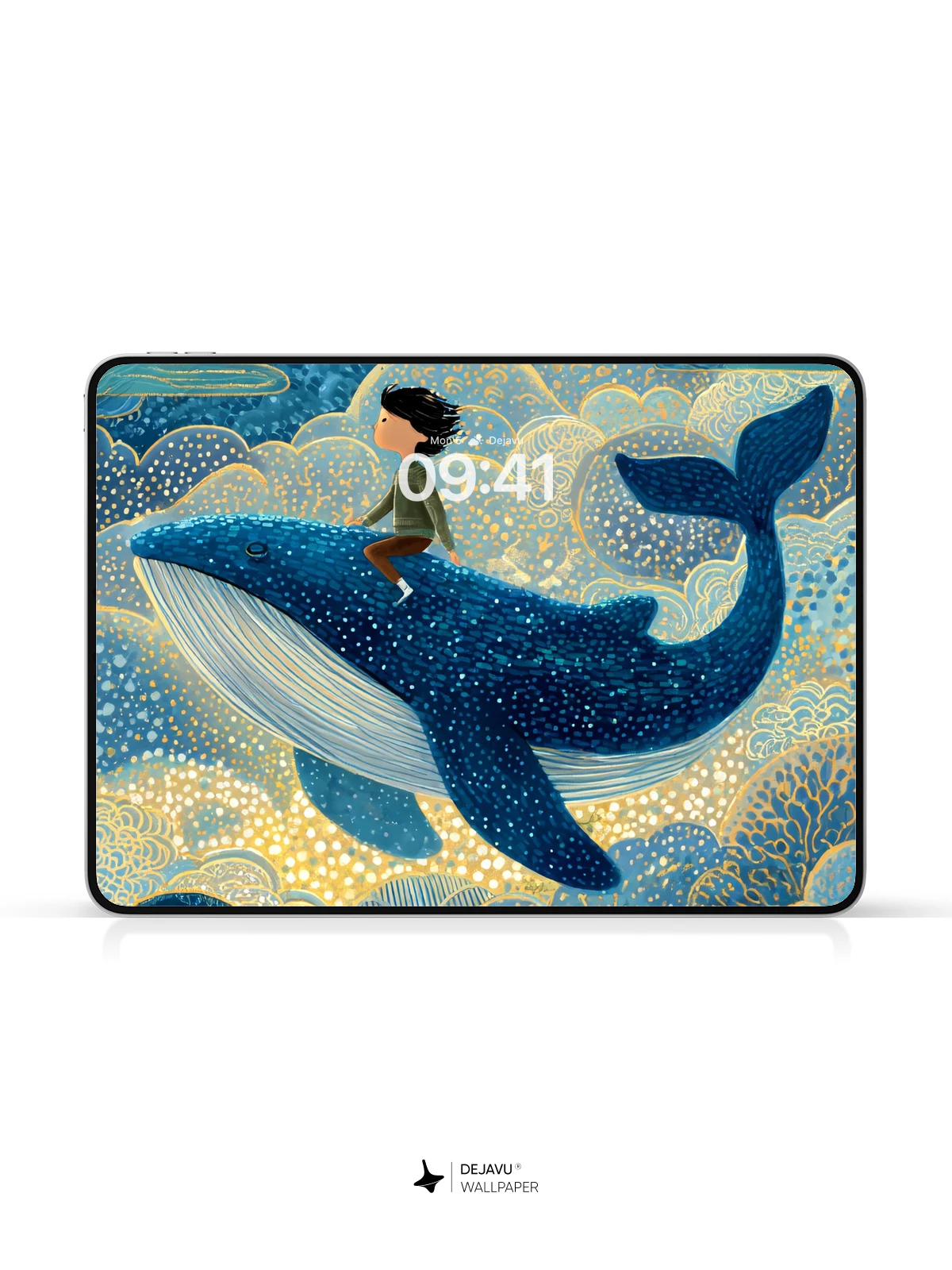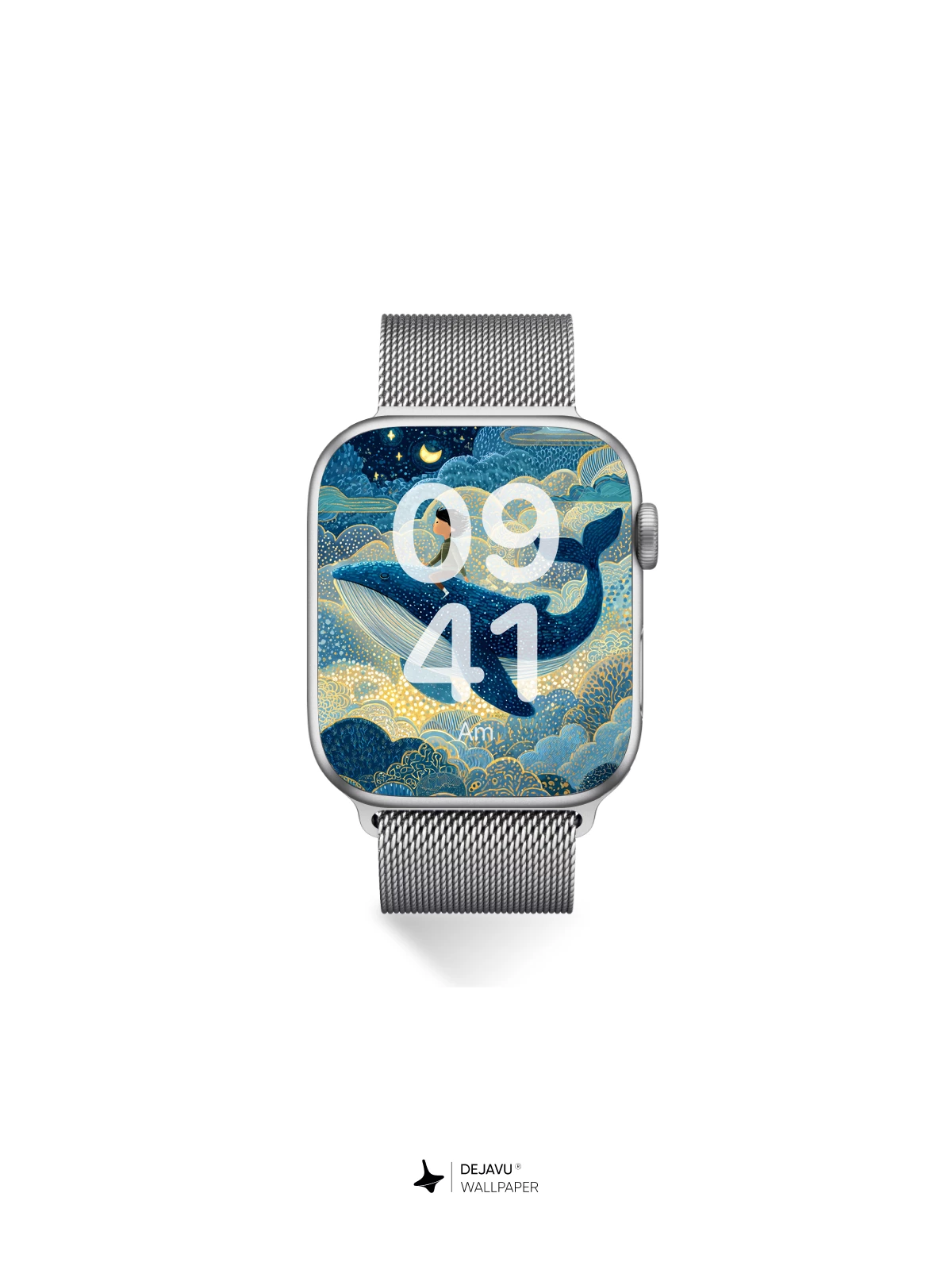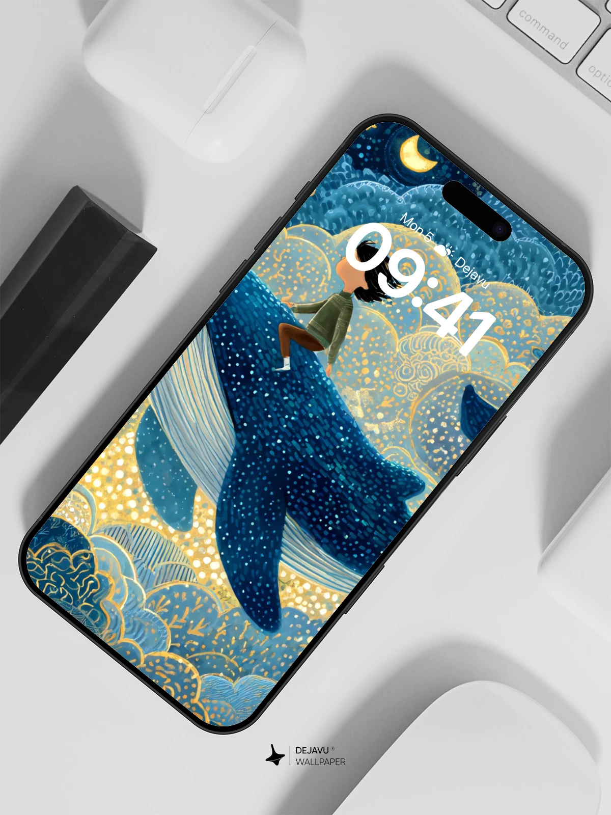 This enchanting 8K wallpaper captures a whimsical fantasy scene where a young rider soars atop a majestic blue whale through a luminous night sky filled with stars, crescent moons, and golden-veined clouds. Inspired by the delicate intricacy of traditional East Asian art, the illustration blends celestial wonder with oceanic magic, evoking a sense of timeless adventure and quiet awe. Perfect for iPhone, Android, and tablets, this high-resolution design transforms any screen into a portal to imagination.