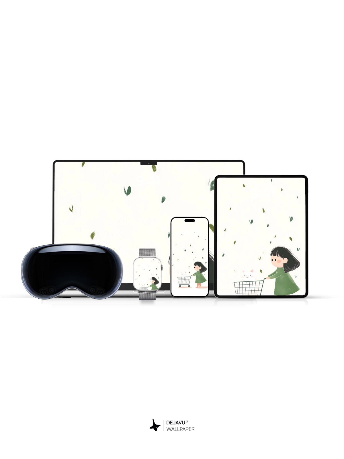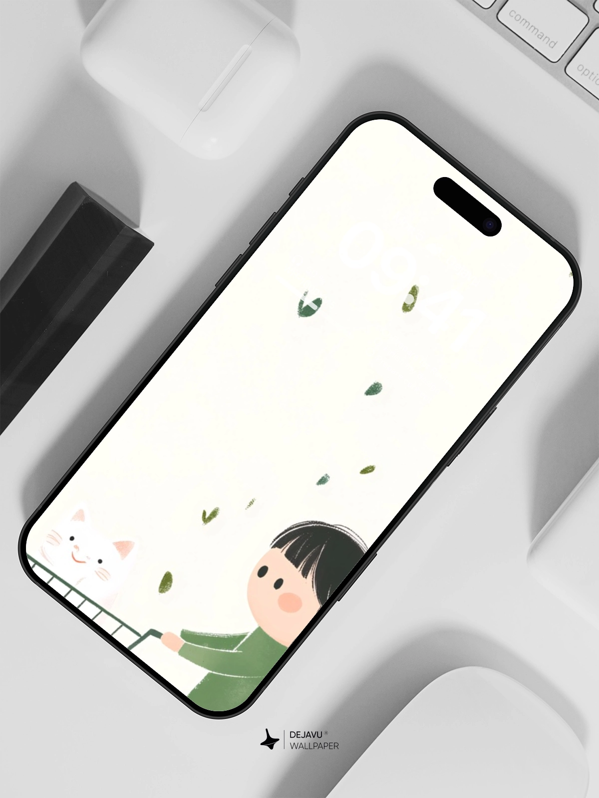 Take a delightful autumn stroll with this whimsical 8K wallpaper, featuring a girl pushing a shopping cart with a cute cat. Perfect for bringing a touch of joy and warmth to your iPhone or Android screen.