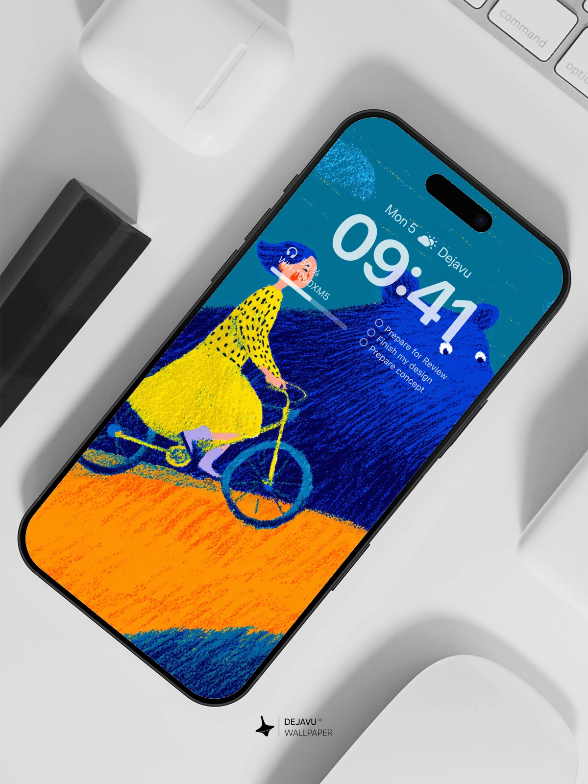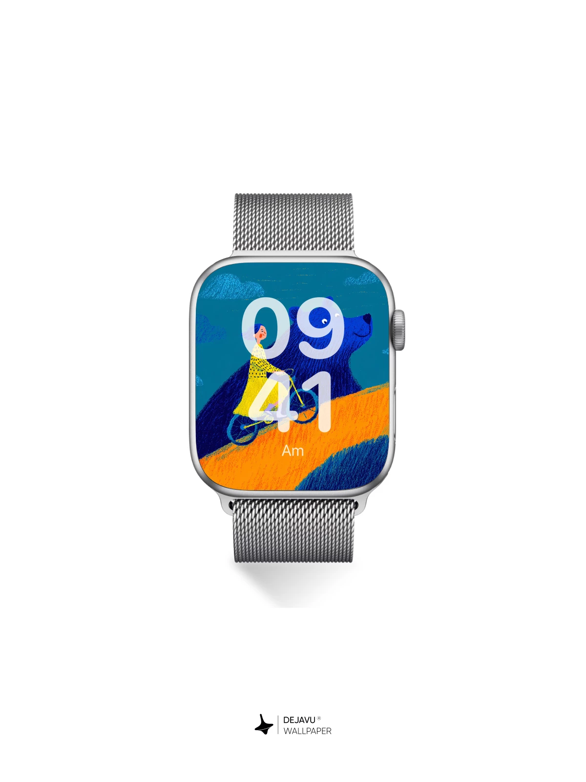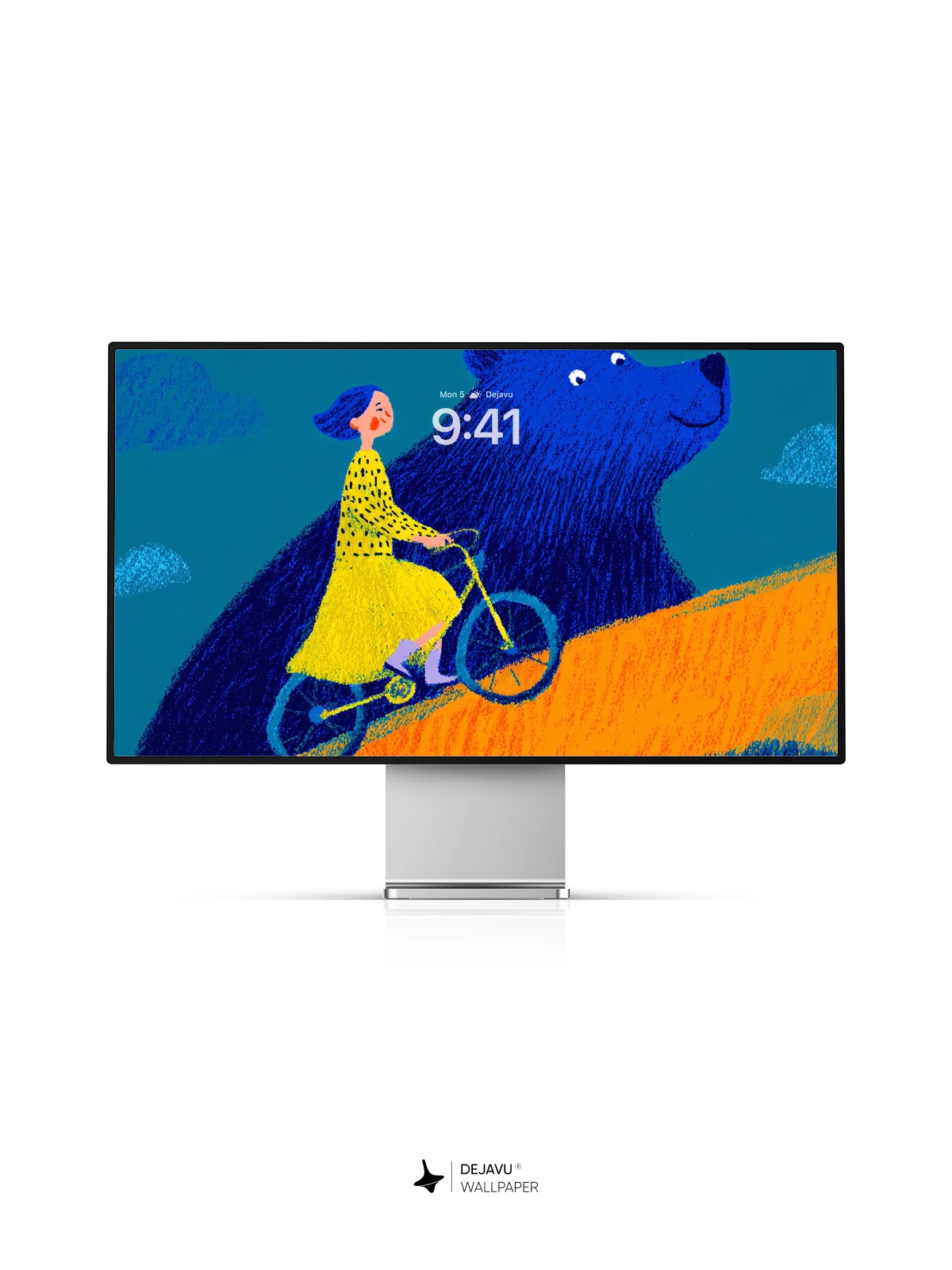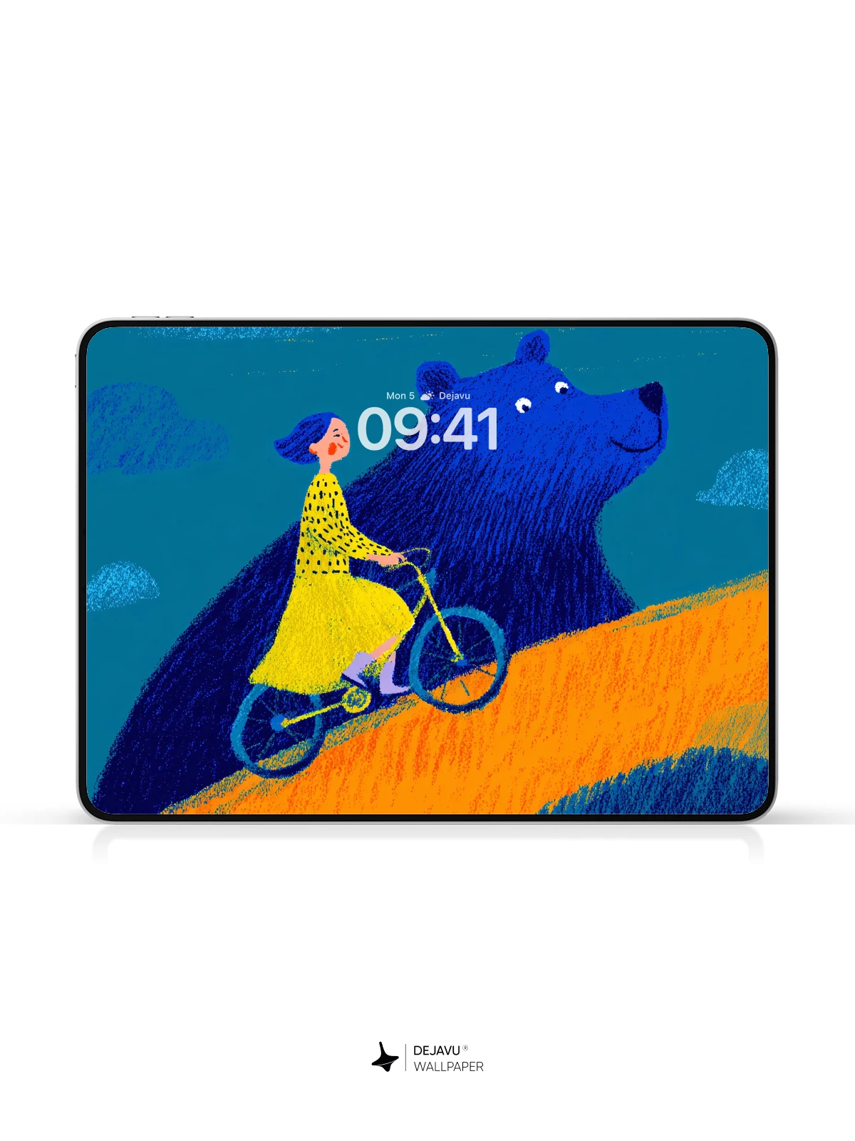 This enchanting artwork features a young girl in a yellow dress cycling alongside a gentle, oversized blue bear on a sunlit hill under a teal sky. With its whimsical narrative and bold, expressive style reminiscent of modern children’s book illustrations, the image evokes wonder and imagination. The rich textures and harmonious palette make it an ideal 8K wallpaper for iPhone, Android, or tablet screens, bringing a touch of magical storytelling to your device.