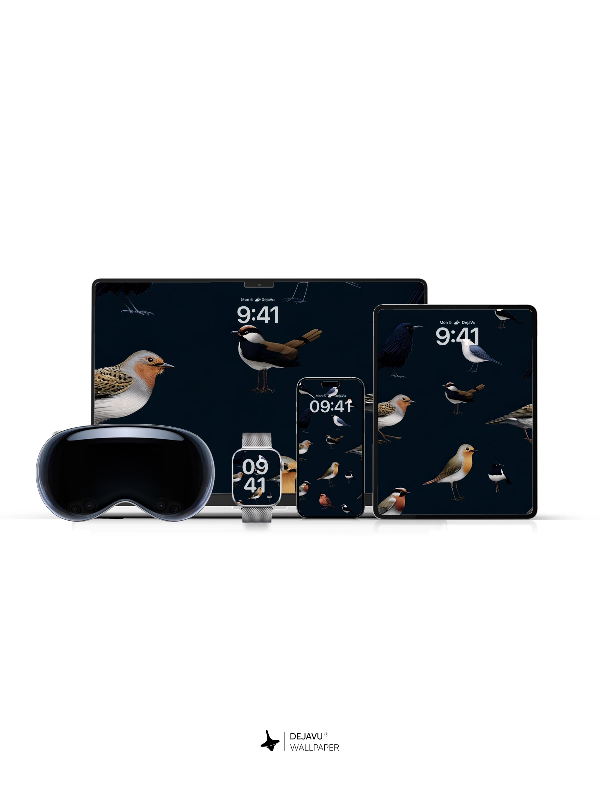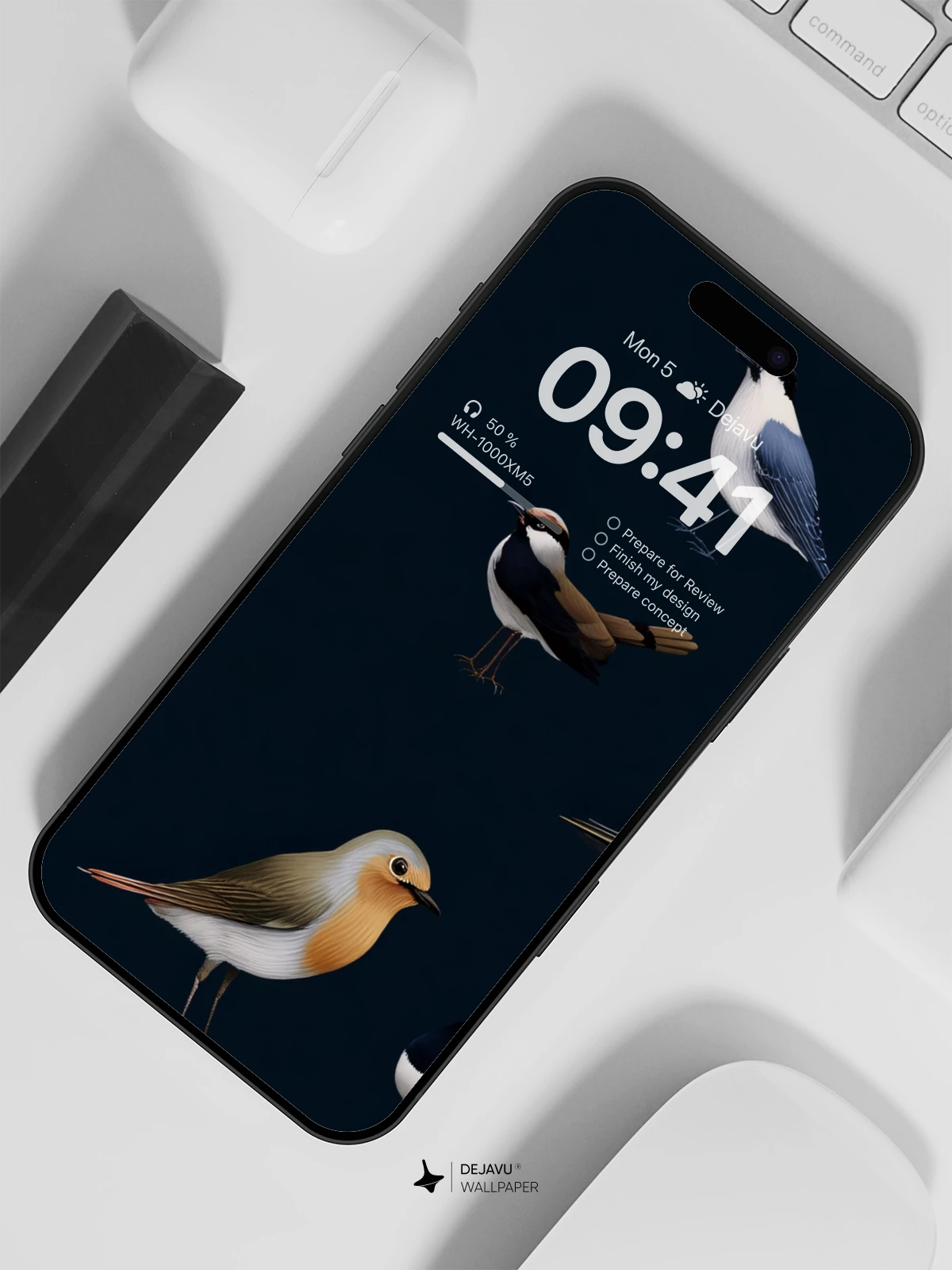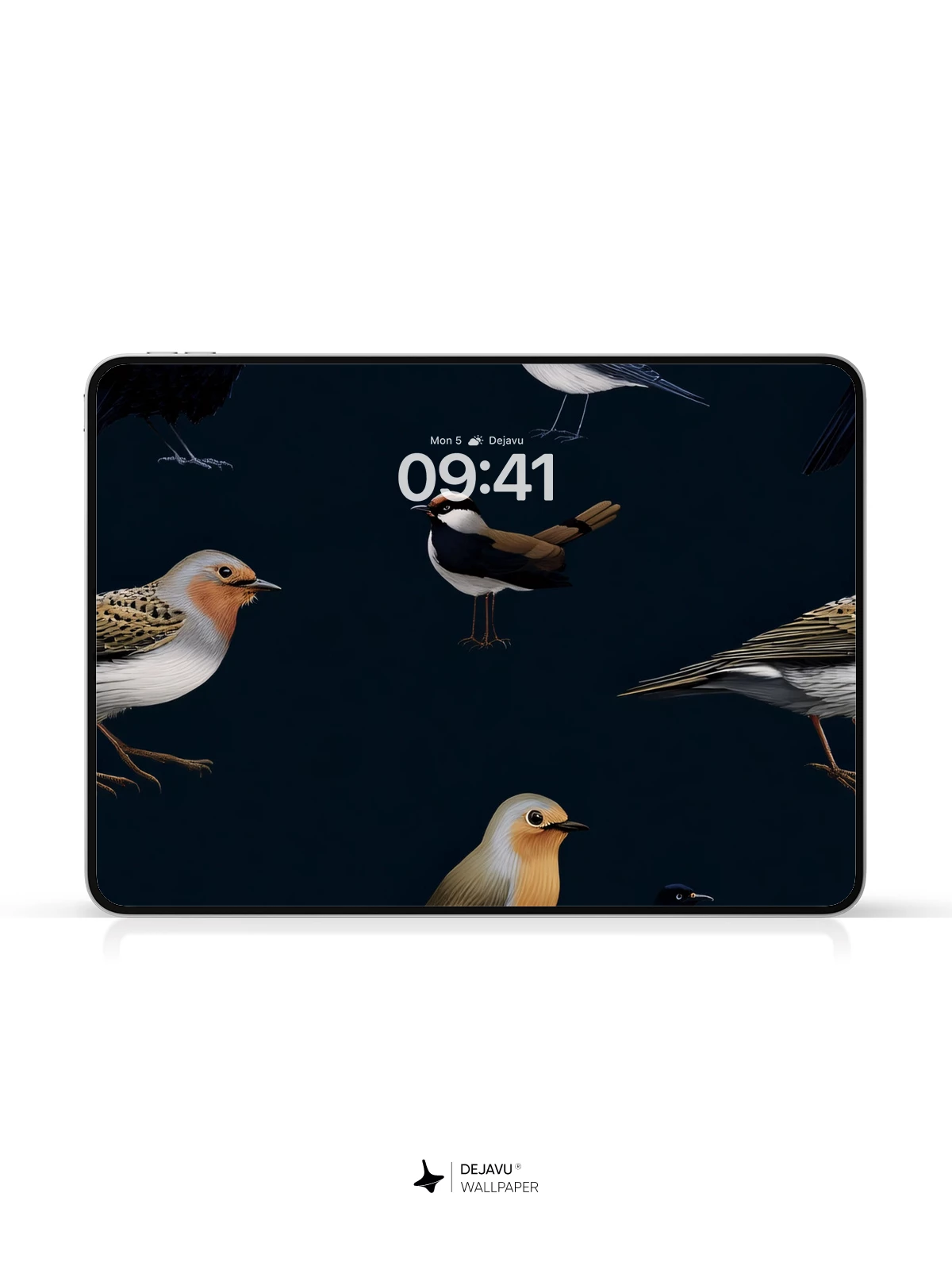 This beautifully crafted 8K wallpaper showcases a charming array of stylized birds in various poses, set against a sleek dark backdrop. Each bird is rendered with delicate realism and vivid coloration, creating a harmonious and lively pattern ideal for iPhone, Android, and tablets. The design evokes a sense of quiet wonder and natural grace, making it a perfect choice for those who appreciate artful, nature-inspired aesthetics. Whether you’re drawn to the elegance of the robin or the boldness of the black-and-white songbirds, this wallpaper blends whimsy and sophistication seamlessly.