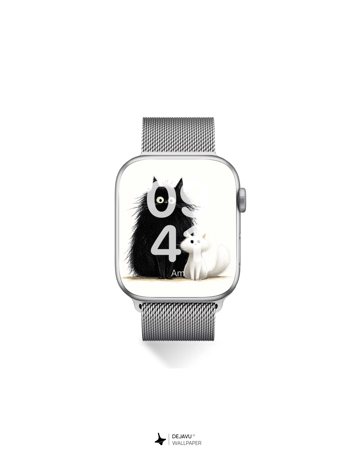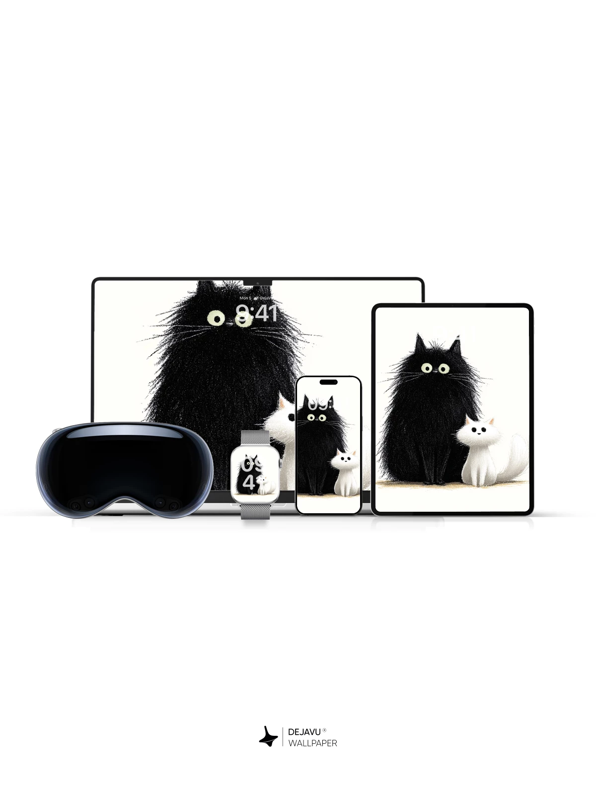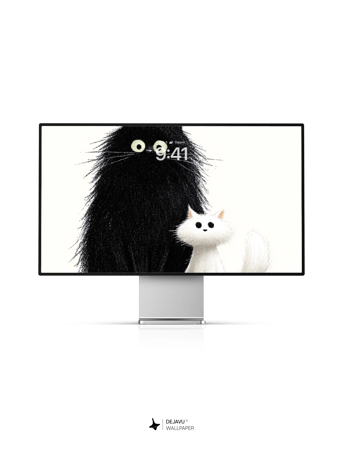 This delightful illustration features a large, fluffy black cat with wide eyes sitting beside a small, soft white kitten, creating a heartwarming contrast of size and color. The playful yet serene composition exudes charm and warmth, making it ideal as a high-resolution 8K wallpaper for iPhone, Android, or any mobile device. With its cartoonish elegance and gentle humor, this artwork brings a touch of joy to your screen, perfect for those who love cats and whimsical art.
