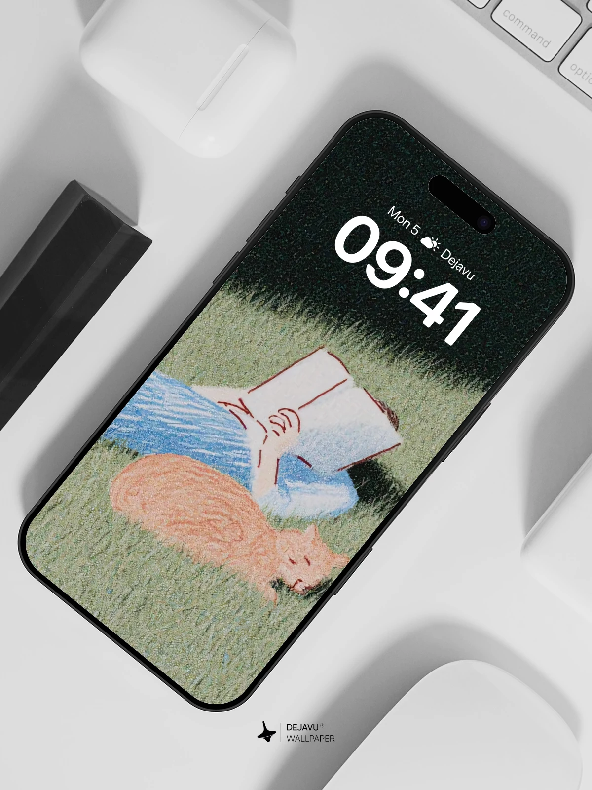This gentle illustration captures a quiet moment of peace—a ginger cat napping beside a pair of white boots on a soft green lawn, bathed in dappled sunlight. With its delicate lines and soothing color palette, the artwork evokes a sense of calm and stillness, ideal for those seeking tranquil digital surroundings. Perfectly suited as an 8K wallpaper for iPhone, Android, or tablets, it brings a touch of whimsy and warmth to your screen. The minimalist composition and poetic simplicity invite contemplation, making it more than just a background—it’s a tiny escape into serenity.