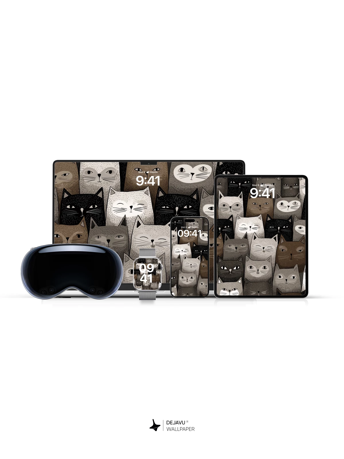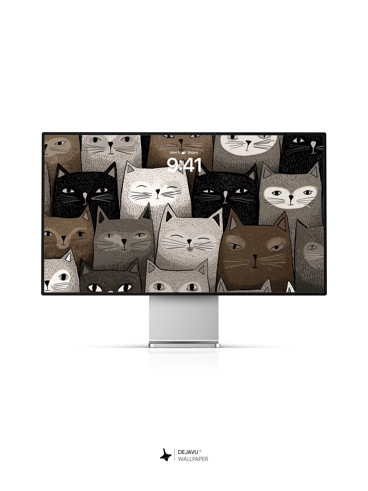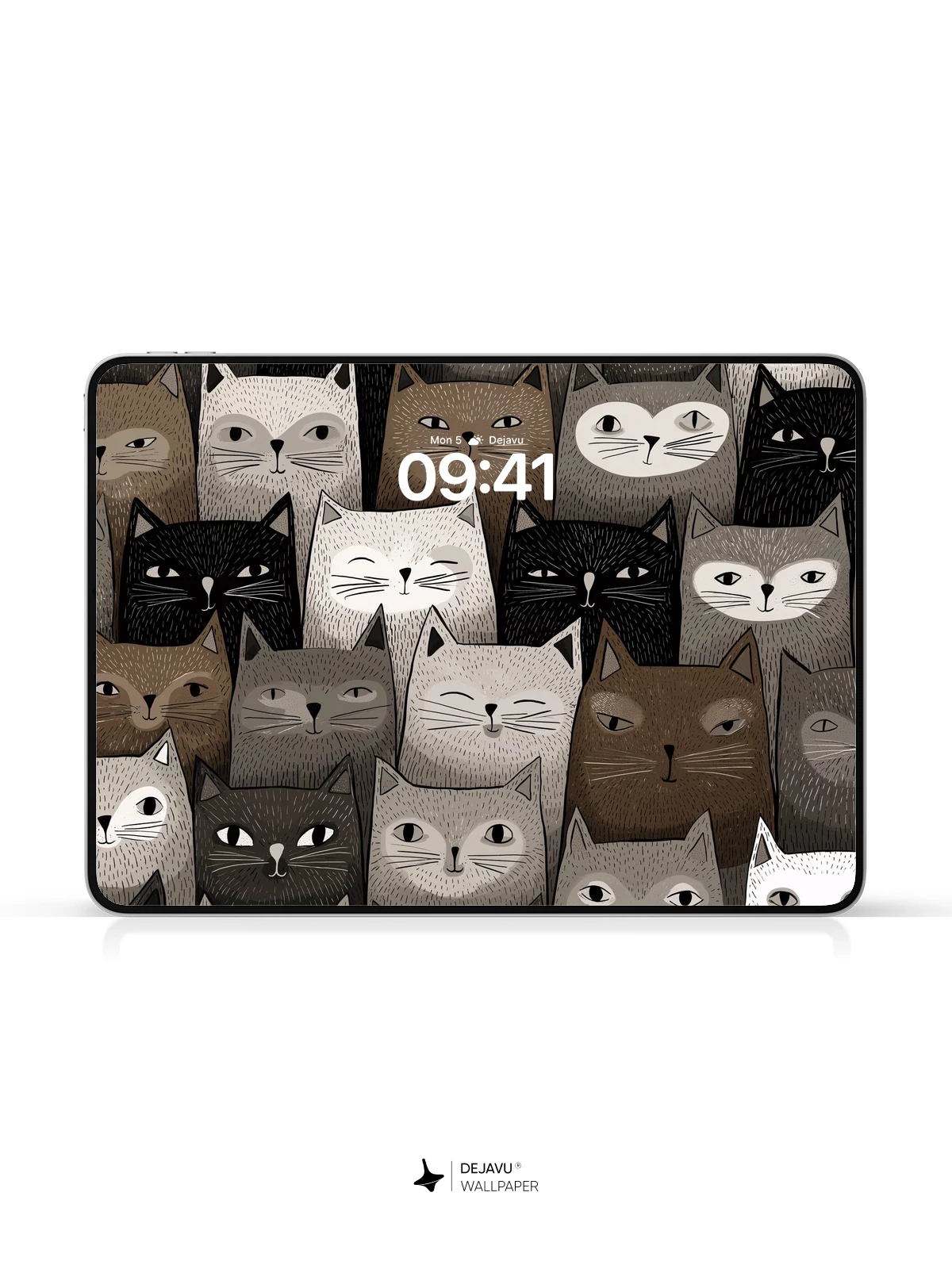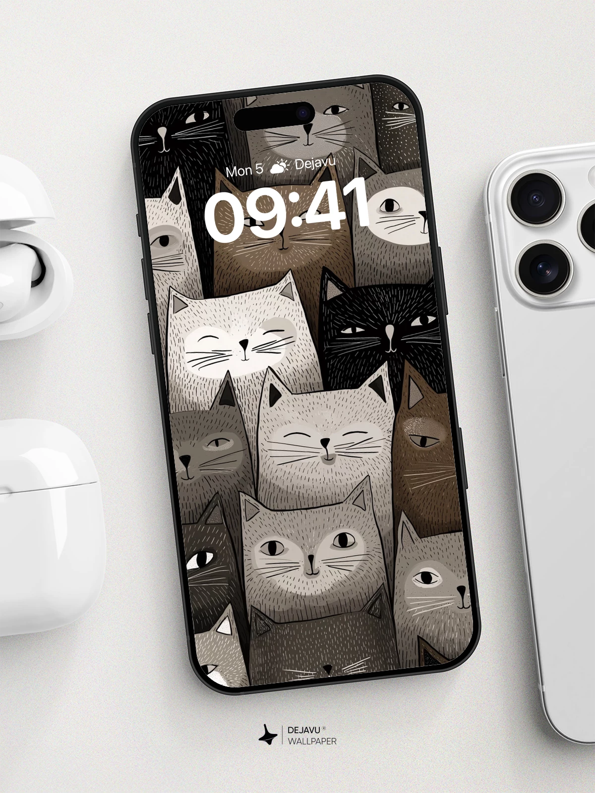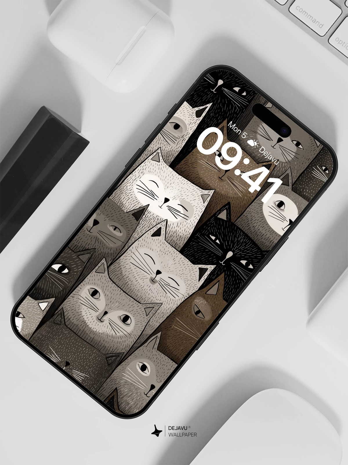 This delightful 8K wallpaper showcases a dense, harmonious pattern of hand-drawn cats in varying shades of gray, black, and white, each with unique expressions and textures. Inspired by minimalist illustration art, the design evokes a cozy, whimsical charm that brings personality to any mobile device screen. Whether you’re using an iPhone or Android phone, this high-resolution artwork adds a touch of feline elegance and creativity to your home screen. The repetitive yet varied composition creates a soothing visual rhythm, making it ideal for daily use on phones, tablets, or even desktops.