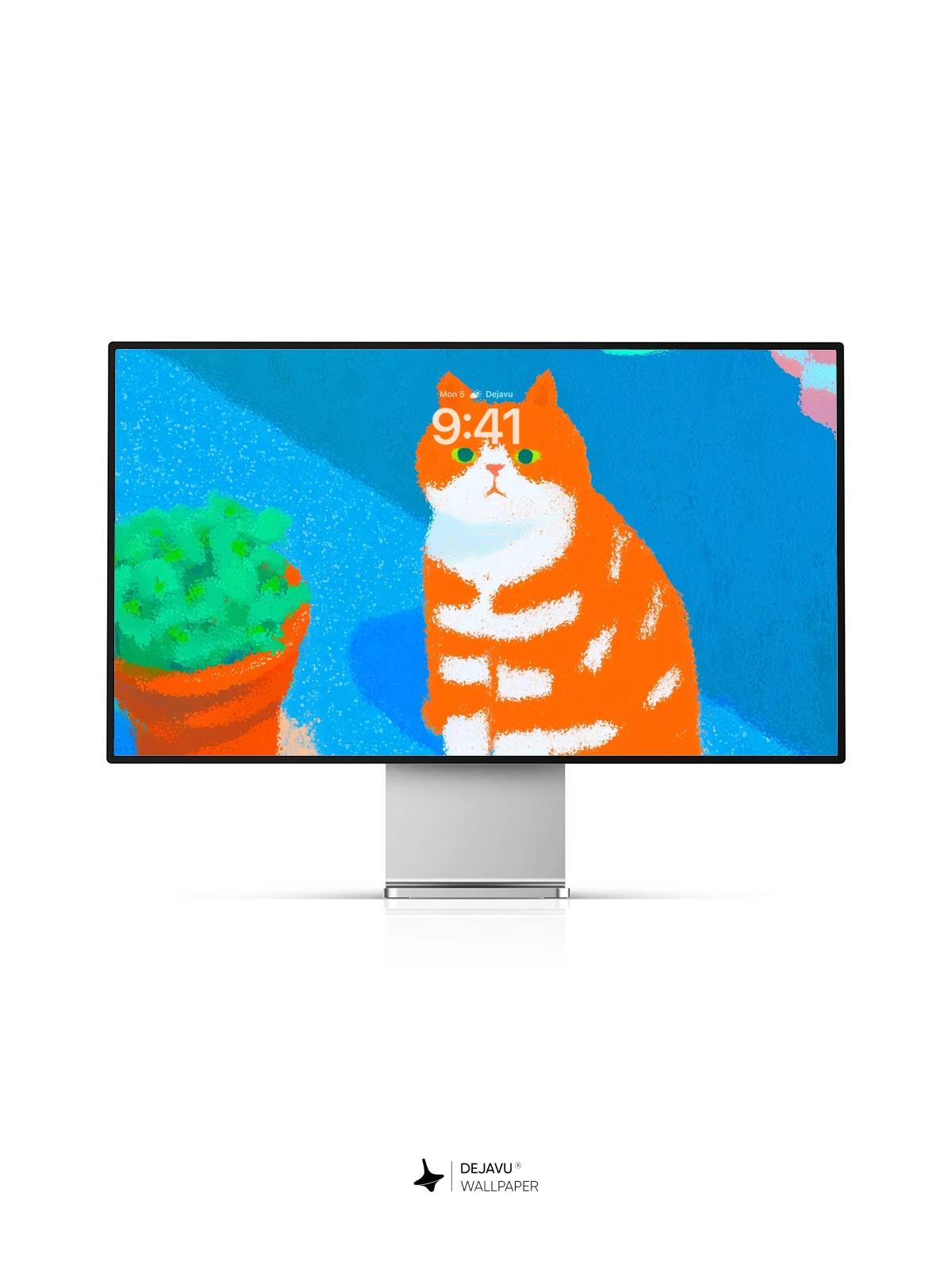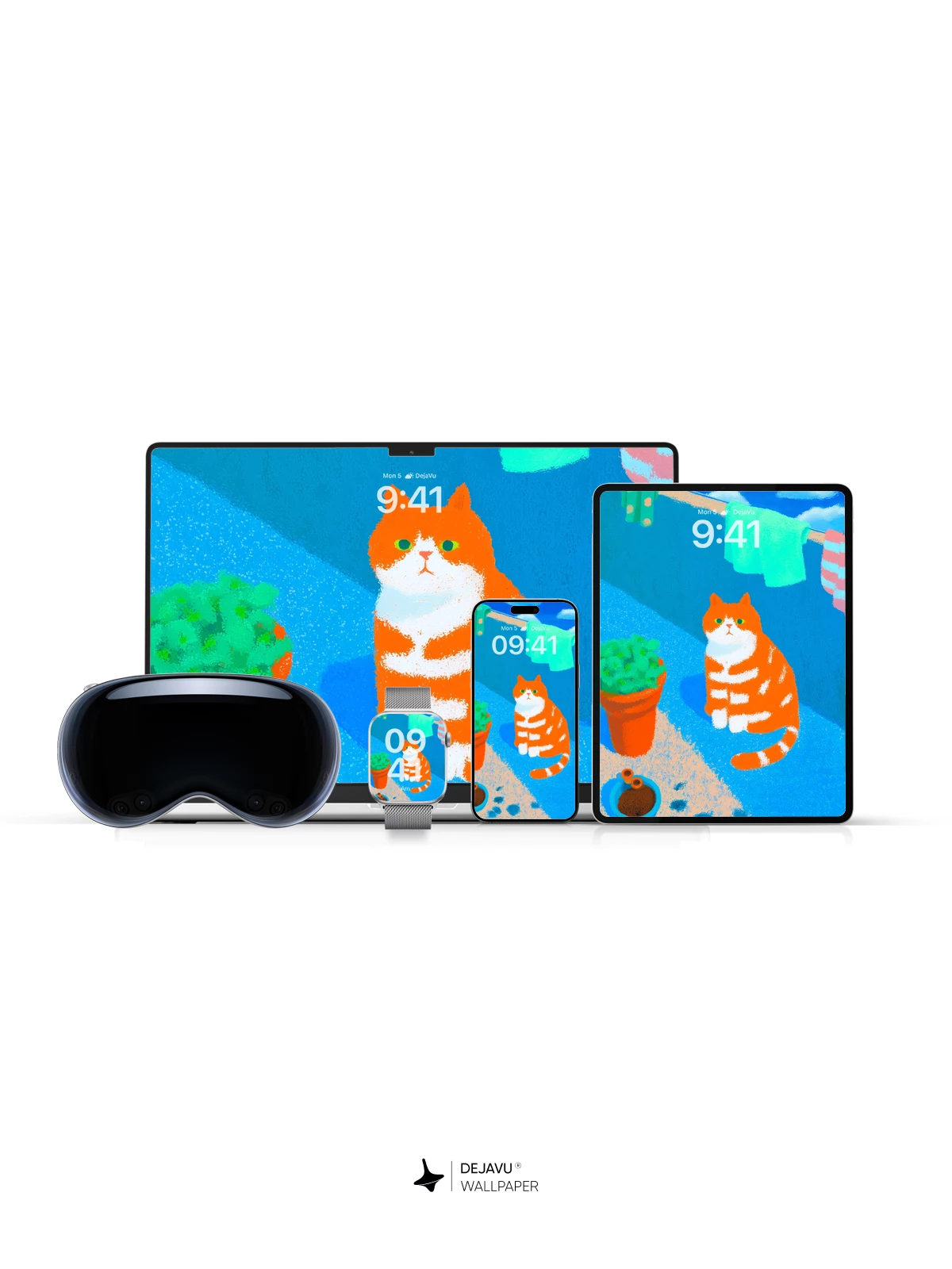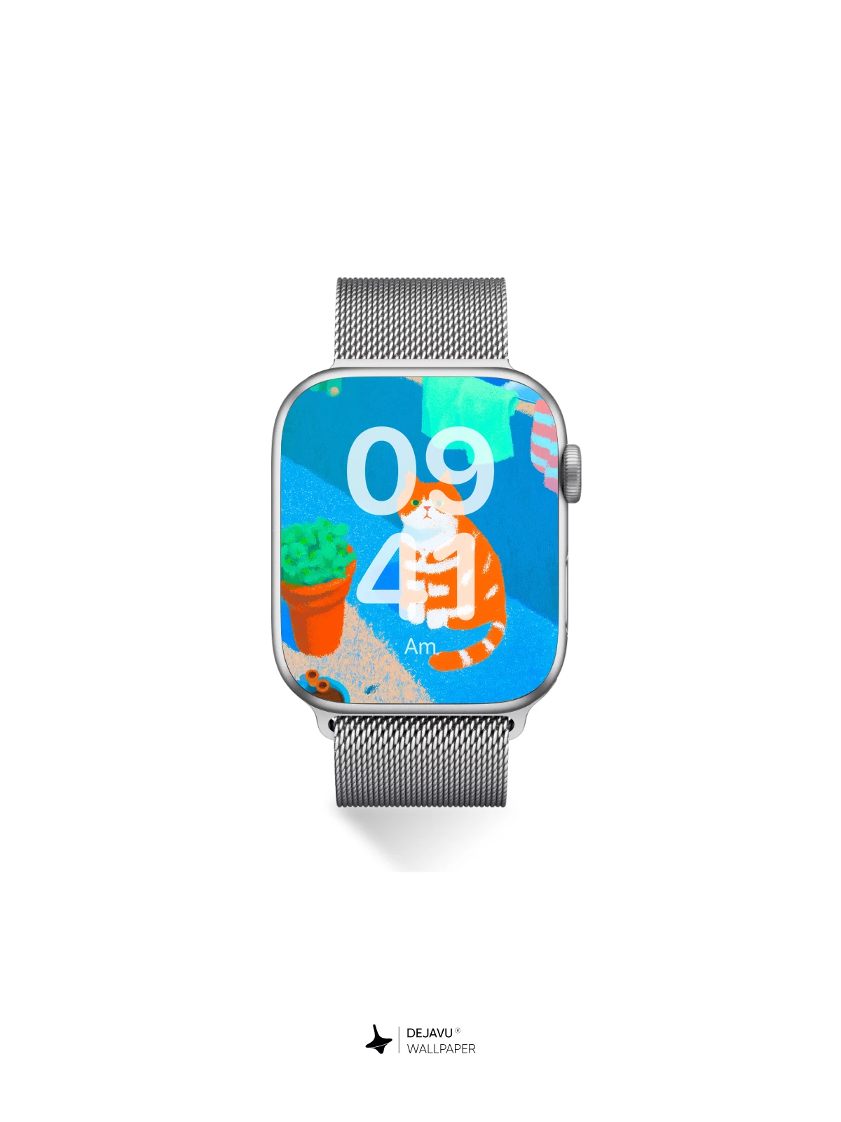 This delightful illustration features a cozy outdoor scene where a striped orange cat lounges beside a terracotta planter, beneath a clothesline fluttering with pastel towels. The vivid palette and soft brushstrokes evoke a joyful, cartoon-style aesthetic, ideal for brightening any iPhone or Android device. With its sunny mood and playful details, this 8K wallpaper brings warmth and whimsy to your screen.