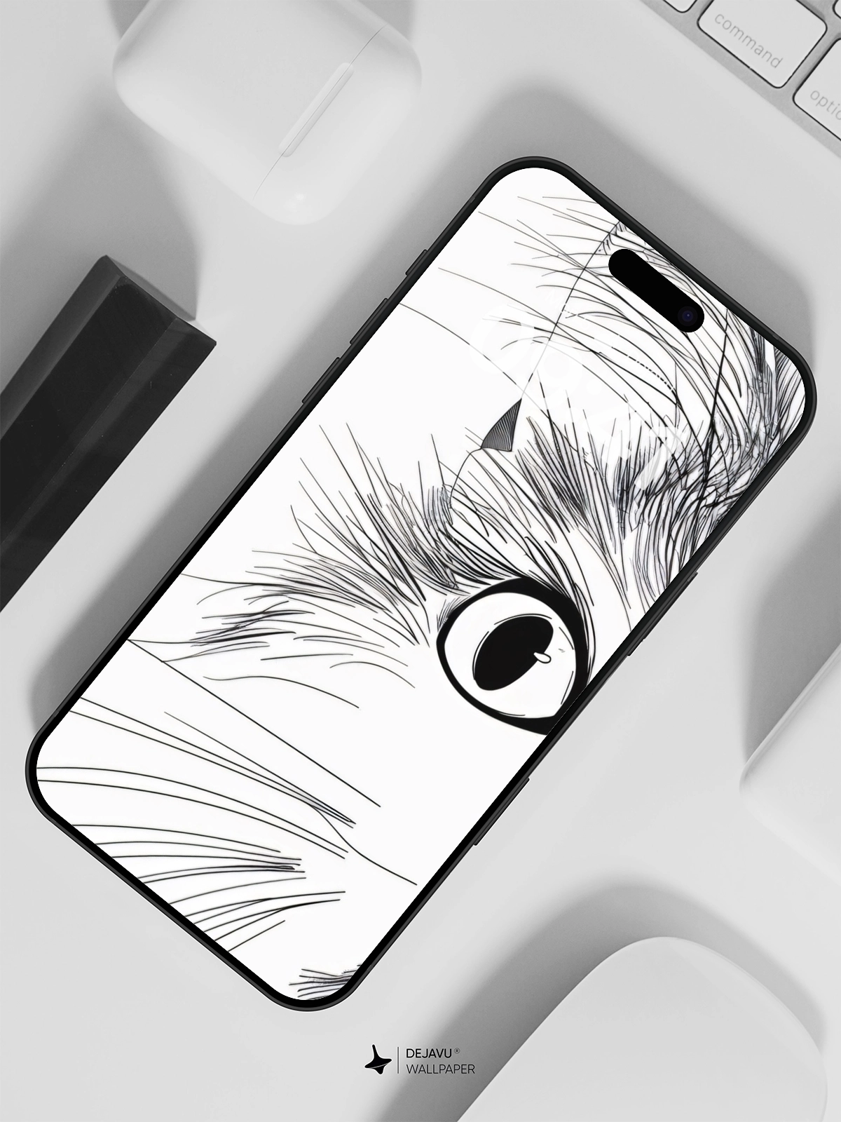 This 8K wallpaper features a whimsical black-and-white cat portrait with intricate fur details and expressive eyes. Perfect for enhancing the screen of your iPhone or Android device, adding a touch of elegance and charm to your daily interactions.