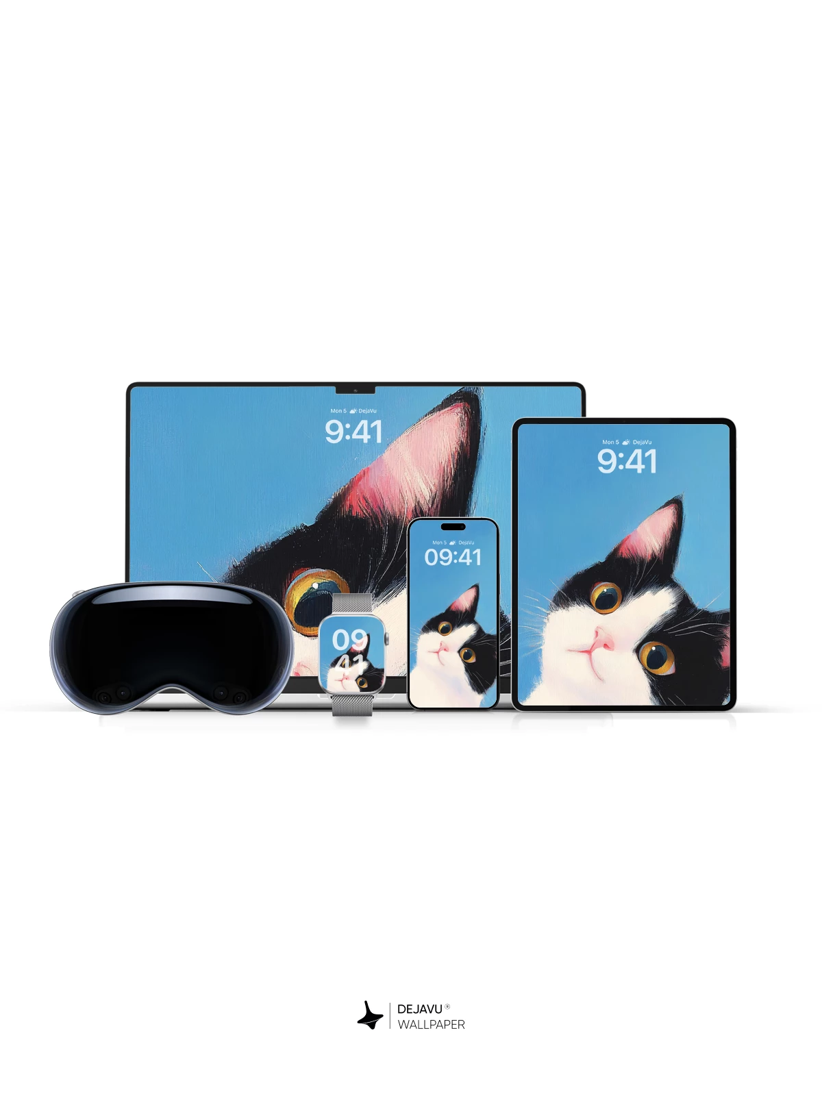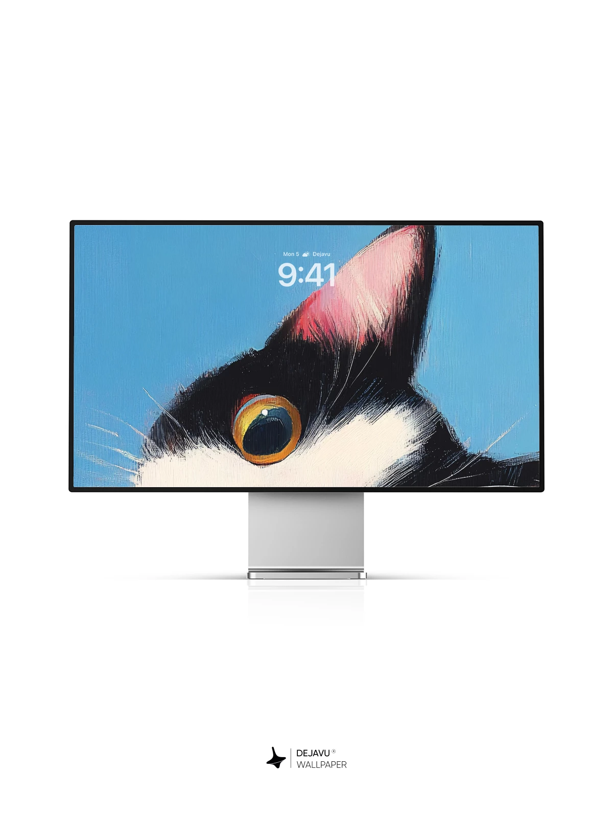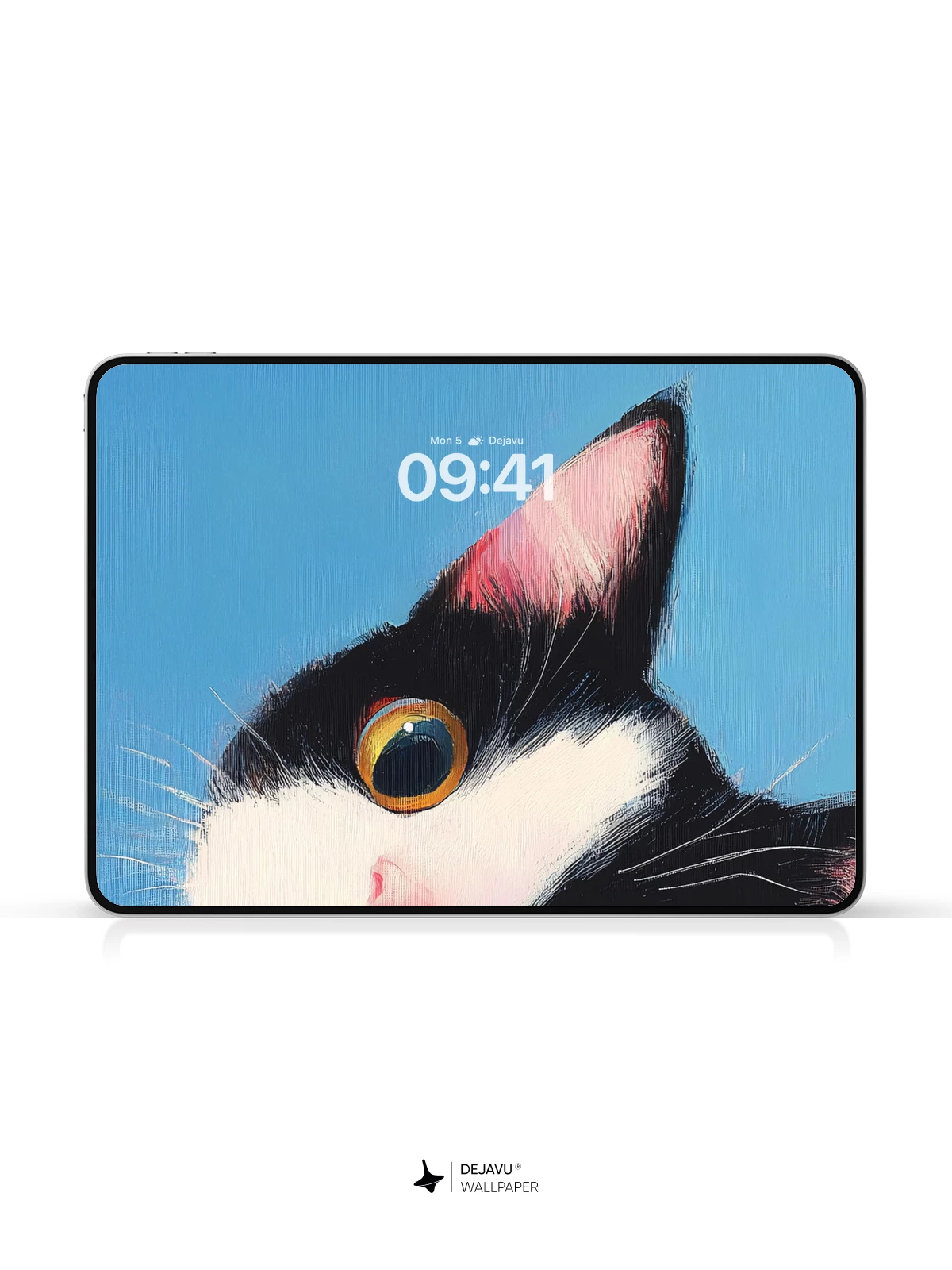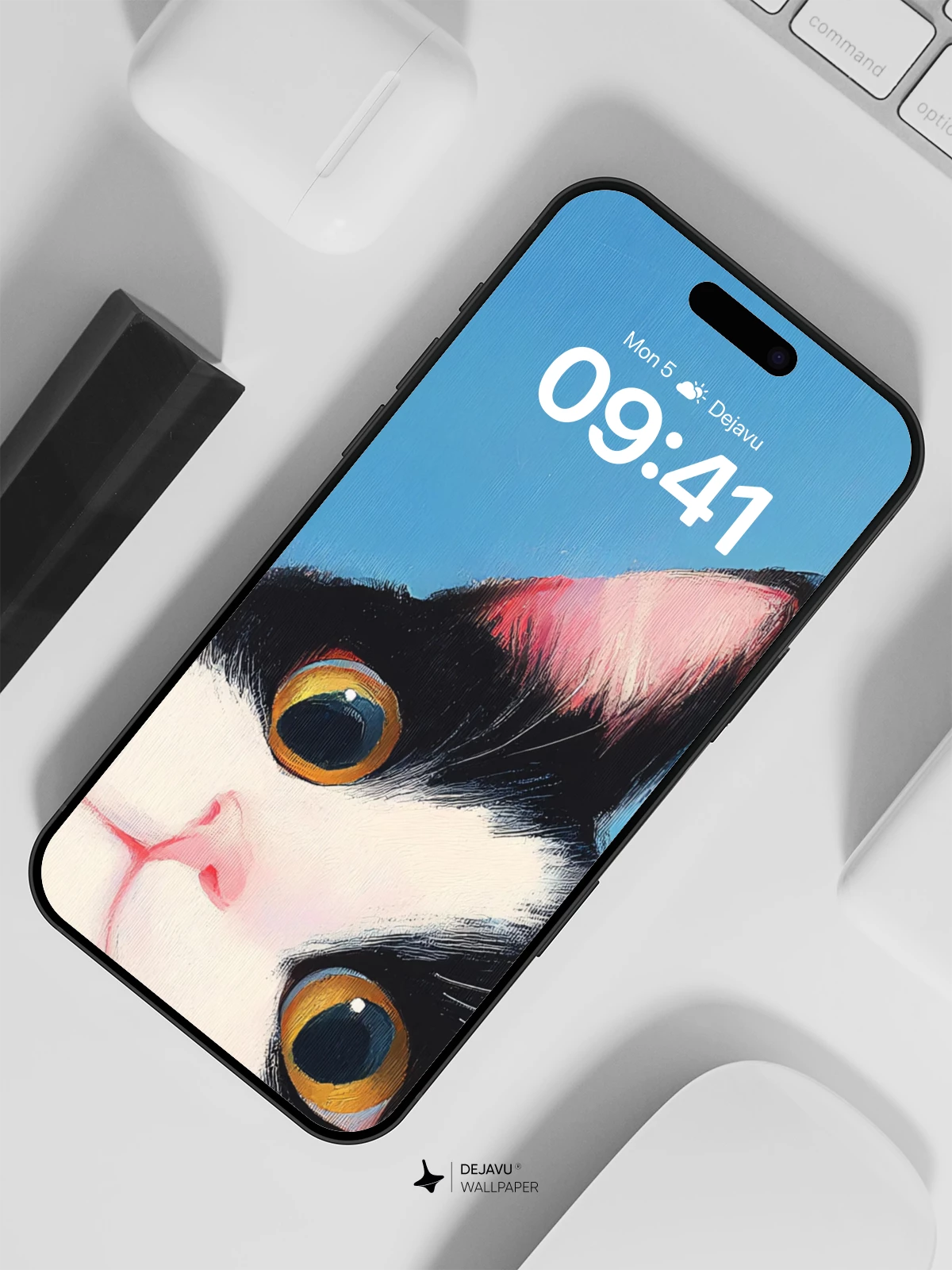 This delightful 8K wallpaper features a close-up of a tuxedo cat with striking amber eyes and delicate pink nose, set against a calming azure background. The painting-style rendering gives it a soft, lifelike texture that adds depth and warmth to any device screen. Ideal for iPhone, Android, or tablet users who love animal art with a touch of elegance, this wallpaper captures the quiet curiosity and gentle charm of feline expression. Its vibrant yet soothing palette makes it a perfect daily companion, blending artistry with modern mobile design.