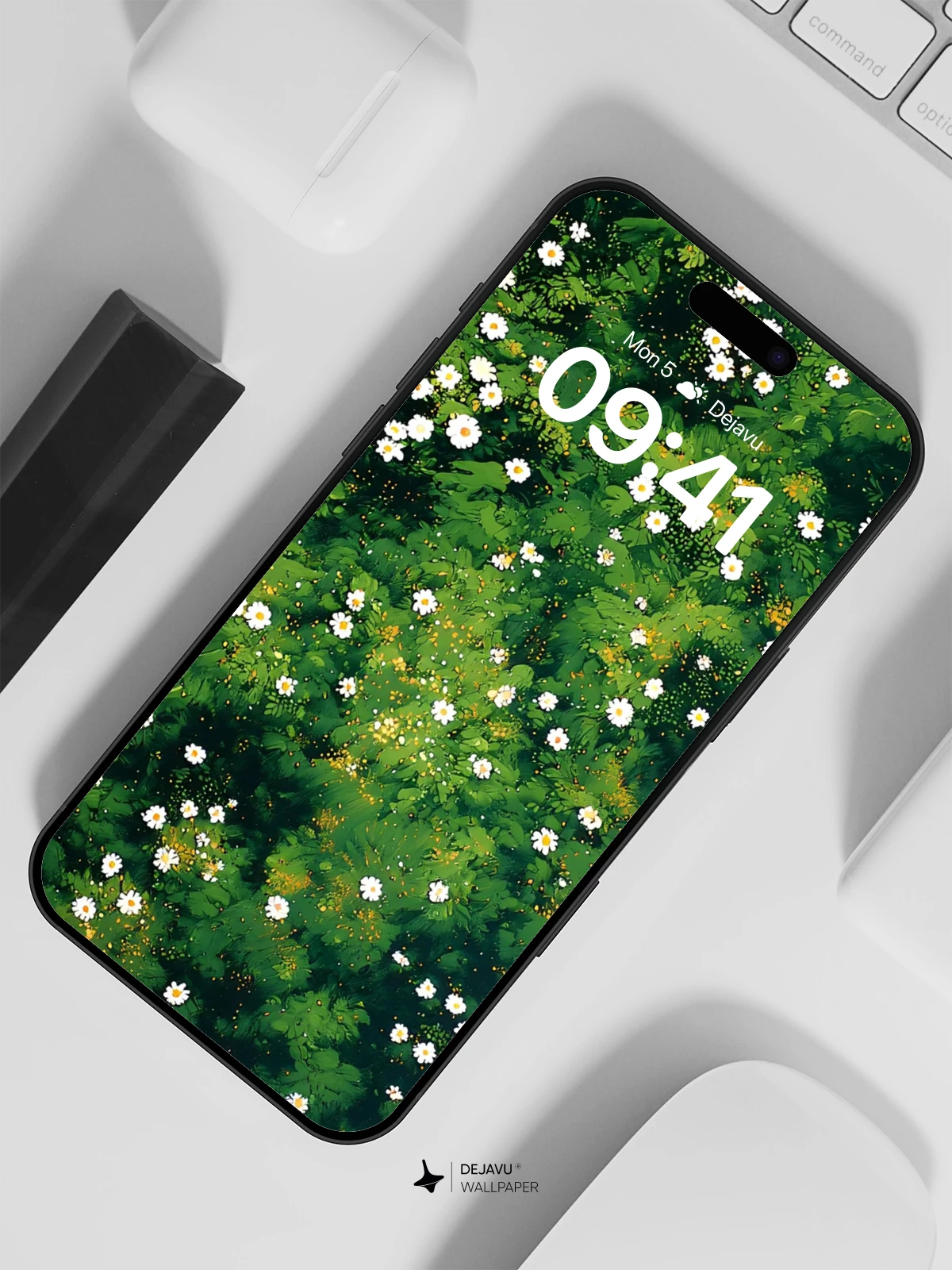This enchanting 8K wallpaper captures the tranquil beauty of a sun-dappled meadow bursting with white daisies and vibrant greenery. Inspired by the delicate brushwork of impressionist landscapes, it evokes a sense of peace and timeless natural elegance. Perfect for iPhone, Android, or tablet screens, this high-resolution image brings the serenity of springtime into your digital space, enhancing every glance with its soft textures and gentle composition.
