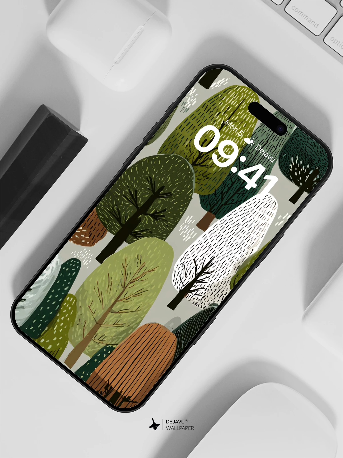 This enchanting 8K wallpaper showcases a whimsical forest scene filled with abstract, patterned trees in varying shades of green, brown, and white, creating a serene and imaginative woodland atmosphere. Inspired by modern illustrative design, the artwork blends organic shapes with delicate textures, evoking a sense of calm and natural wonder. Ideal for enhancing your iPhone, Android, or tablet with a touch of artistic nature, this high-resolution background brings a playful yet sophisticated aesthetic to any device.
