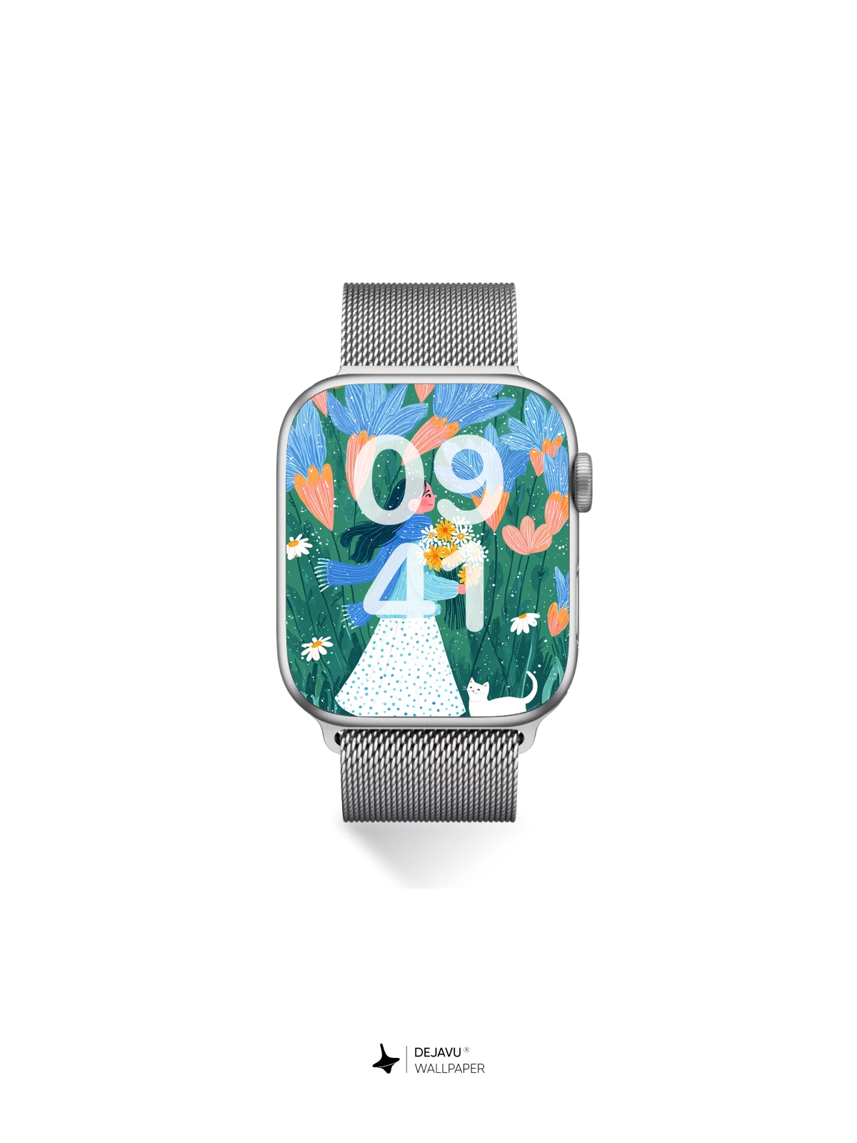 This enchanting illustration captures a peaceful moment in a fantastical garden where a young woman walks hand-in-hand with a curious white cat, surrounded by towering blue and coral blooms. The soft, painterly style evokes a sense of gentle wonder and quiet joy, reminiscent of whimsical storytelling art. With its rich textures and harmonious color palette, this 8K wallpaper is perfect for enhancing your iPhone, Android, or tablet screen with a touch of nature’s magic and timeless serenity.
