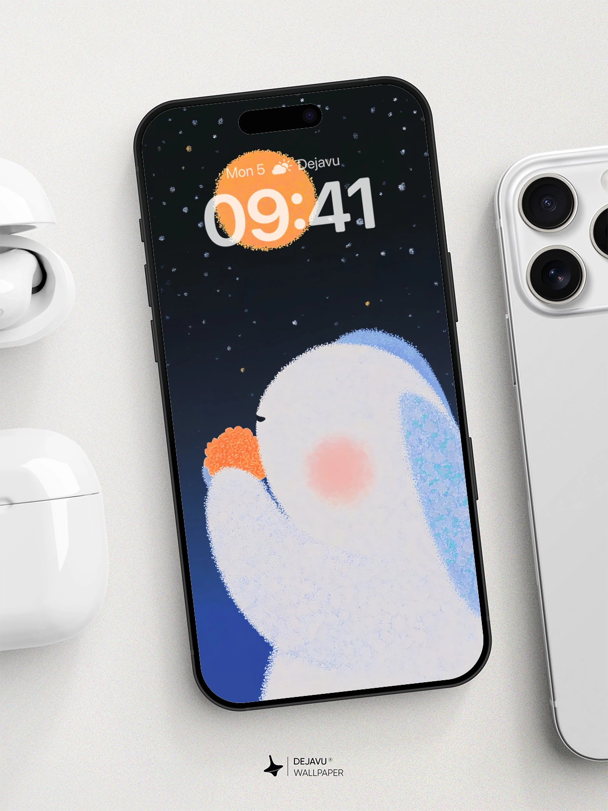 Experience the magic of a starry night as a charming rabbit gazes at the glowing moon in this 8K wallpaper. Ideal for both iPhone and Android devices, this image captures the serene beauty of the night sky, bringing a touch of whimsy to your screen.