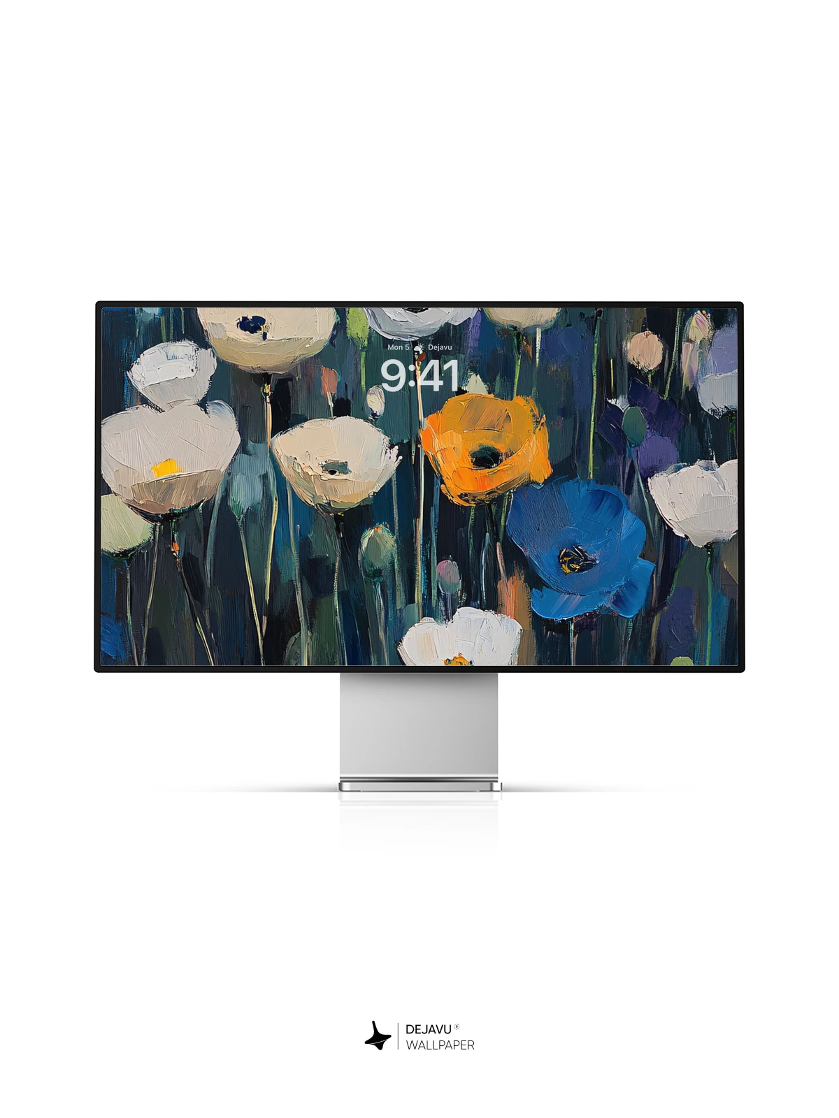 Inspired by the expressive brushwork of modern impressionist art, this 8K wallpaper captures a whimsical field of blooming poppies swaying gently in an ethereal breeze. The rich contrast between luminous flowers and dark, textured foliage evokes a sense of quiet wonder and natural beauty. Perfect for iPhone, Android, or tablet screens, this high-resolution artwork transforms your device into a canvas of serene elegance, blending contemporary design with timeless floral charm.