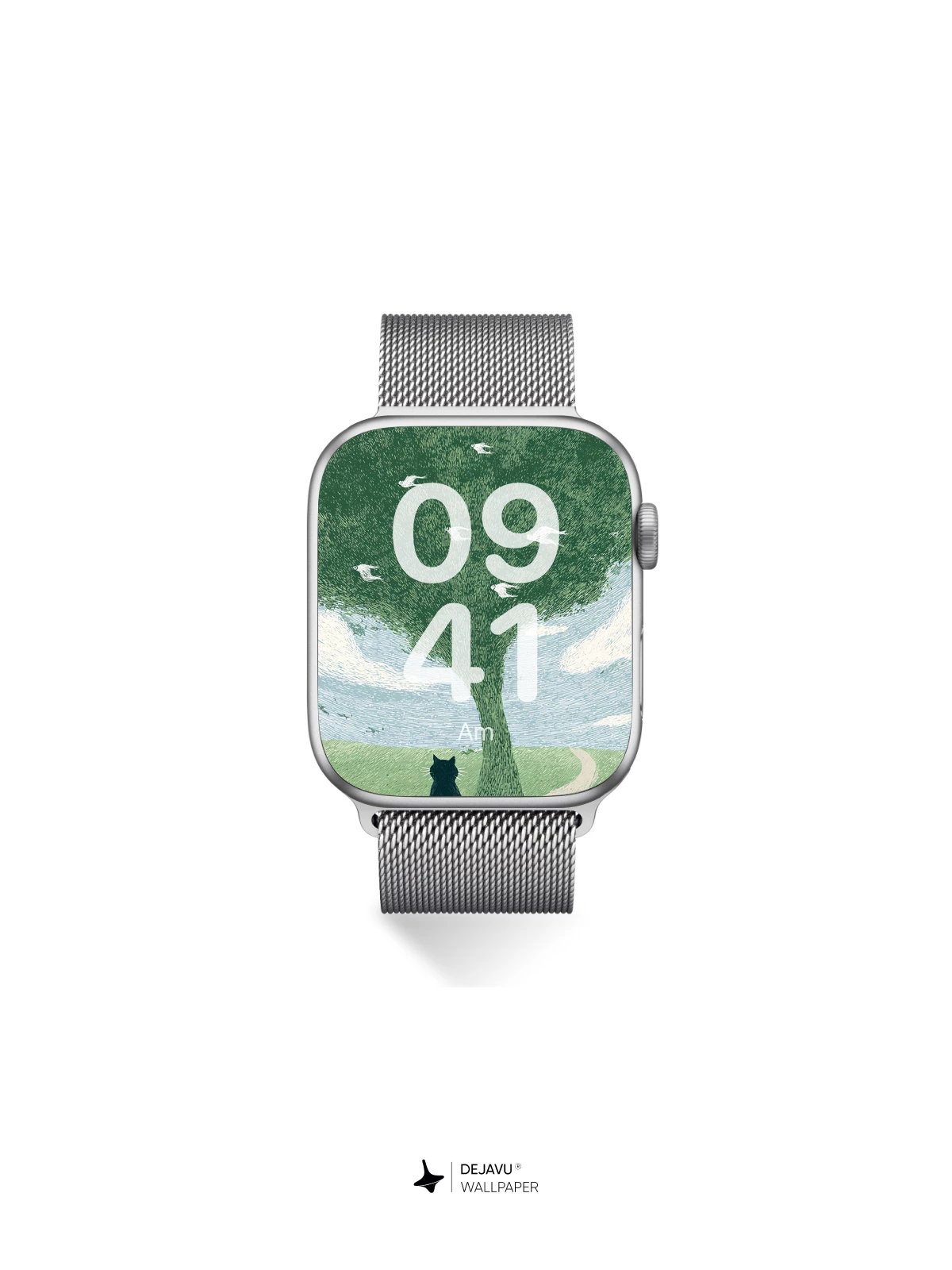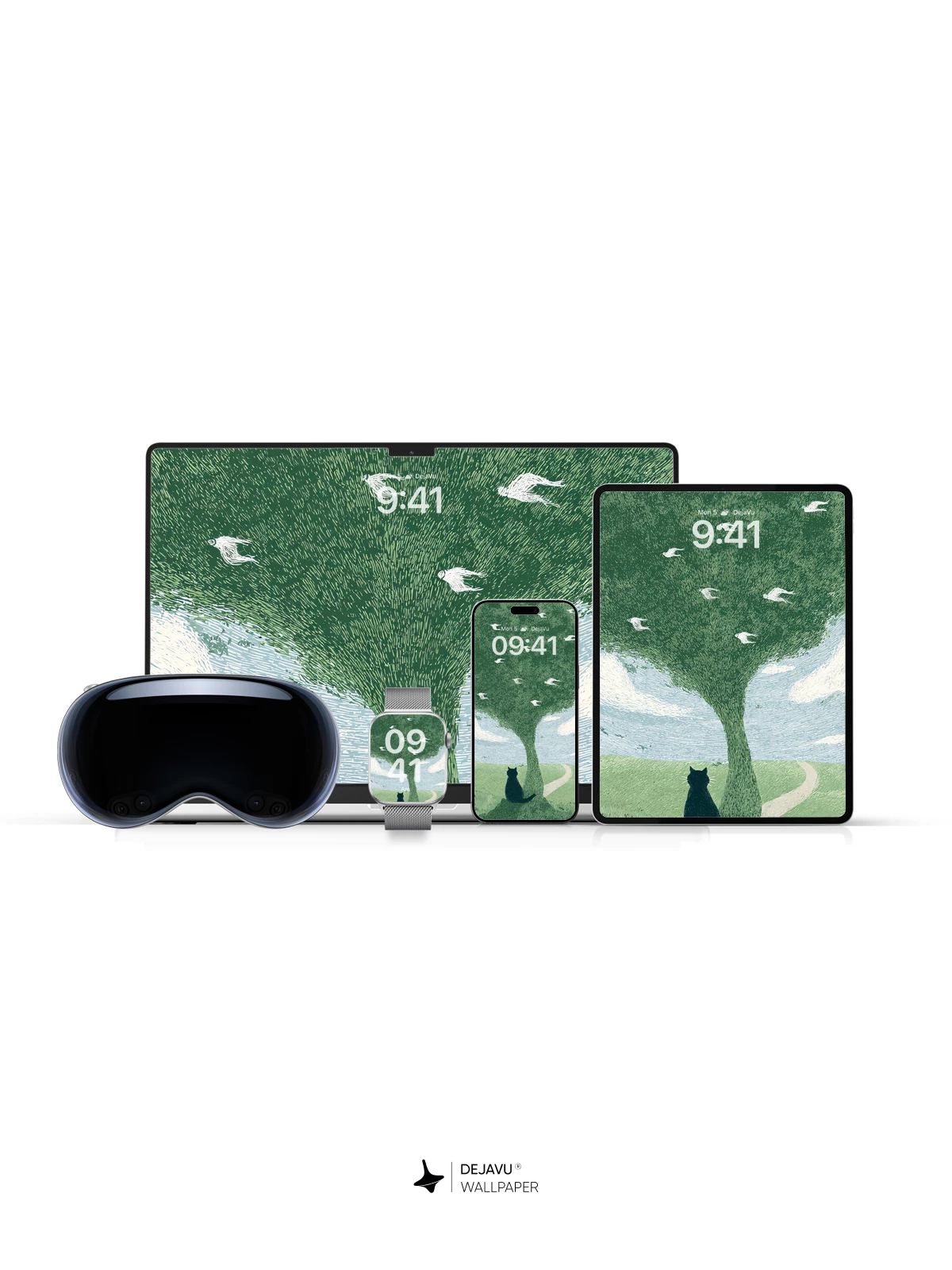 This enchanting 8K wallpaper features a solitary black cat sitting under a towering, lush green tree, its branches forming a sky filled with floating white birds. The surreal composition evokes a sense of calm wonder and introspection, blending nature with imagination. Inspired by the delicate line work and dreamy atmosphere reminiscent of illustrative art traditions, it’s ideal for iPhone, Android, or tablet screens seeking a poetic touch. Perfect for those who appreciate minimalist yet meaningful visuals, this design transforms any device into a portal of quiet magic.