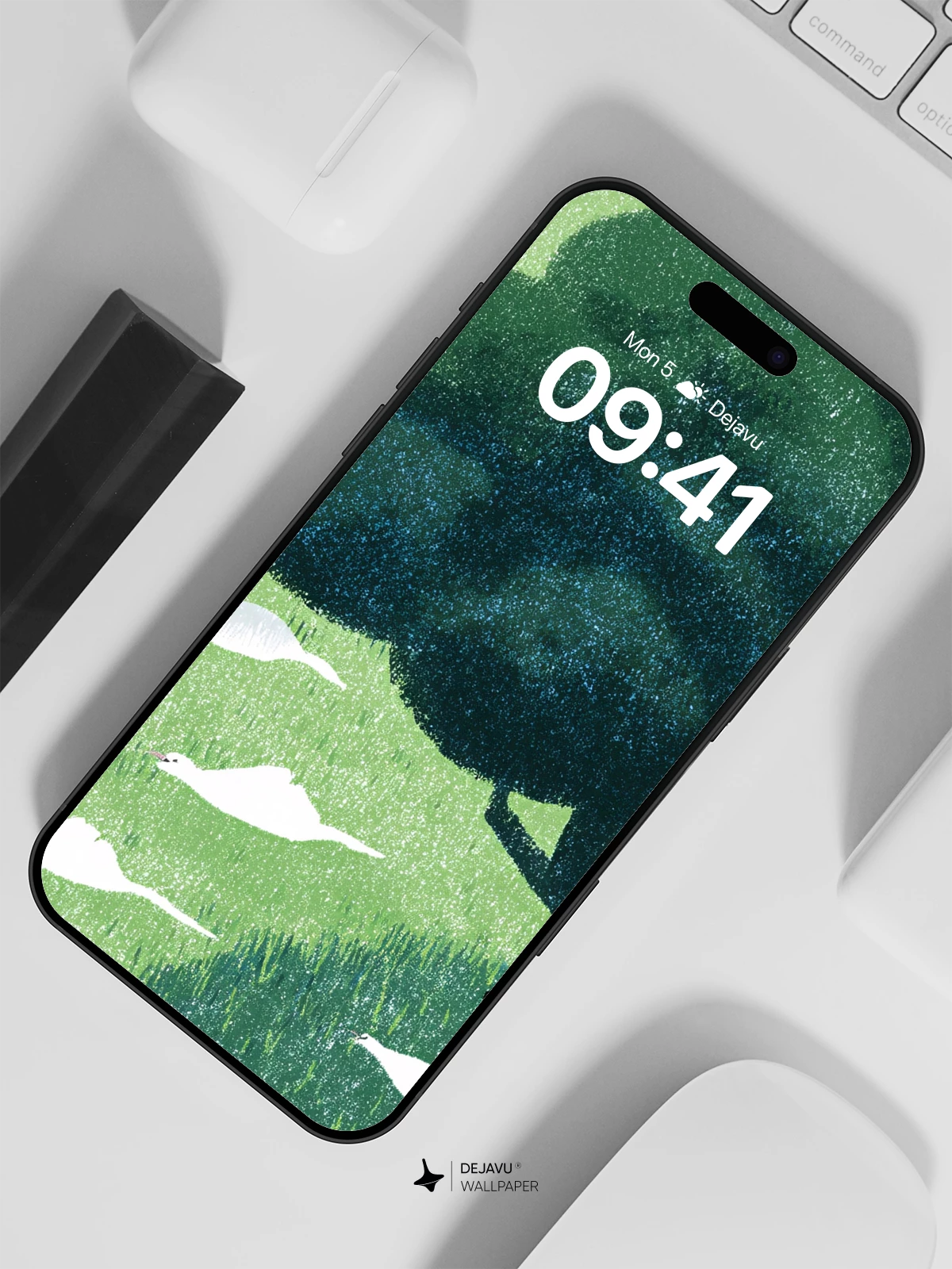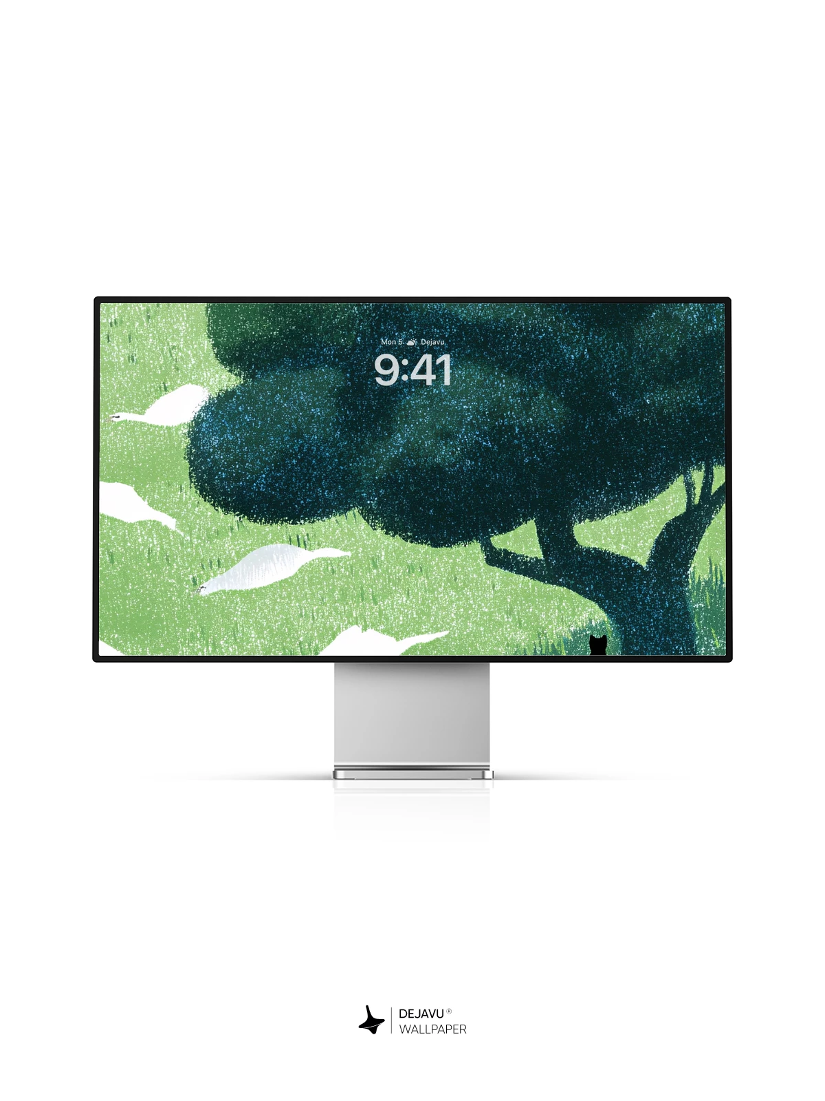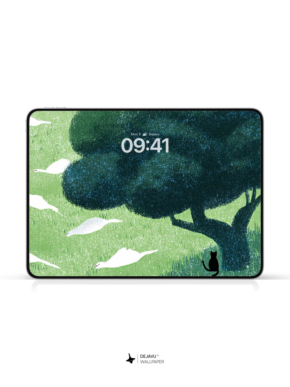 This tranquil 8K wallpaper captures a poetic moment where a solitary black cat sits under a dense, shadowy tree, framed by ethereal white birds drifting across a soft green landscape. Inspired by minimalist nature art with a touch of surreal calm, the scene evokes quiet contemplation and harmony with the natural world. Ideal for iPhone, Android, or tablet screens, it brings a sense of peaceful solitude to your mobile device.