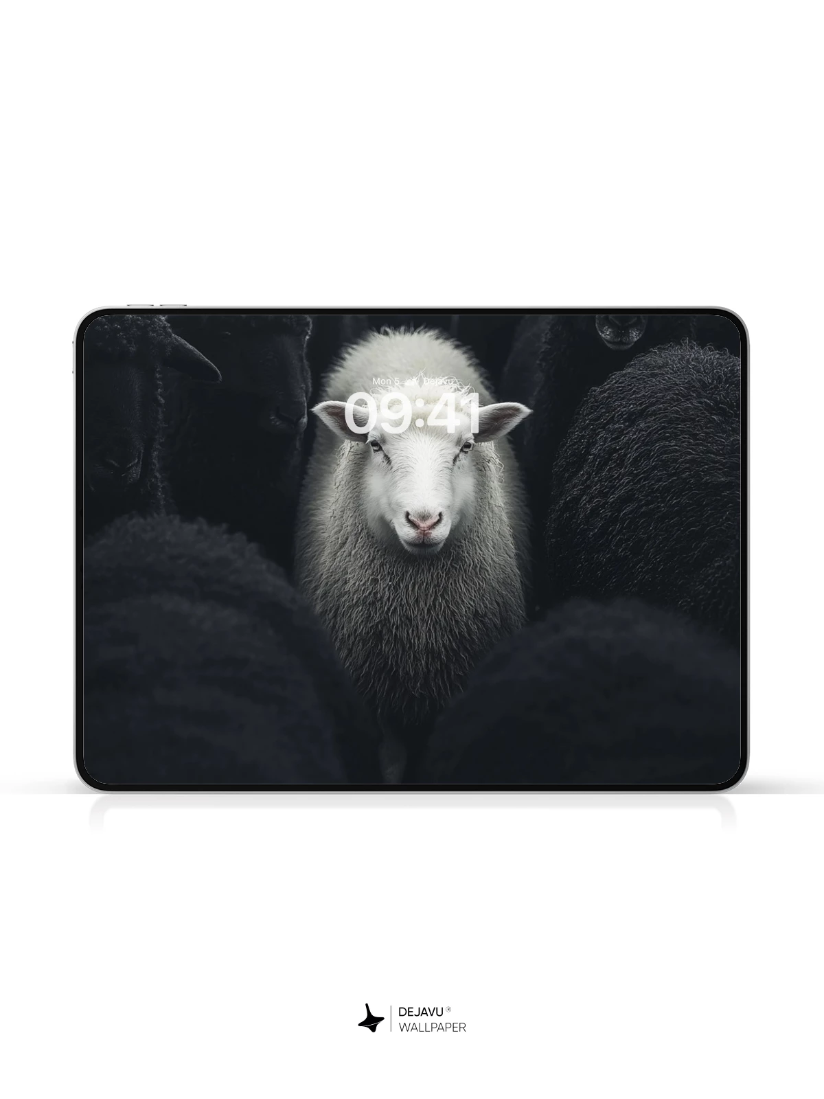 In a hauntingly atmospheric scene, a solitary white sheep emerges from a dense crowd of dark woolen forms, creating a powerful metaphor for individuality and courage. The monochromatic palette and dramatic lighting evoke a sense of isolation and quiet defiance, making this 8K wallpaper ideal for those who value introspective art on their iPhone, Android, or tablet. This evocative image captures the emotional weight of standing apart—beautifully rendered for modern mobile screens.