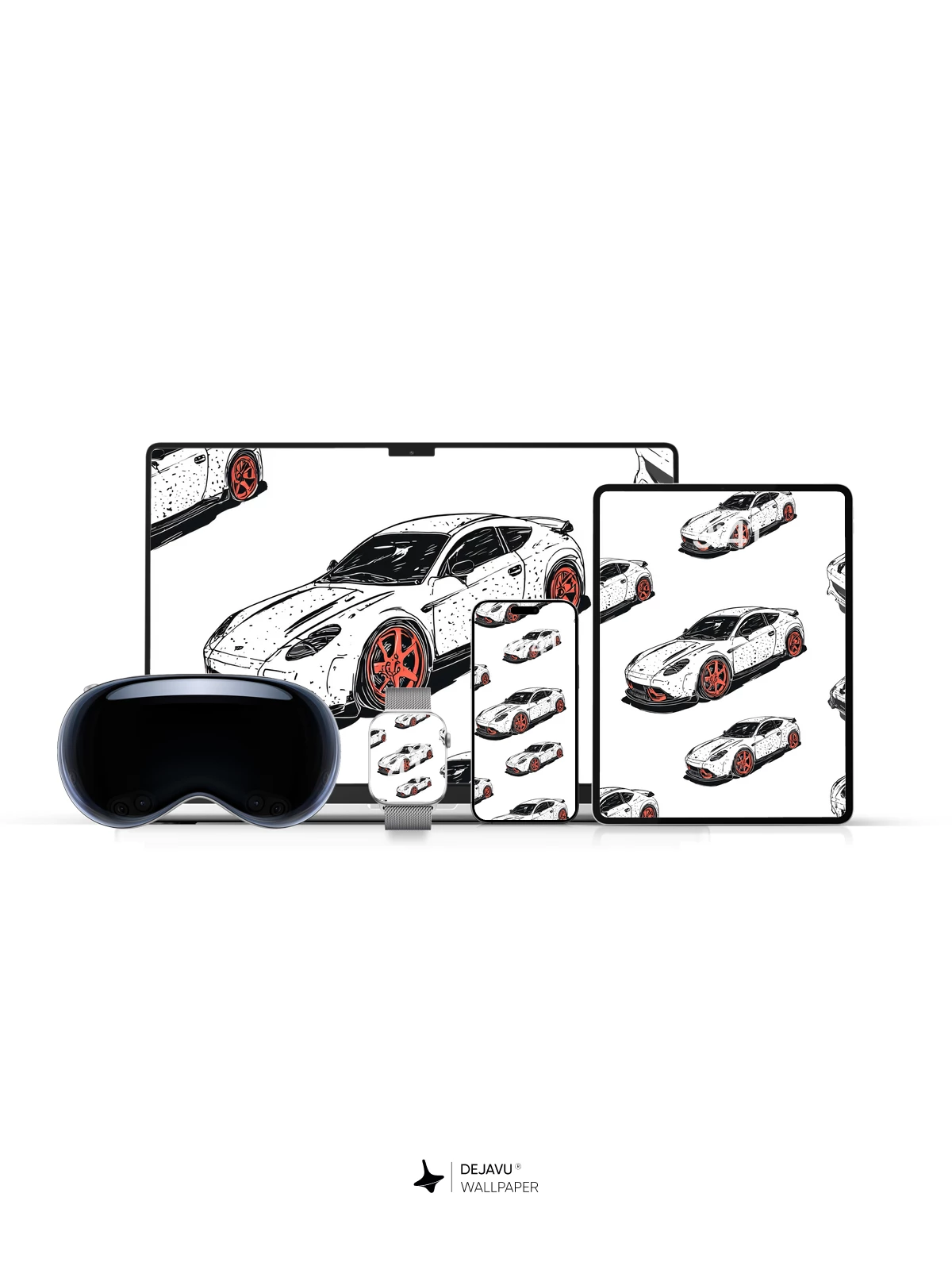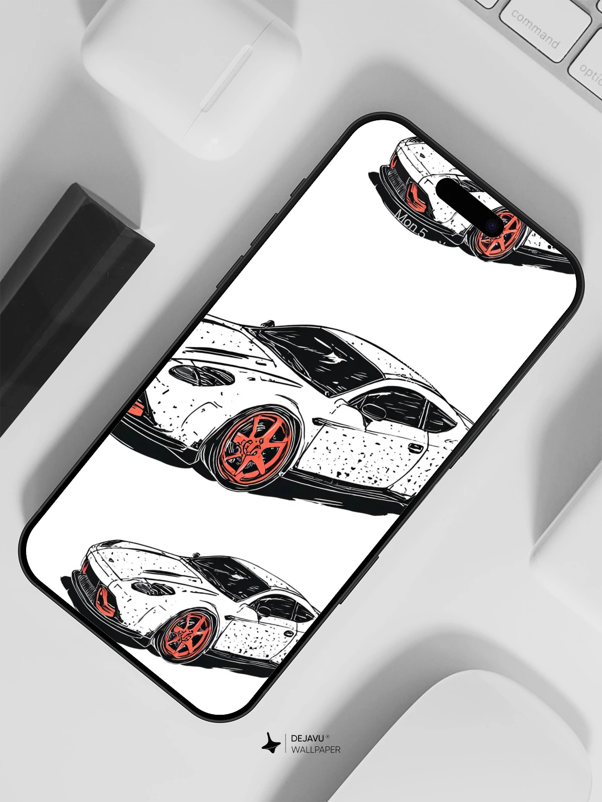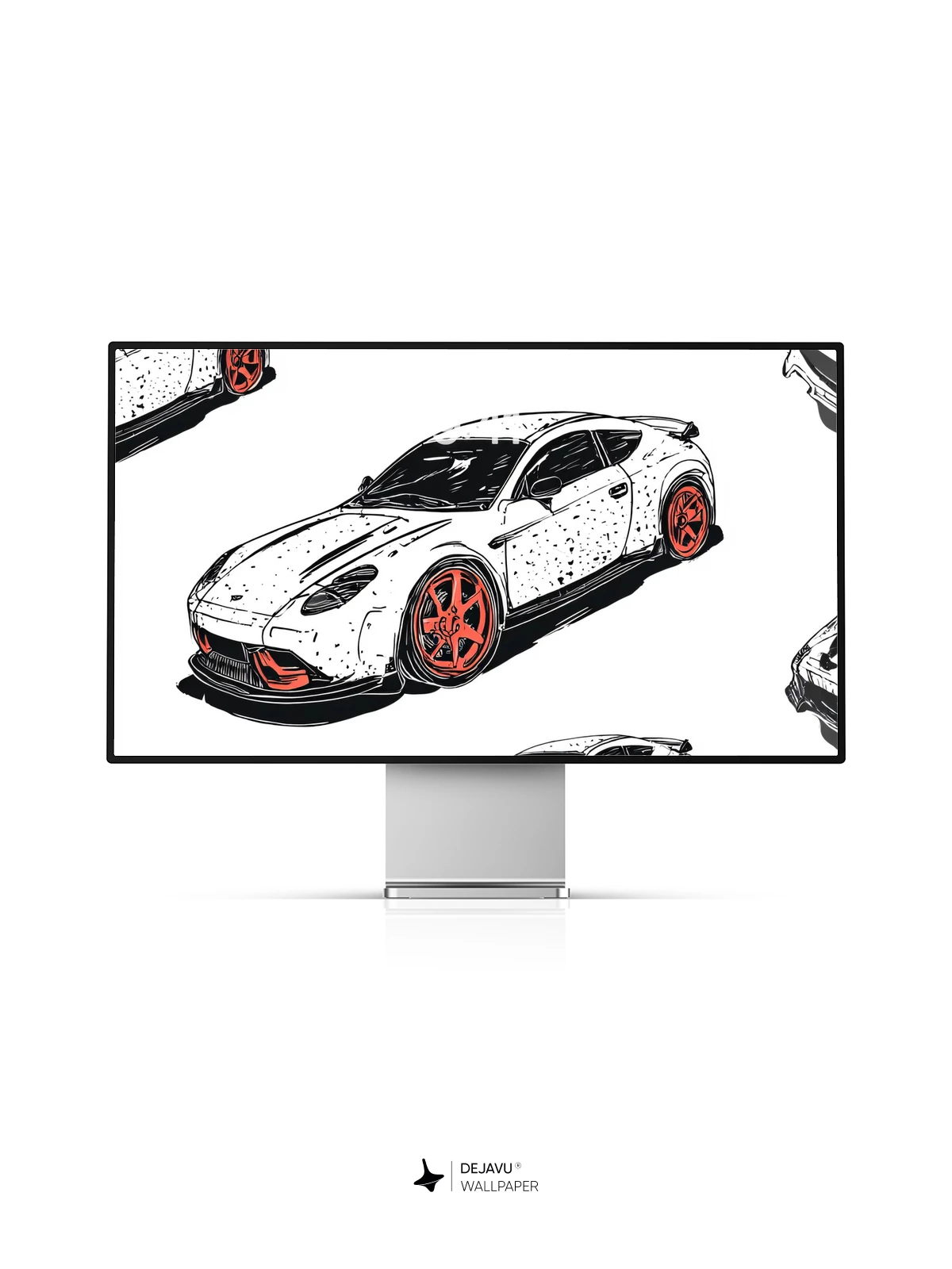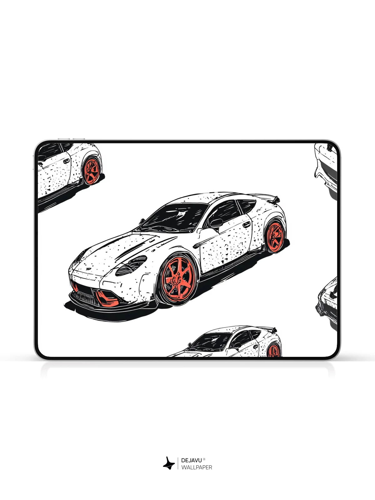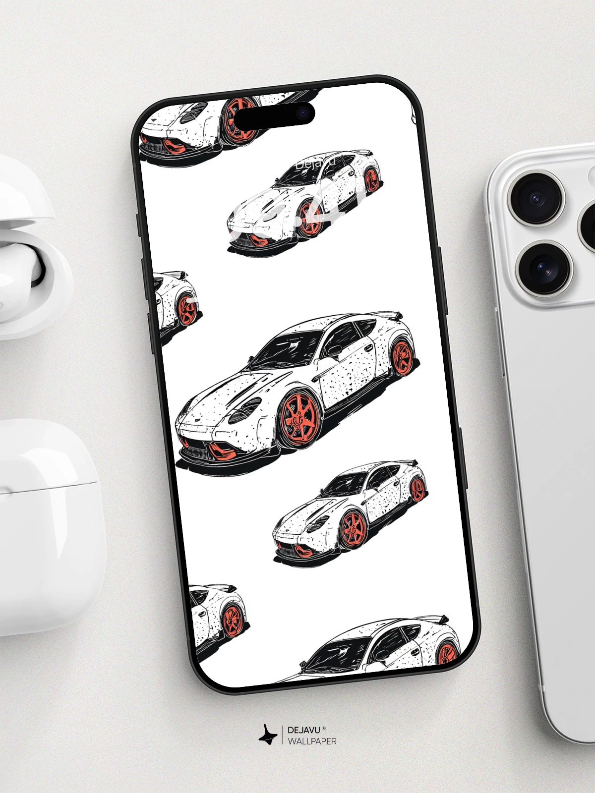 This high-resolution 8K wallpaper features a bold, stylized pattern of white sports cars with red accents and speckled detailing, arranged in a seamless grid. The clean lines and modern aesthetic make it ideal for tech-savvy users looking to personalize their iPhone, Android, or tablet. Inspired by contemporary automotive design, the image exudes speed and elegance, turning any device into a canvas of motion and style. Perfect for fans of fast cars and minimalist urban art.
