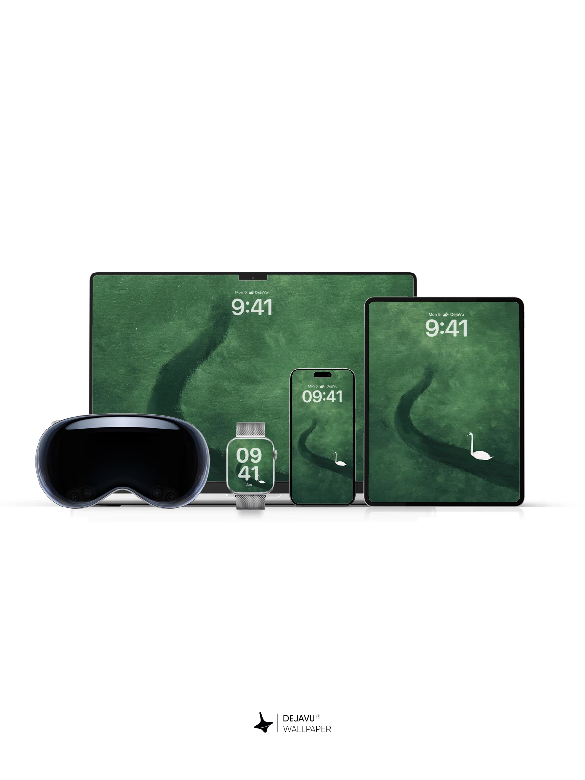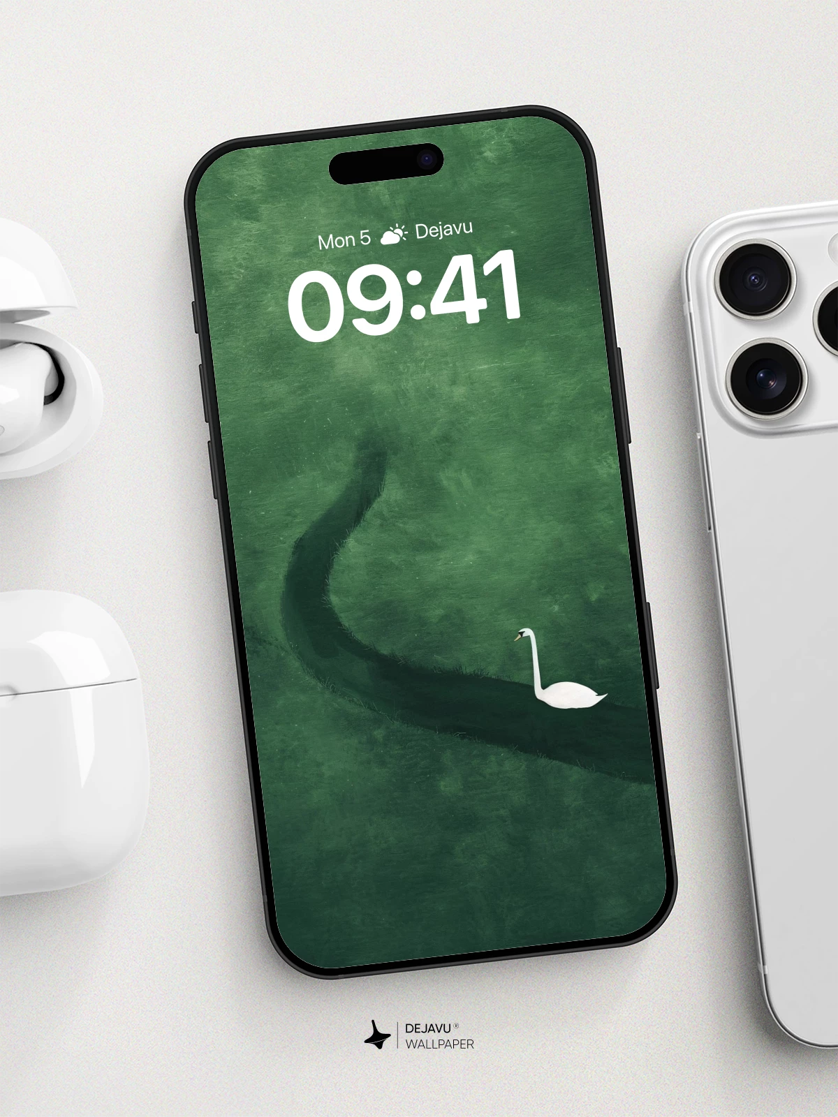 This 8K wallpaper features a solitary white swan moving gracefully along a winding dark line against a rich green backdrop. Its minimalist design and calming mood make it ideal for iPhone, Android, and tablet screens, offering a touch of elegance without overwhelming the interface.