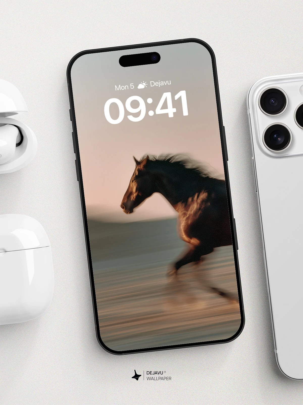 This breathtaking 8K wallpaper captures a powerful black horse galloping freely along the shoreline at sunset, its mane flowing with the wind and legs blurred in dynamic motion. The warm hues of twilight bathe the scene in a dreamlike glow, evoking a sense of untamed spirit and natural grace. Ideal for iPhone, Android, or tablet screens, this high-resolution image brings the raw beauty of nature to your device with stunning clarity and emotional depth.