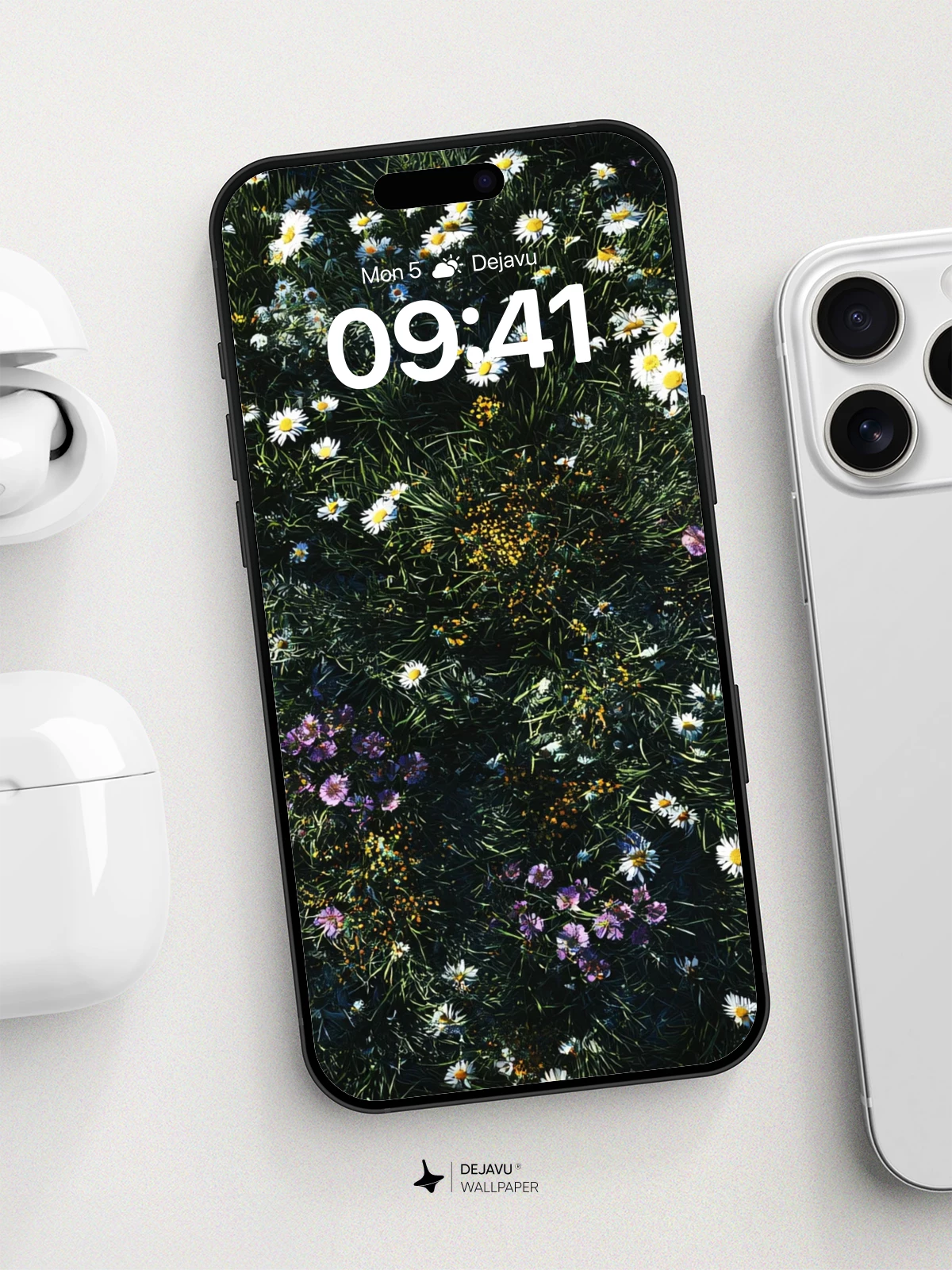 This stunning 8K wallpaper showcases a sun-dappled wildflower meadow bursting with daisies, lavender hues, and golden accents, creating a serene escape into nature. Ideal for iPhone, Android, and tablets, the image invites tranquility and connection to the natural world through its rich textures and soft contrasts. Perfect for those who appreciate organic beauty and crisp visual clarity on their devices.