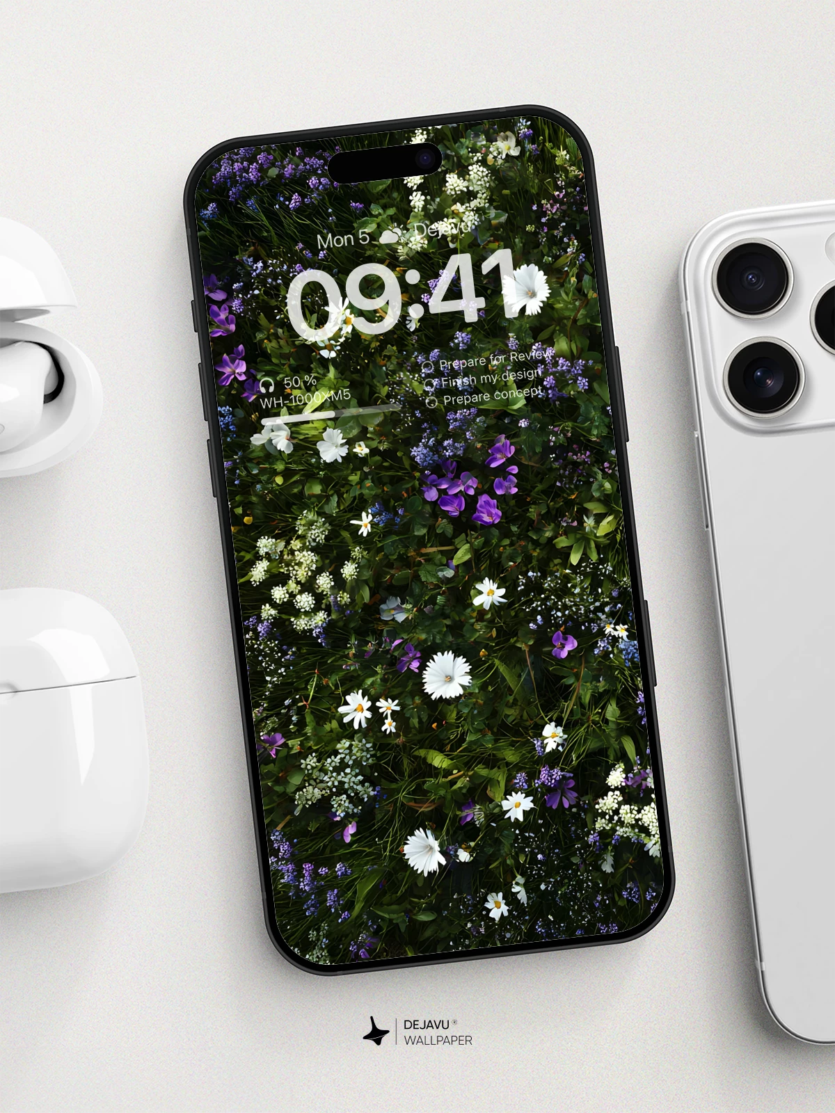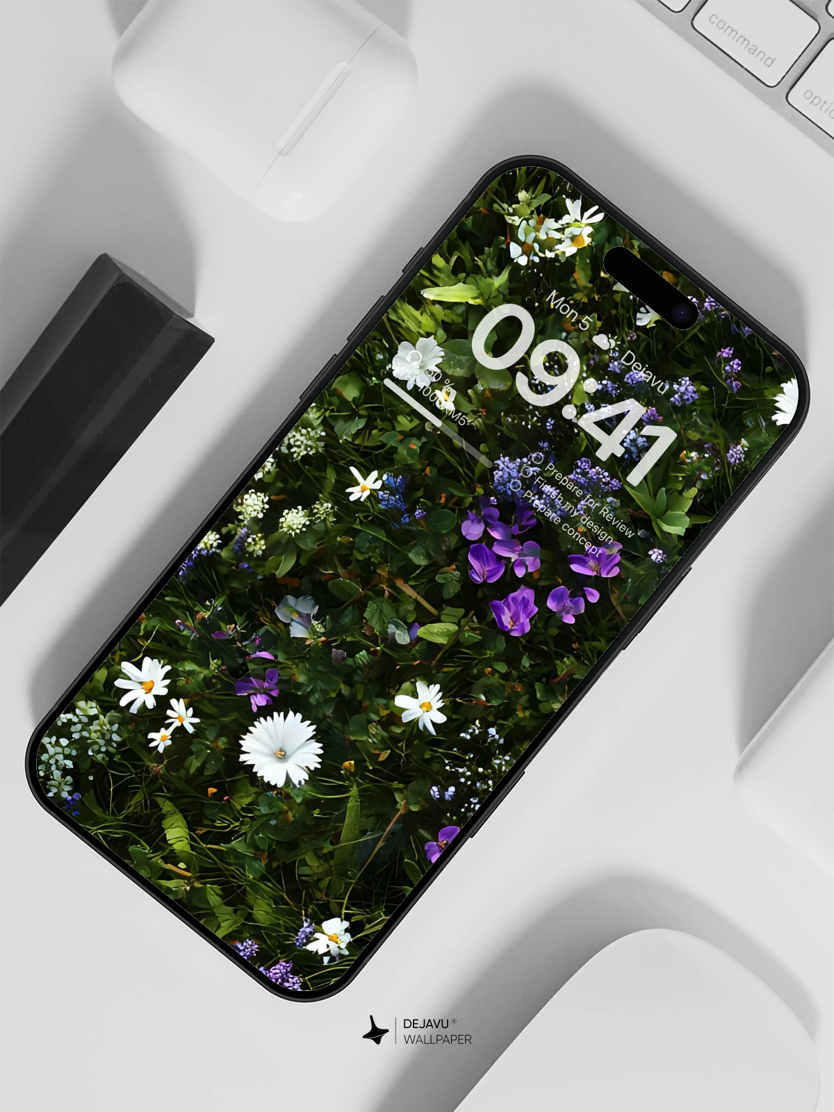 This stunning 8K wallpaper captures the delicate beauty of a wildflower meadow in full bloom, viewed from above. With intricate details of daisies, violets, and tiny blossoms nestled among lush greenery, it evokes a sense of peace and natural harmony. Ideal for iPhone, Android, and tablets, this high-resolution image transforms your device into a window to nature’s quiet splendor.