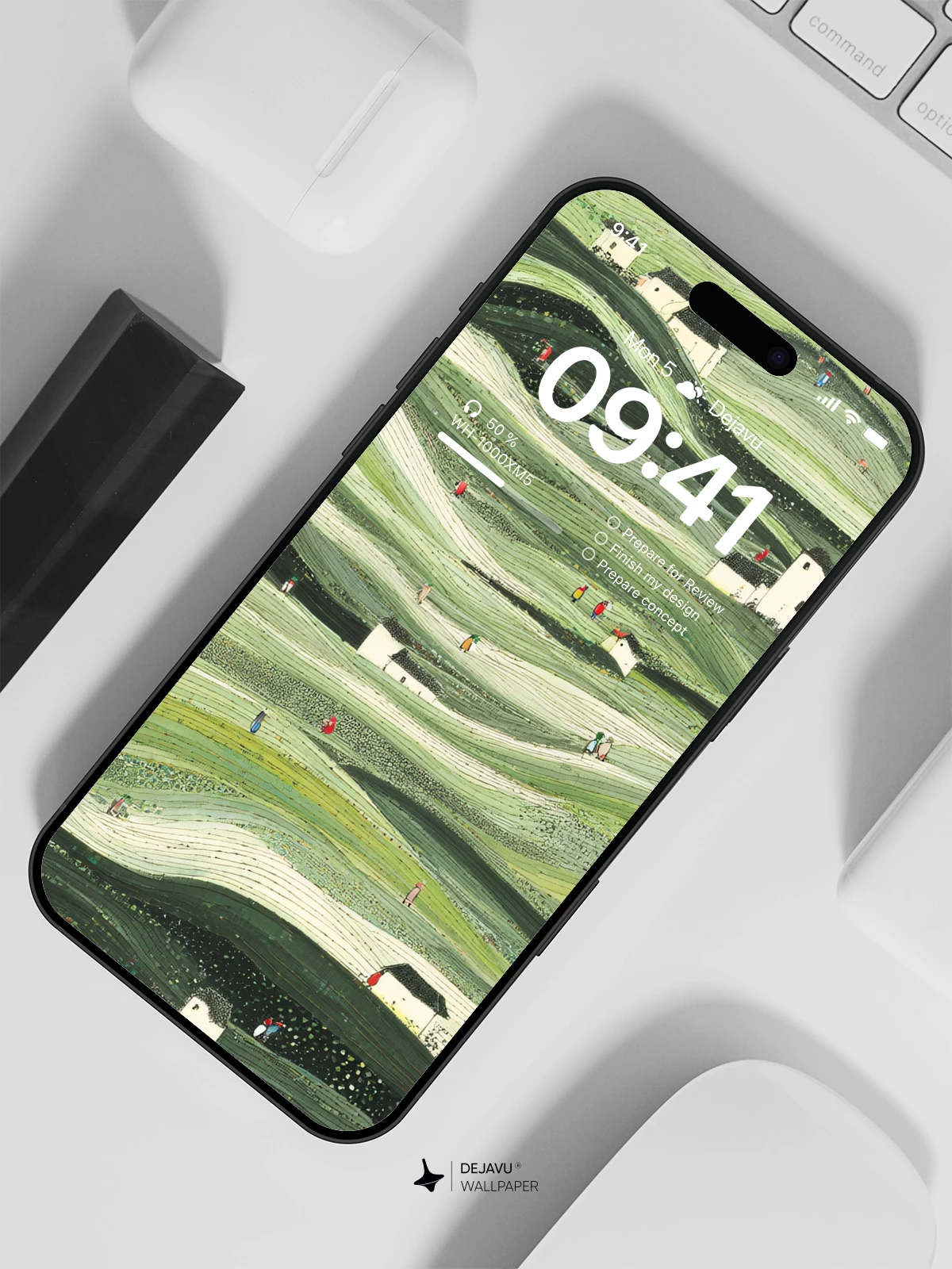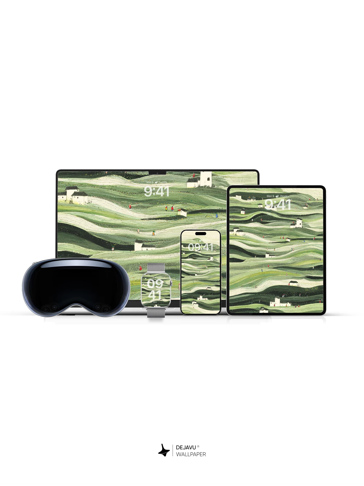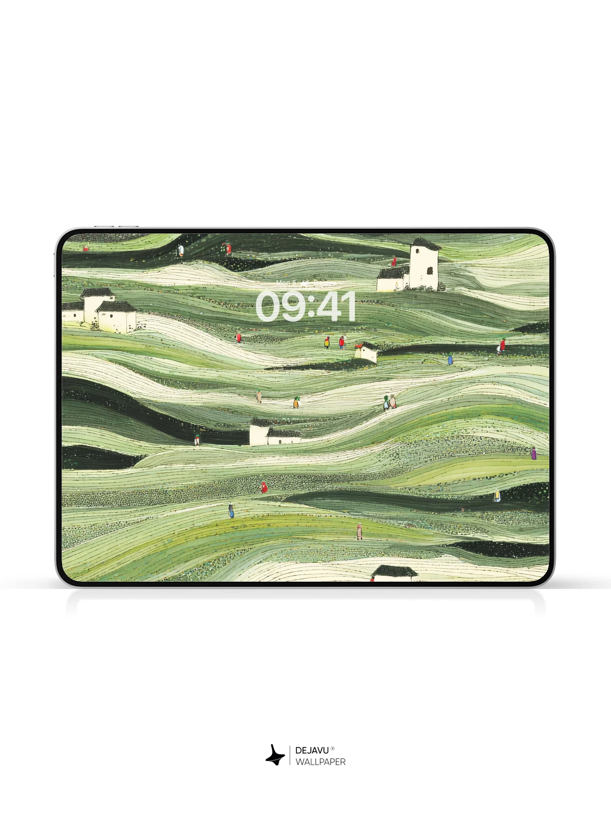This wallpaper transforms your screen into a tranquil, undulating countryside. The rhythmic, layered hills in varying shades of green create a sense of calm and depth, while the simple white houses and scattered figures add a touch of life and narrative. Perfect for adding a touch of nature-inspired serenity to your iPhone, Android, or tablet.