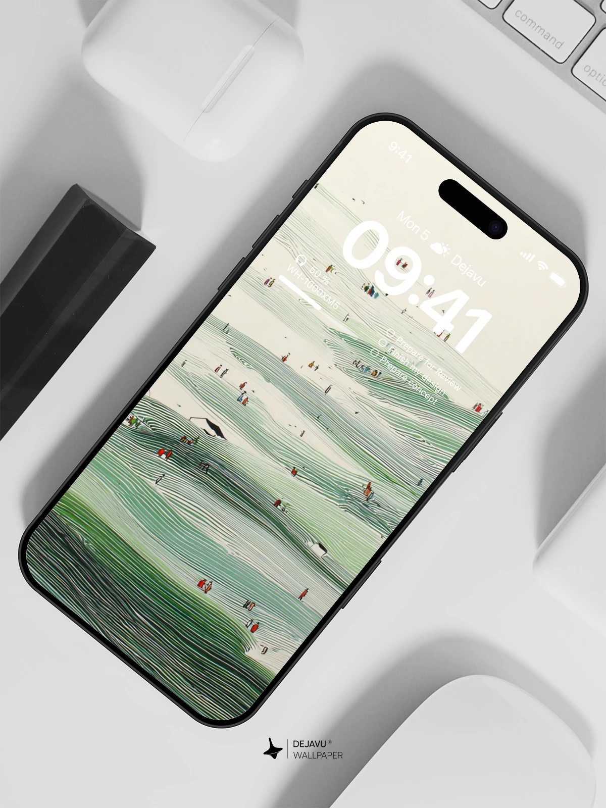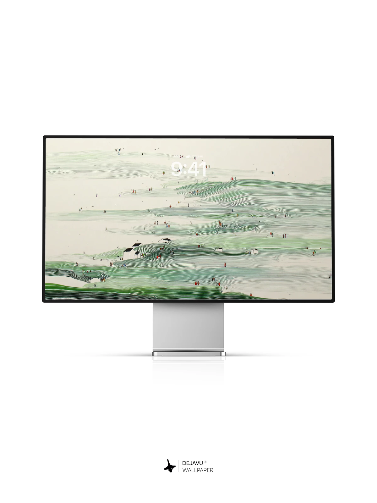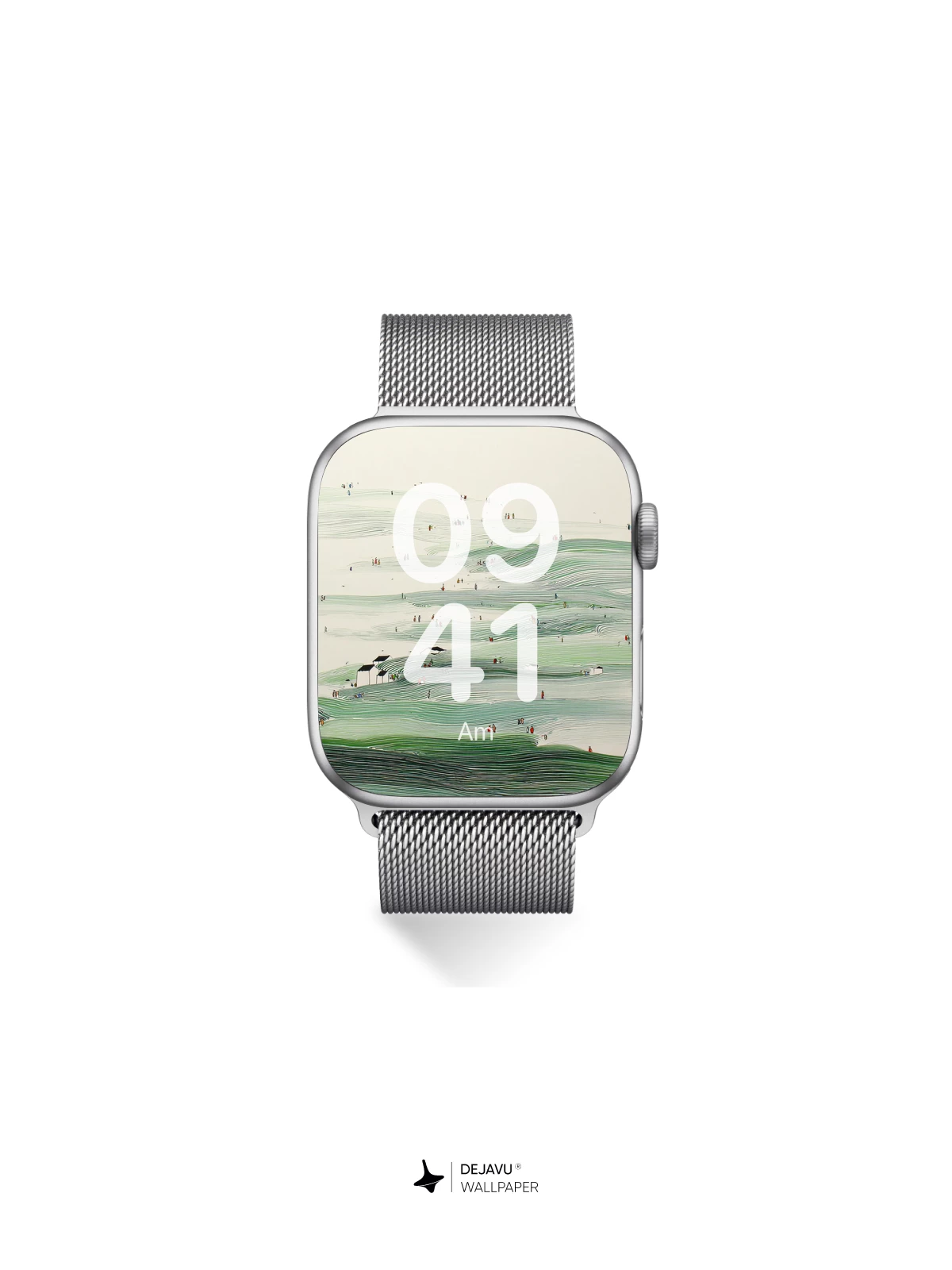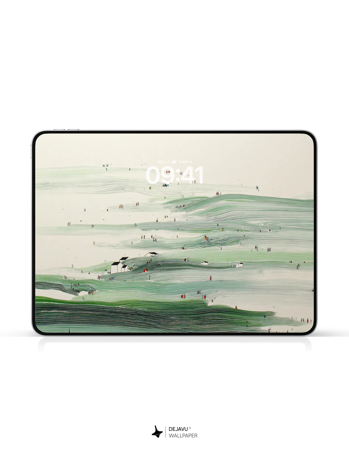 This abstract wallpaper features rolling green hills, delicate brushstrokes, and tiny human figures that evoke a sense of quiet exploration. The soft palette and organic flow make it ideal for iPhone, Android, and tablets seeking a peaceful yet artistic vibe.