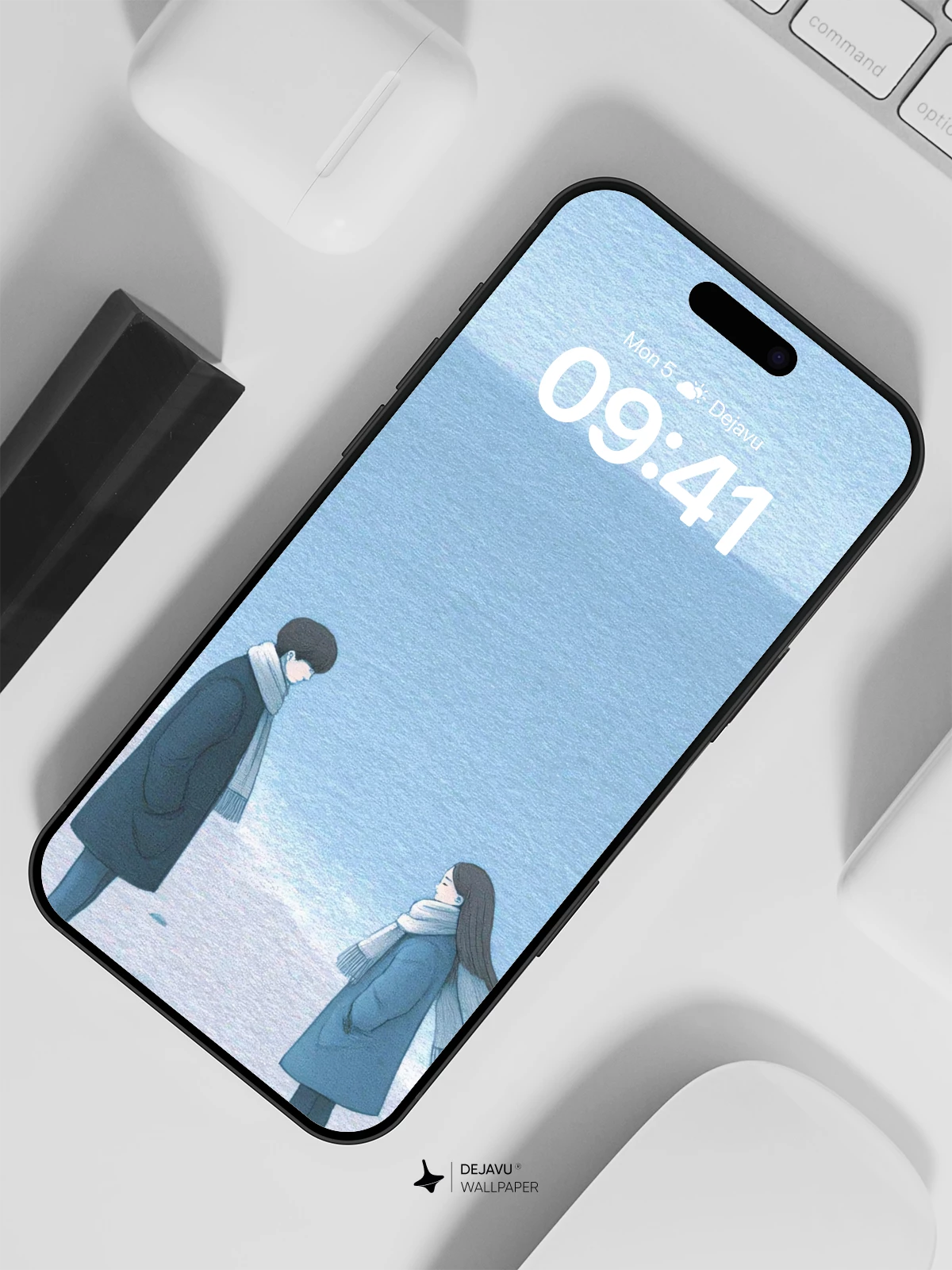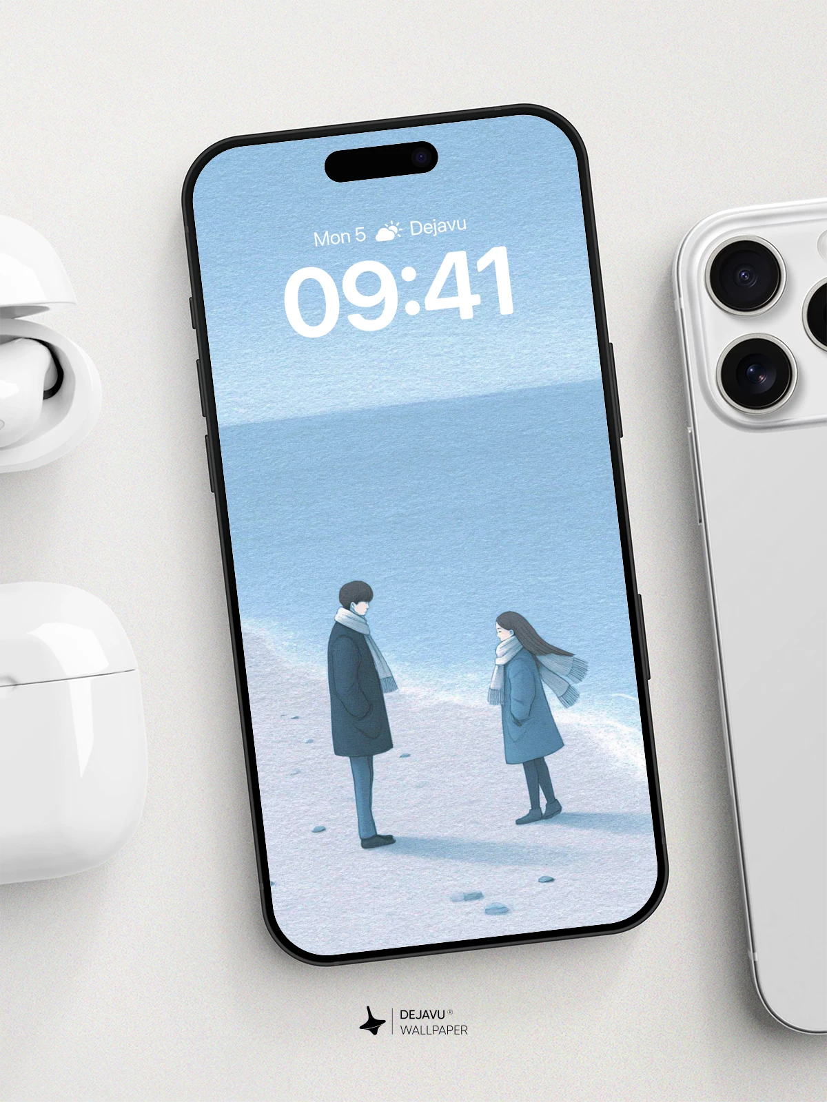 This beautifully illustrated winter scene captures a quiet moment between two figures on a snowy shore, dressed warmly against the chill. The soft pastel blues and gentle composition evoke feelings of intimacy and stillness, reminiscent of contemporary Korean illustration styles. Ideal as an 8K wallpaper for iPhone, Android, or tablets, it brings a sense of calm and poetic solitude to any screen. Perfect for fans of emotional, nature-inspired art with clean lines and subtle depth.”.