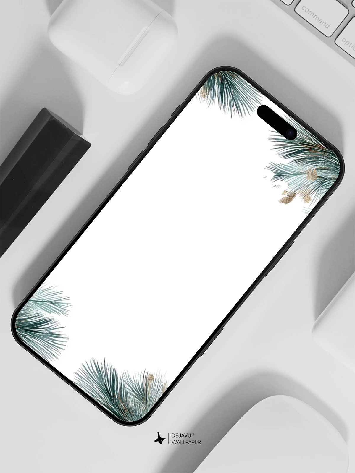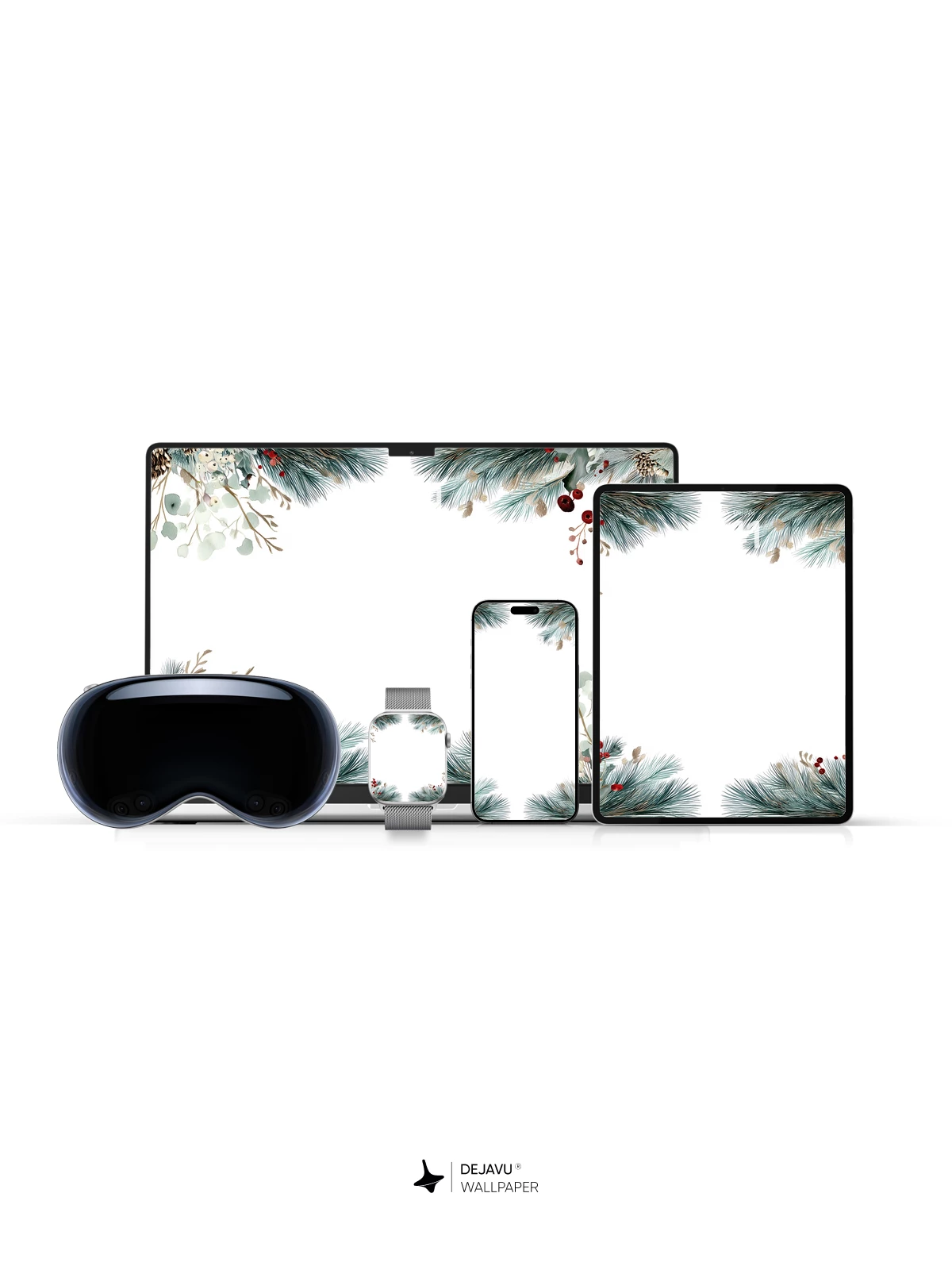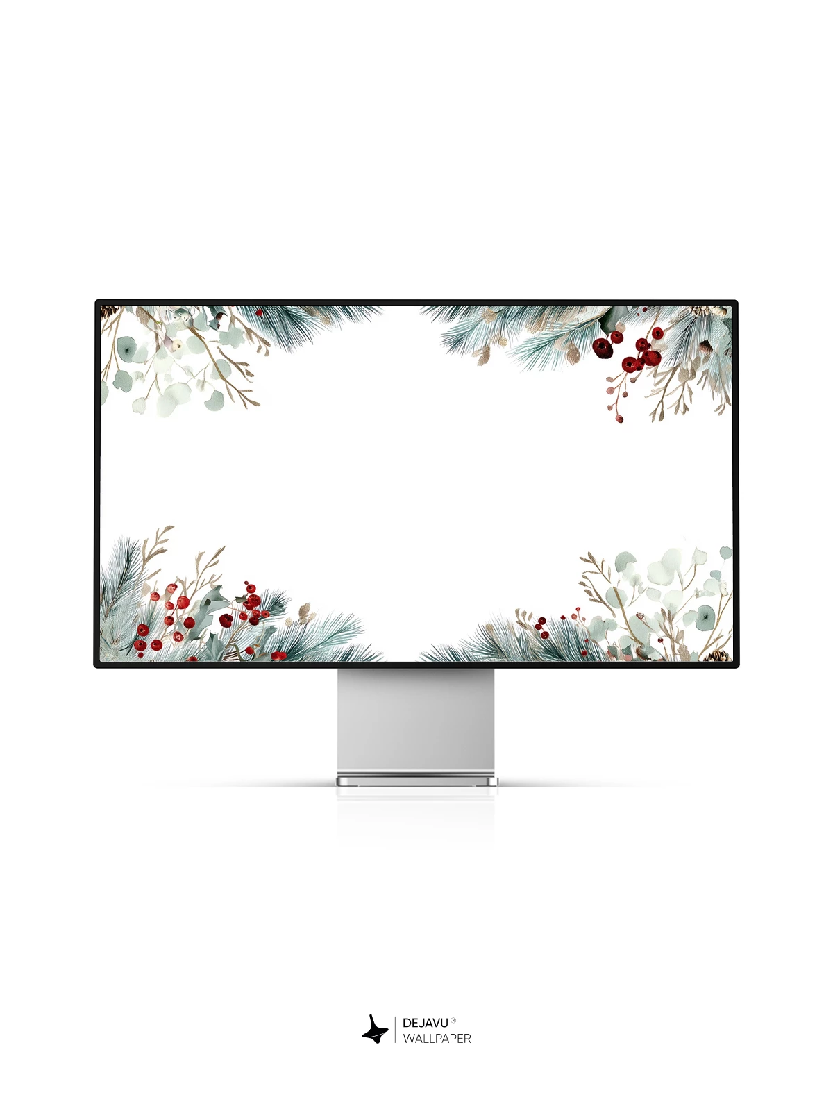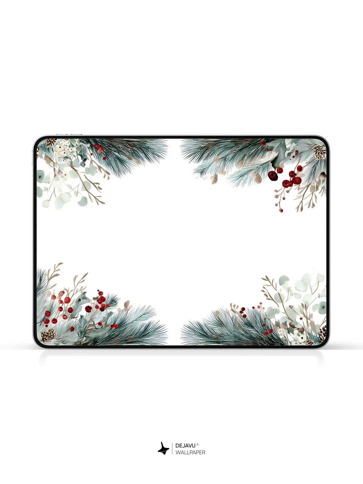 This 8K wallpaper features a delicate watercolor-style botanical border of pine branches, eucalyptus, red berries, and pinecones, evoking the quiet beauty of a frosty winter forest. The soft, muted tones and natural textures create a serene, seasonal atmosphere, ideal for enhancing your iPhone, Android, or tablet screen. Designed with balanced negative space, it offers a refined aesthetic that feels both cozy and modern—perfect for holiday vibes or year-round nature-inspired decor.