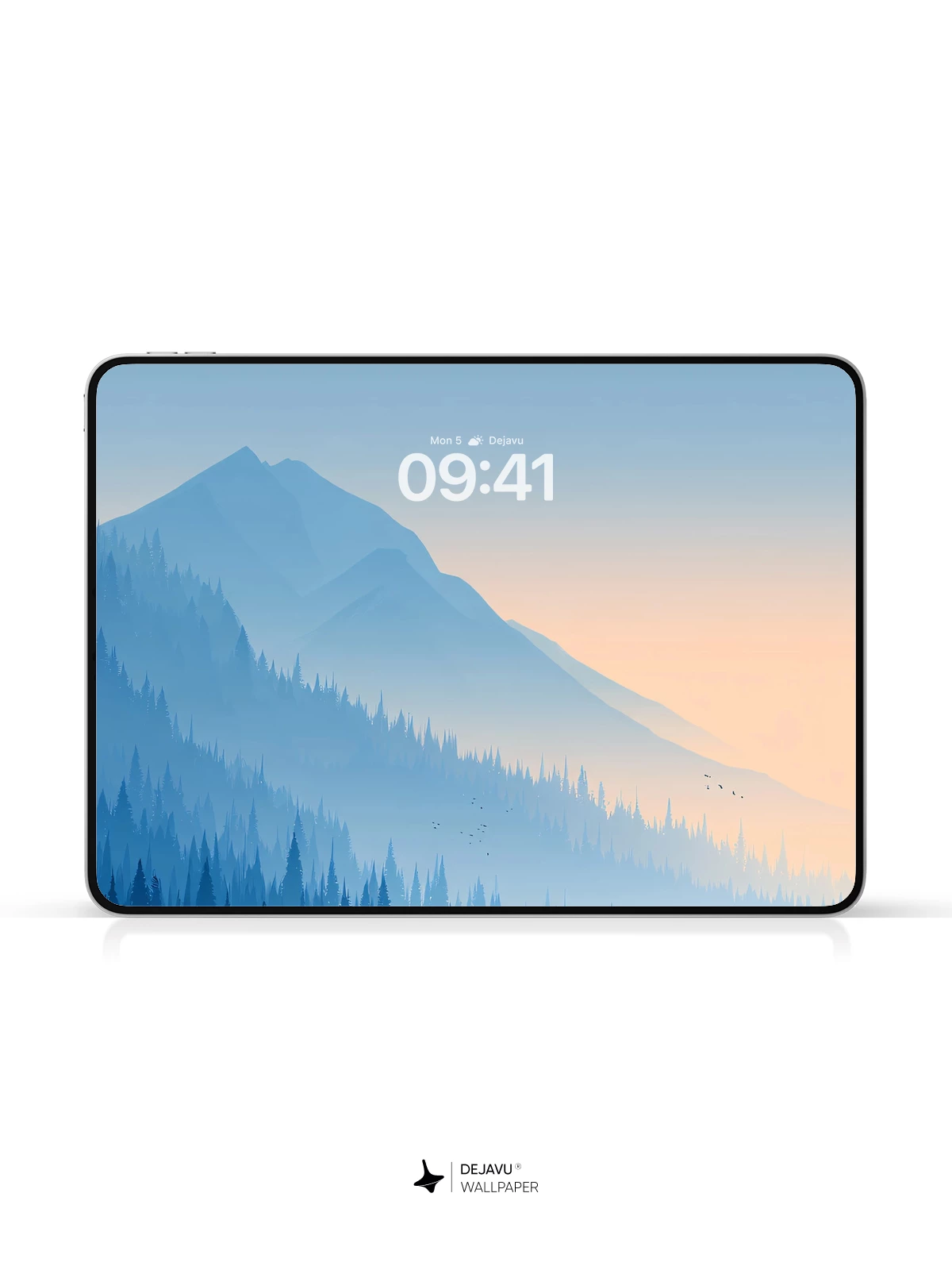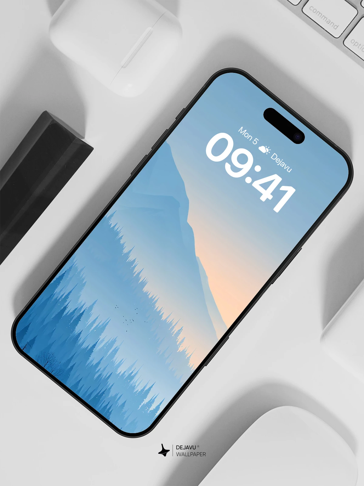 This breathtaking 8K wallpaper captures a peaceful winter evening where a cozy cabin glows warmly against a vast, misty mountain range. The soft gradient sky transitions from golden dusk to cool blue, evoking a sense of solitude and timeless calm. Ideal for iPhone, Android, or tablet screens, this image blends realism with poetic atmosphere, making it a perfect choice for nature lovers seeking a tranquil digital backdrop.