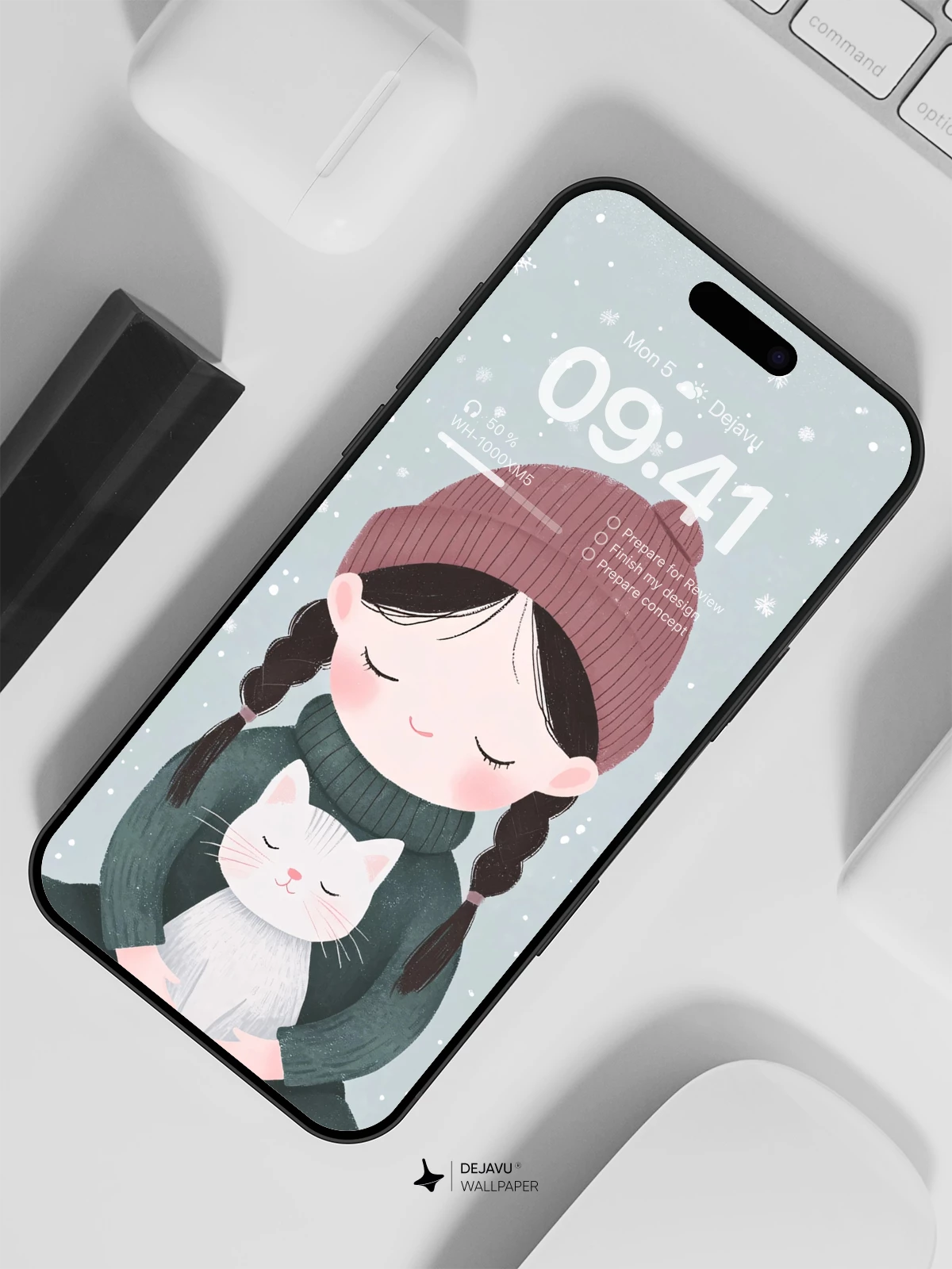 Experience the warmth of companionship in this Winter Embrace Wallpaper 8K, beautifully designed for your phone. The image captures a tender moment between a cartoon girl and her cat, both snug in winter attire, set against a gentle snowfall. This delightful scene, rendered in a playful cartoon art style, evokes feelings of comfort and joy, making it a perfect fit for iPhone and Android users seeking a cheerful and high-quality wallpaper. Whether you’re looking to brighten your mobile screen or add a touch of whimsy to your digital space, this wallpaper delivers a timeless charm that resonates with anyone who appreciates the simple joys of life.