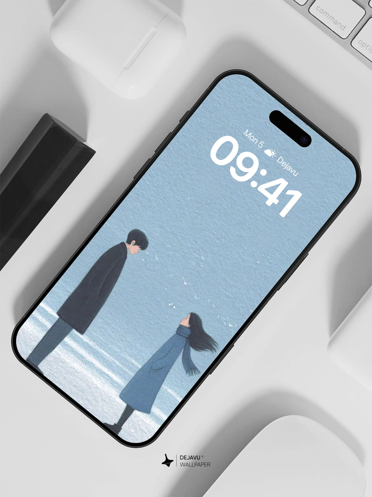 This evocative minimalist illustration portrays a tender, silent exchange between two figures standing apart on a snowy expanse under a vast, pale sky. Inspired by the delicate emotional depth of Japanese animation art, the scene blends solitude with connection, rendered in soothing cool tones and gentle lines. Ideal as an 8K wallpaper for iPhone, Android, or tablet devices, it brings a sense of peaceful contemplation to your mobile screen with its clean composition and poetic atmosphere.”.