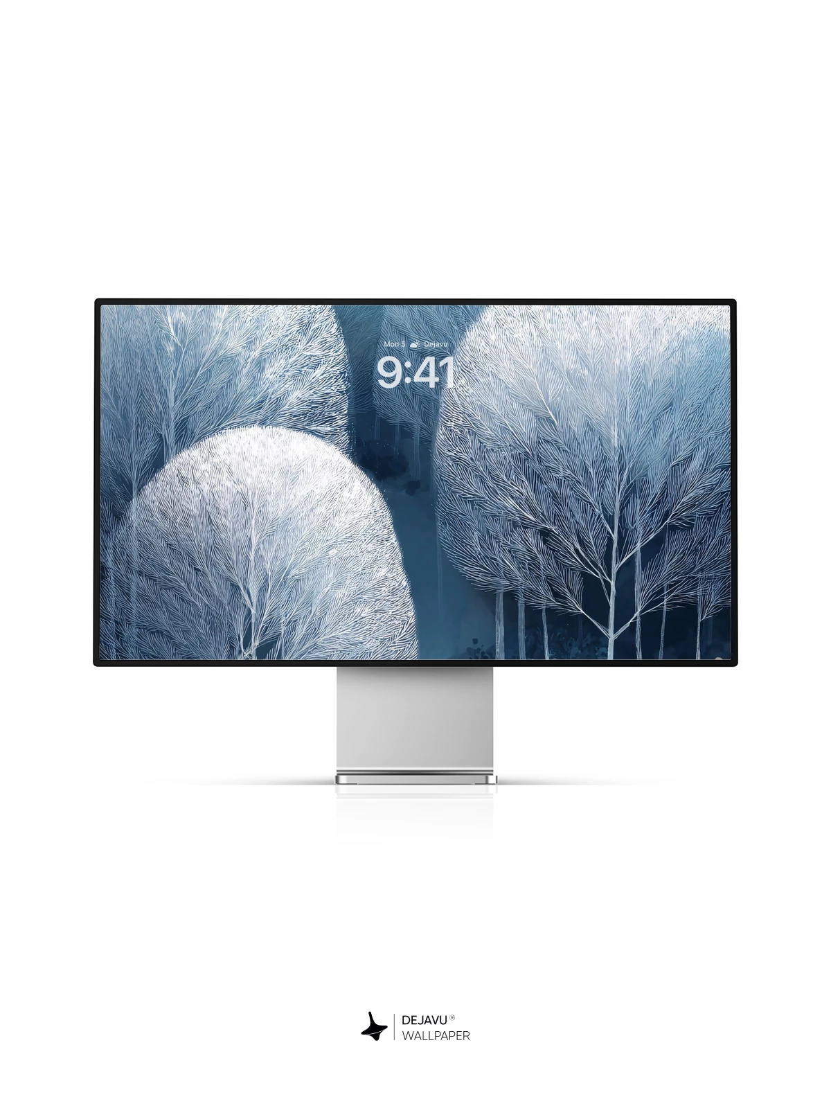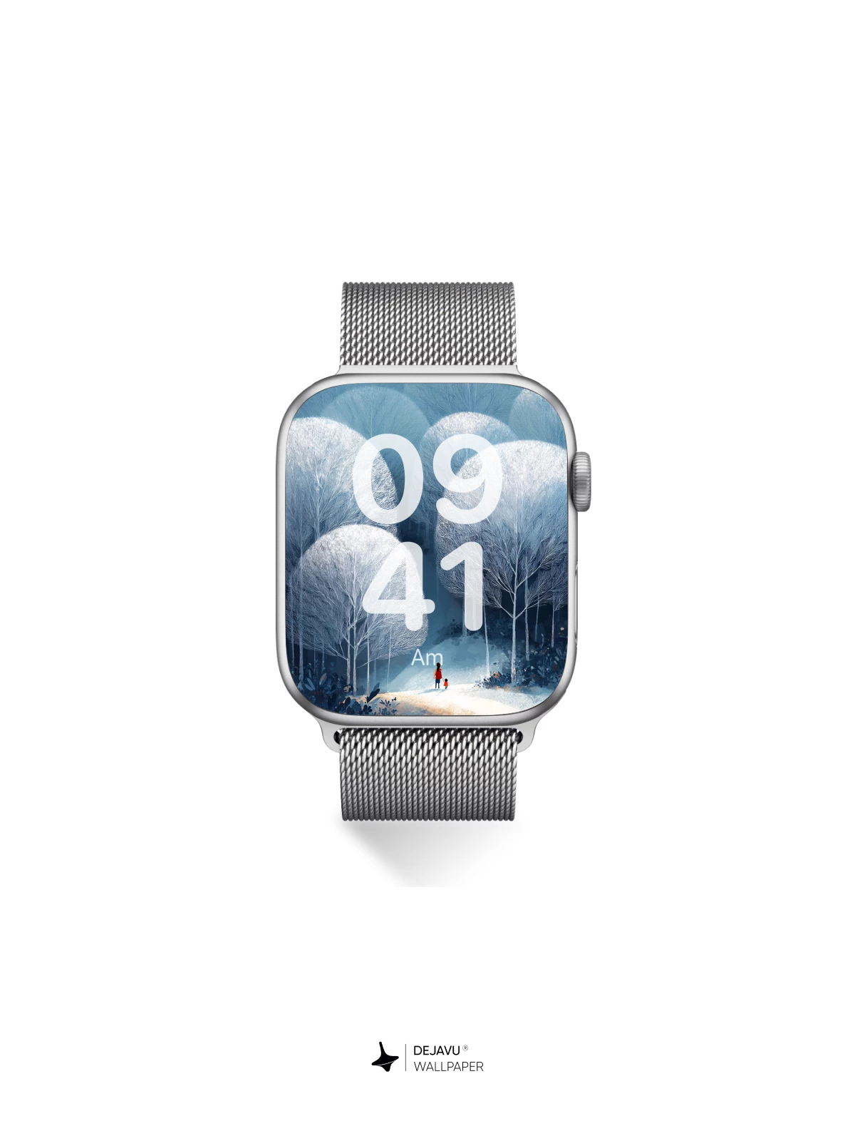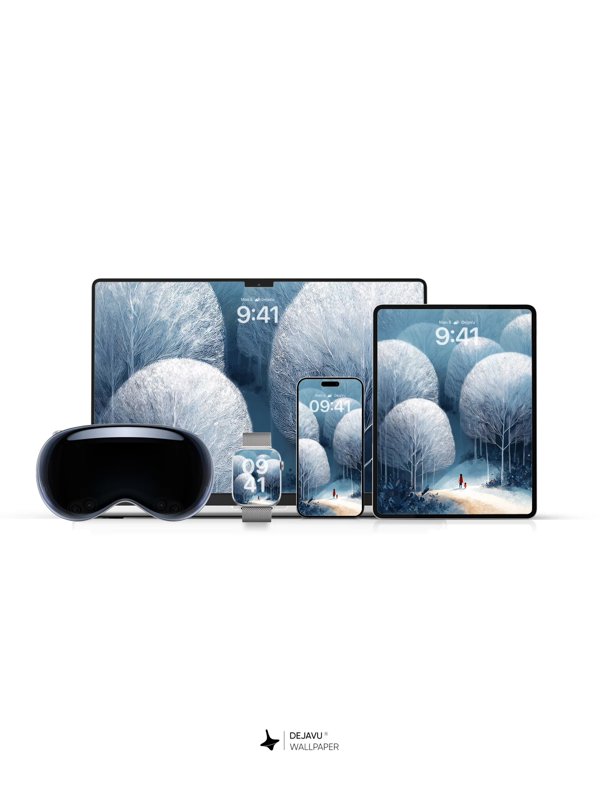 This evocative 8K wallpaper captures a quiet moment of connection between a parent and child walking through an ethereal winter forest. The trees, shaped like glowing orbs of frost, rise in perfect symmetry, creating a surreal, almost otherworldly landscape bathed in cool blue light. Inspired by the poetic minimalism of contemporary nature art, the image conveys solitude, warmth, and timeless beauty—ideal for iPhone, Android, or tablet screens seeking a calming yet visually rich backdrop.