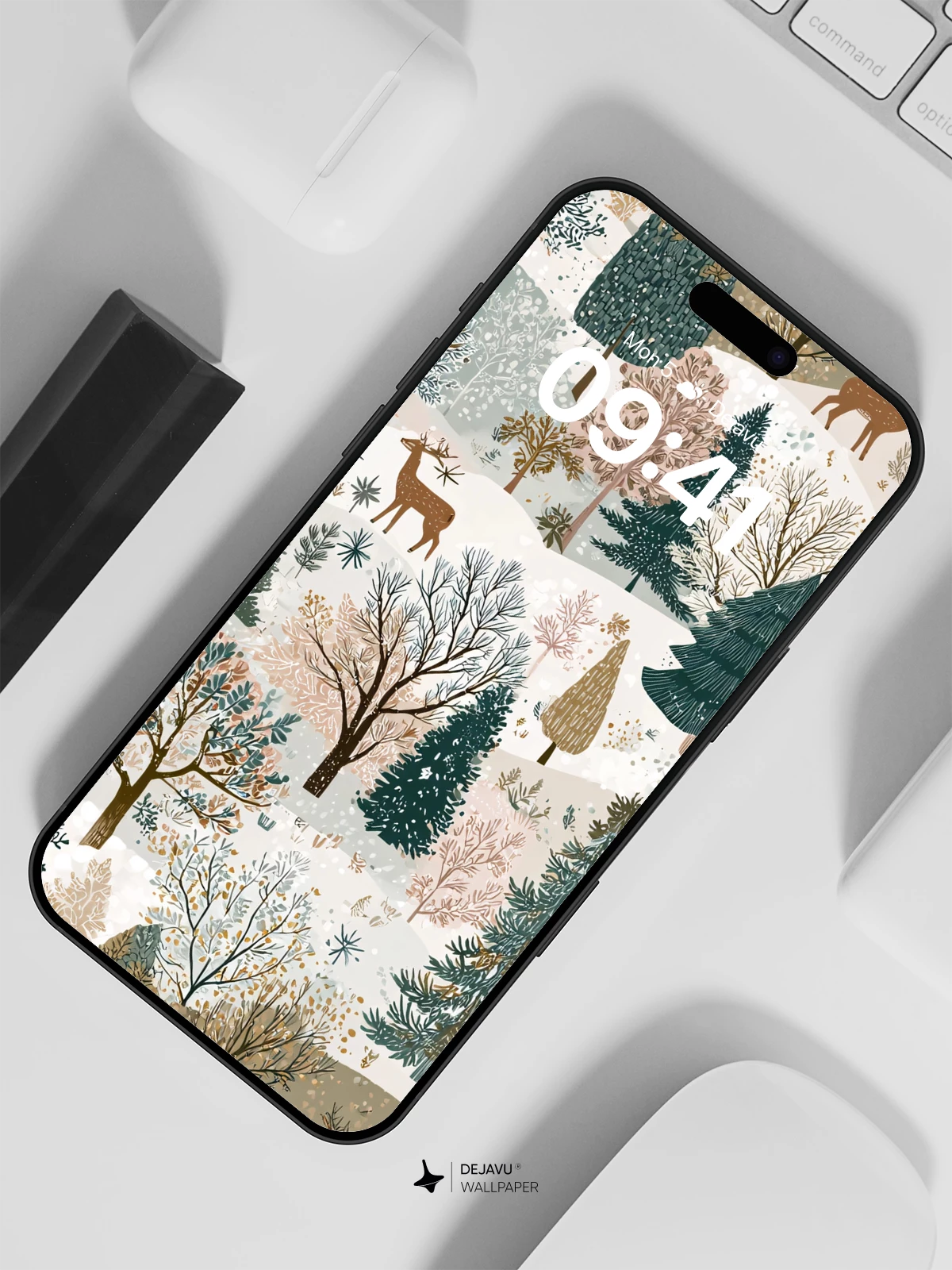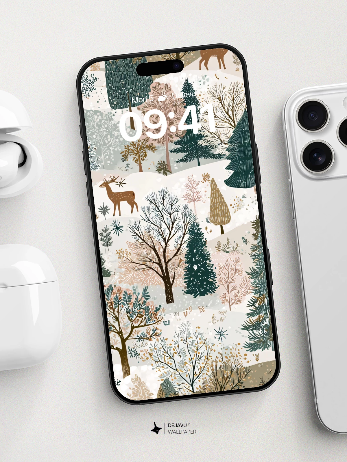 This enchanting winter forest wallpaper brings the quiet magic of a snowy woodland to your iPhone or Android device. With hand-drawn charm and soft earthy tones, the scene features evergreens, bare branches, and graceful deer, all nestled in rolling hills under a delicate snowfall. Inspired by contemporary illustrative art, it evokes a sense of peaceful solitude and timeless natural beauty—ideal for anyone seeking warmth and calm on their mobile screens.