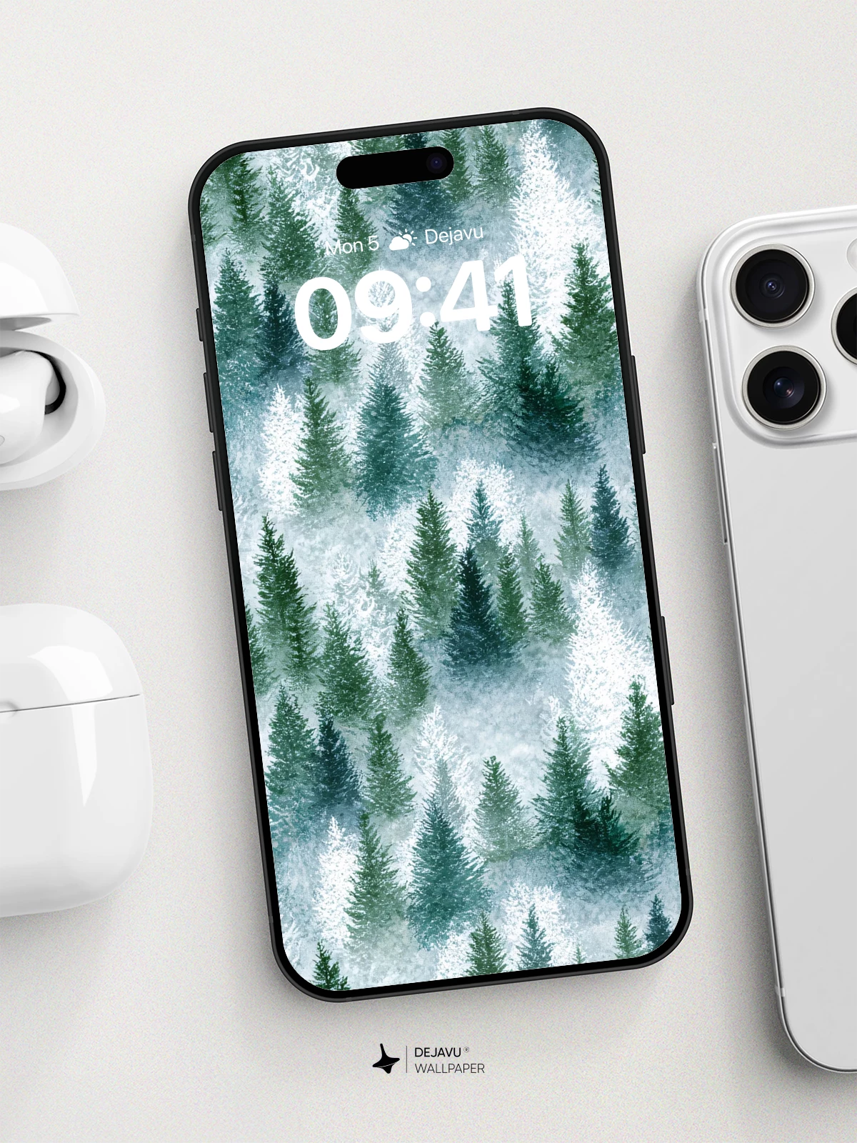 This enchanting watercolor-style wallpaper captures a tranquil winter forest, where evergreen trees rise through gentle snowfall and mist. Inspired by nature’s quiet beauty, the artwork blends cool blues and deep greens into a dreamlike landscape that evokes calm and wonder. Ideal for iPhone, Android, and tablets, this 8K design brings a peaceful woodland escape to your home screen.