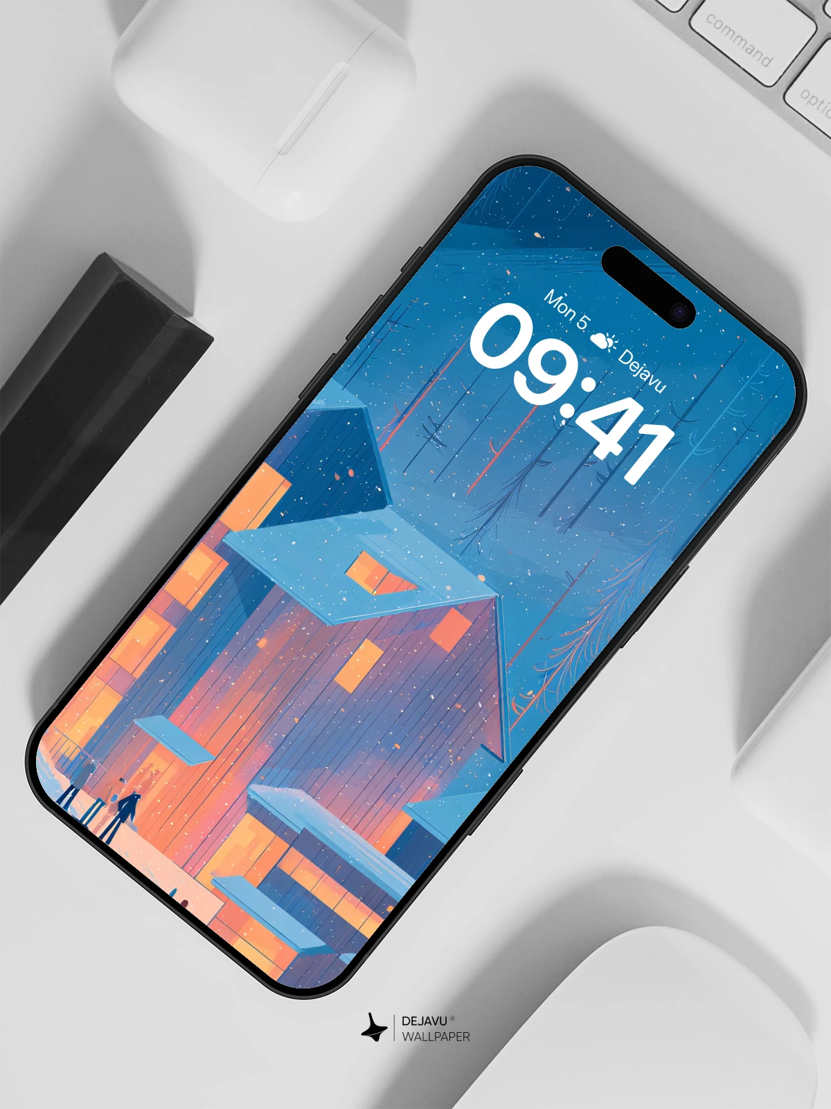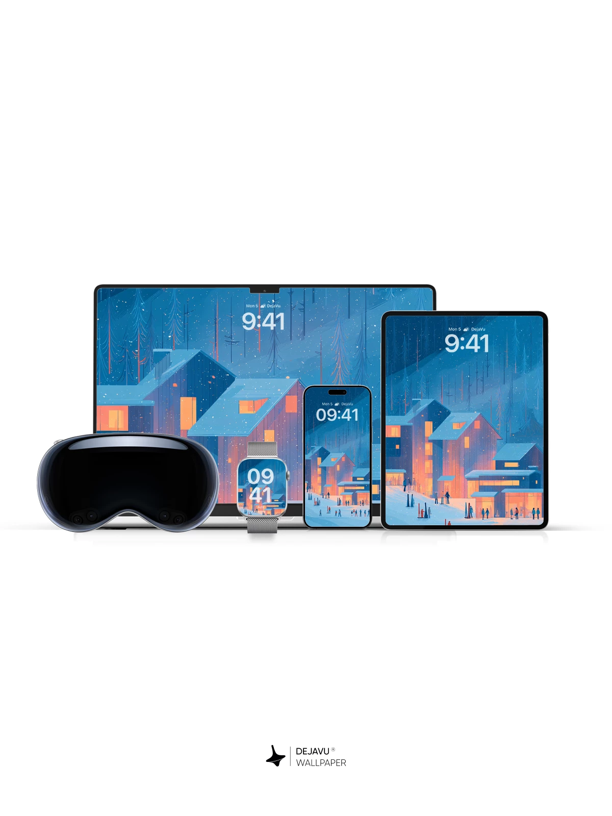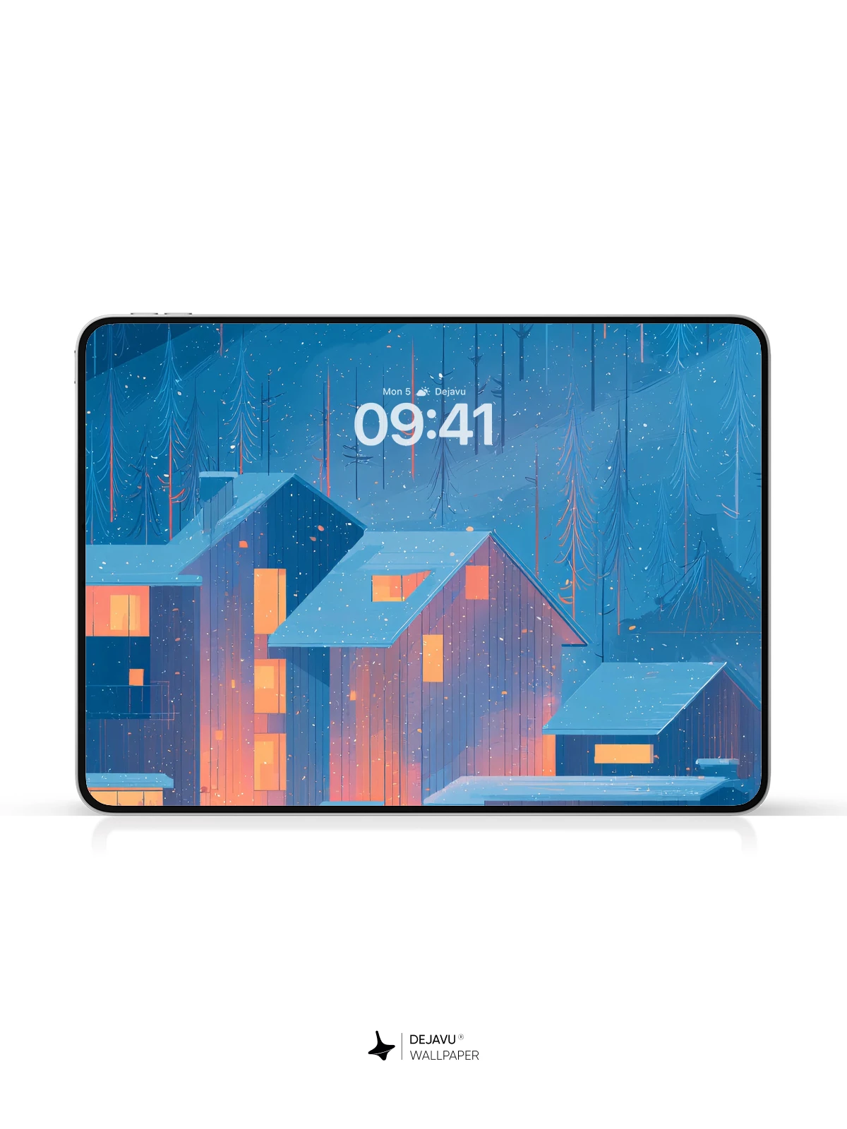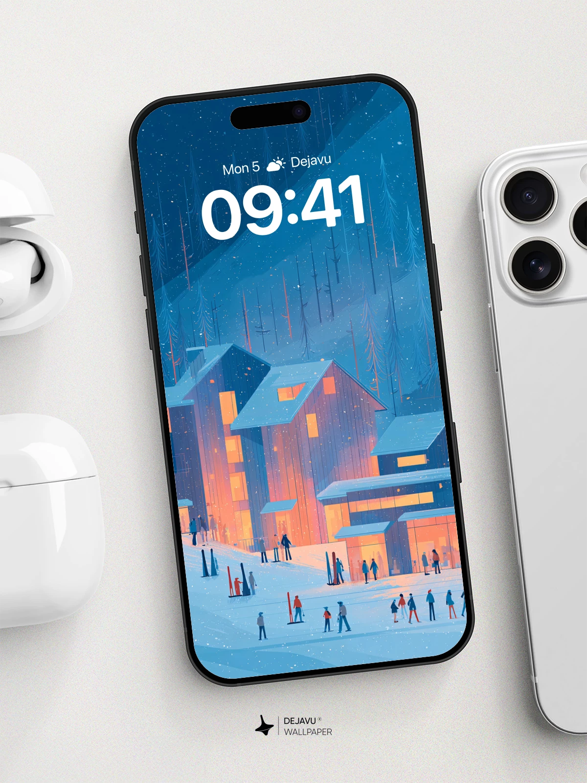 This enchanting 8K wallpaper captures a tranquil alpine lodge scene at night, where golden lights spill from wooden cabins into the falling snow. Inspired by modern illustrative art with a touch of Nordic minimalism, the image evokes warmth and solitude amidst nature’s quiet beauty. Ideal for iPhone, Android, and tablets, it transforms your device into a portal to peaceful winter wonderlands.