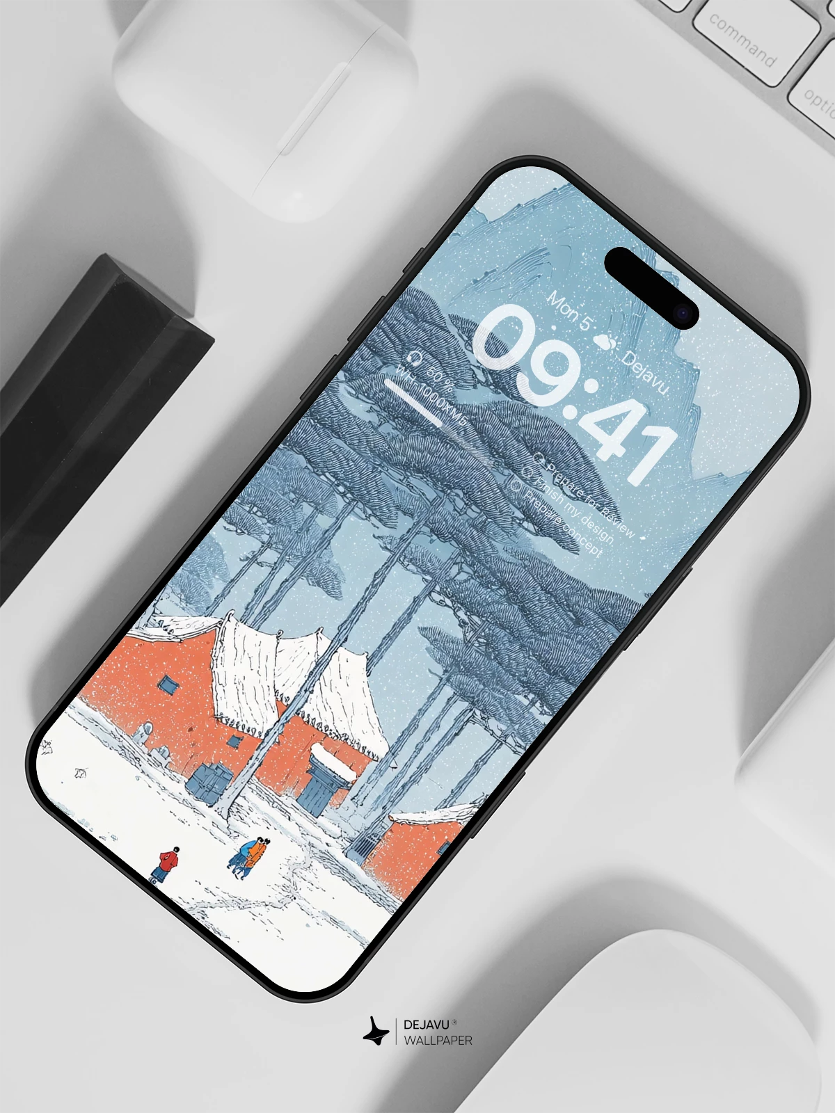 Immerse yourself in the serene beauty of a winter village, depicted in this stunning 8K wallpaper. The scene evokes a sense of timeless peace, with snow-covered rooftops and towering evergreens creating a picturesque landscape. Inspired by traditional art styles, the image captures the quiet harmony of nature and human life. Whether viewed on an iPhone, Android, or tablet, this wallpaper brings a calming, artistic touch to your device, enhancing its aesthetic appeal. Let the gentle snowfall and rustic charm transport you to a world of tranquility and wonder.